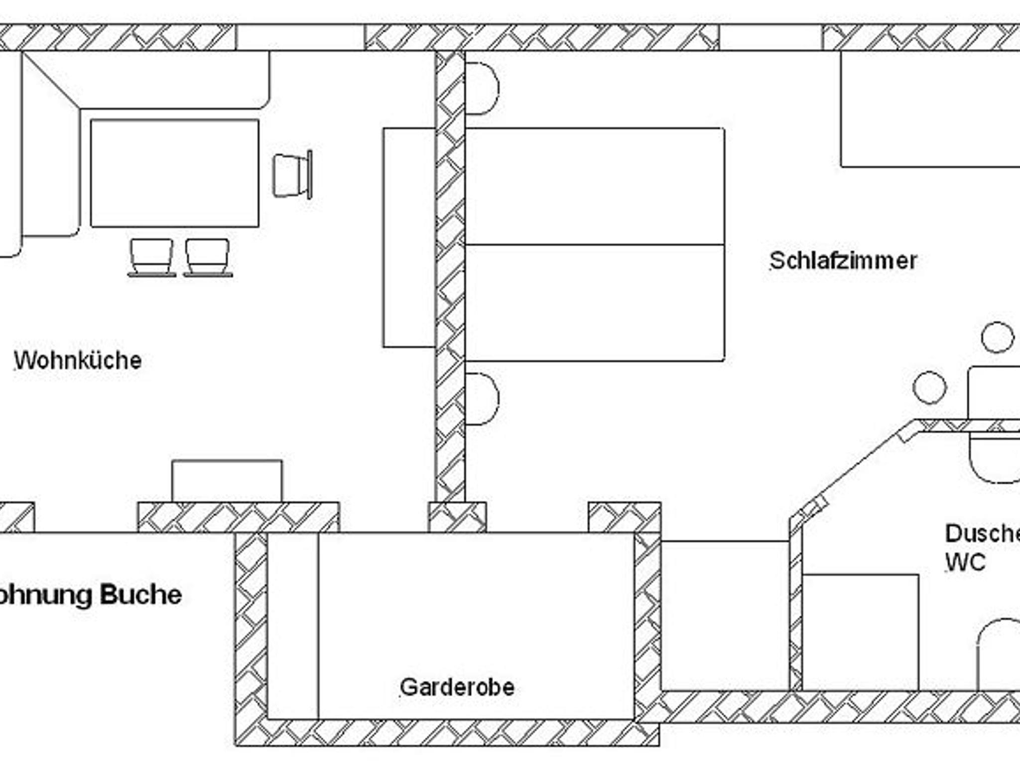 Diese freundliche und gemütliche *** Wohnung ist ideal für 2 Erwachsene oder einer kleinen Familie, wobei das zweite Kind noch im Kinderbett Platz finden sollte. Die voll ausgestattete Küche wurde 2023 erneuert und ist mit einem Raumteiler vom Wohnraum getrennt. Auf dem Balkon kann man die Morgensonne genießen und am Abend schickt die Sonne ihre letzten Strahlen in diese helle Wohnung. Das Schlafzimmer verfügt über ein Doppelbett und einem festen Zustellbett, ein Kinderbett kann außerdem noch zugestellt werden.