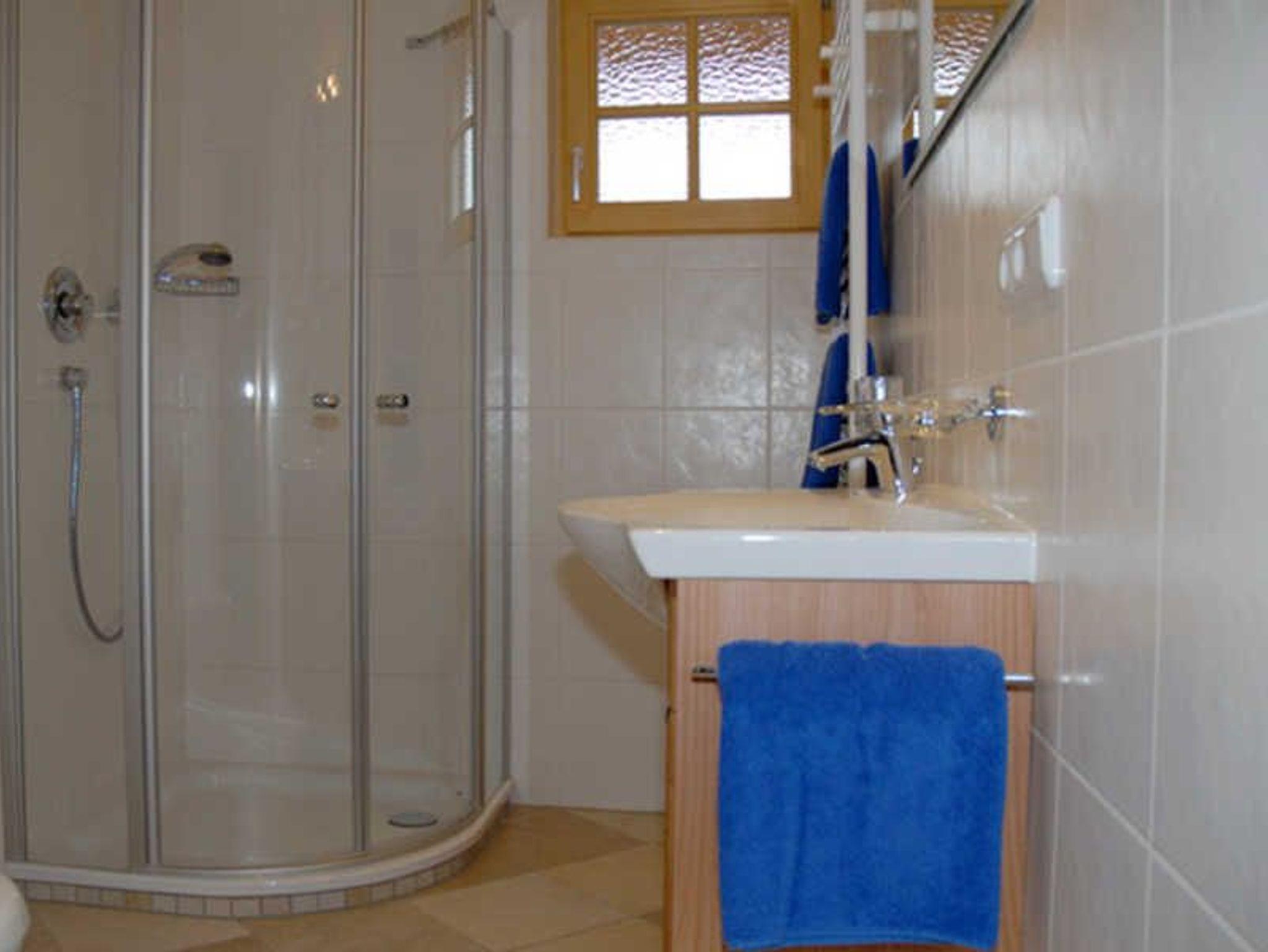 Fußbodenheizung, Dusche, WC, Waschbecken, Ablagefläche, Haartrockner, Kosmetikspiegel, Fenster