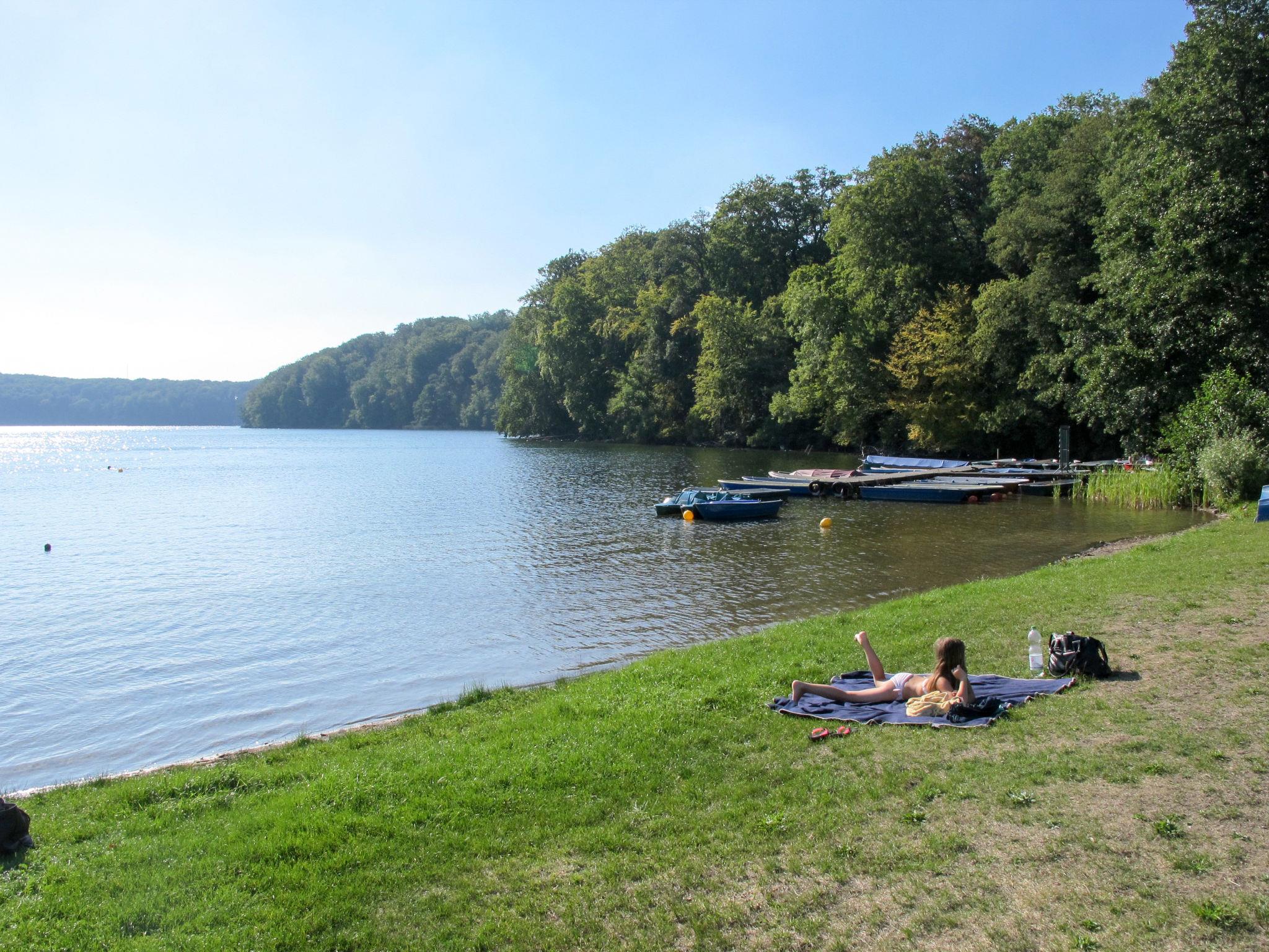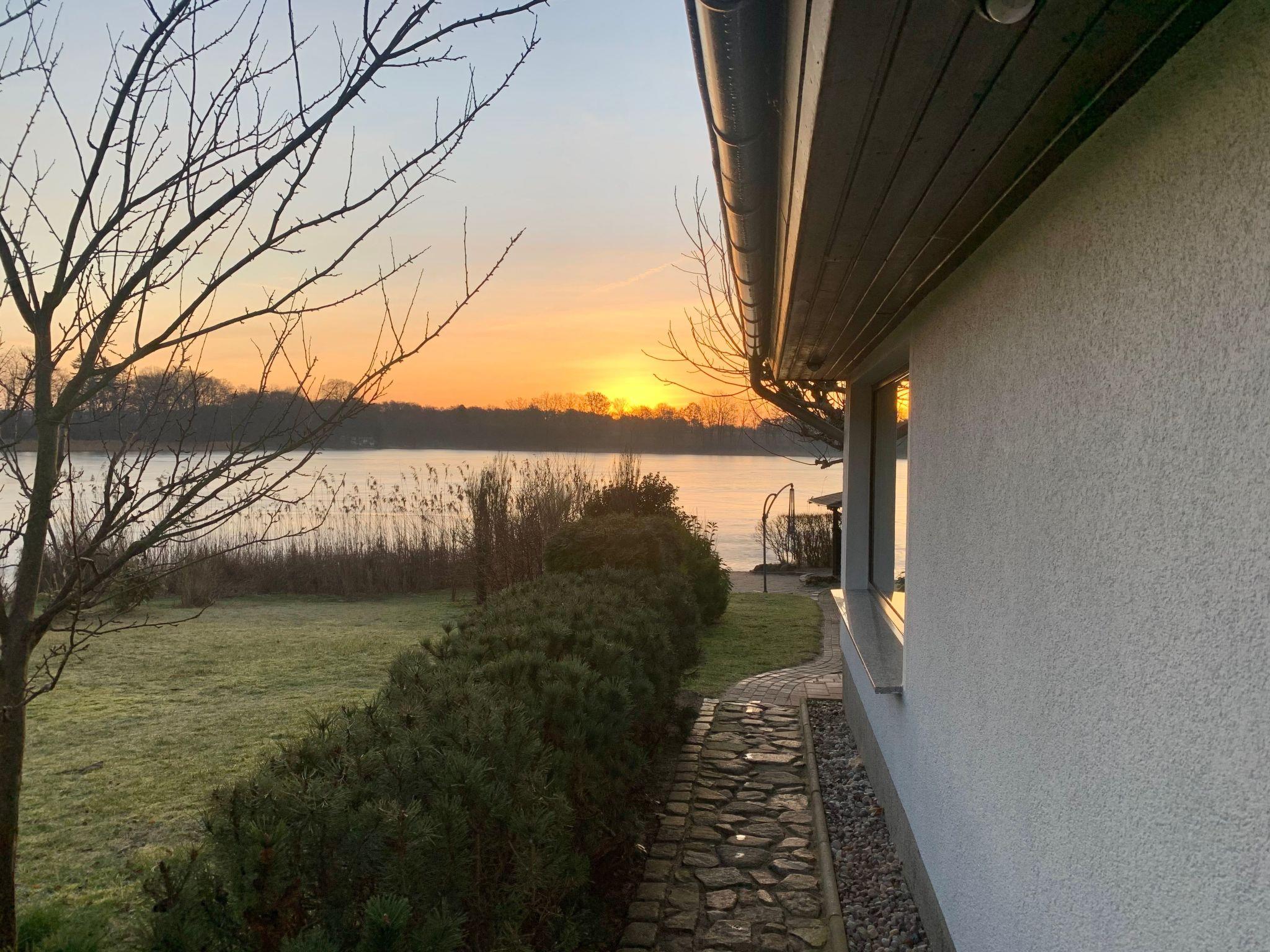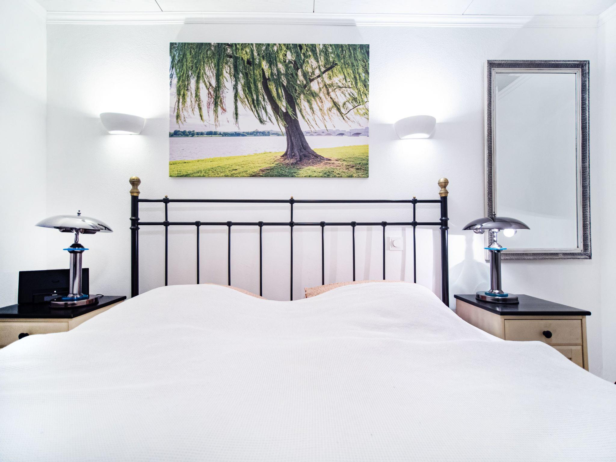 The holiday home has 55 m² of living space and can accommodate four people. The cosy living and dining room with lake view offers comfortable seating for four people and is a wonderful place for breakfast in the sunrise. On chilly days, the fireplace invites you to spend an evening at home. The required firewood is included and can be replenished at any time. The pull-out sofa bed can be used as a bed for children or spontaneous visitors. The living area is equipped with satellite TV, 5.1 hi-fi system, DVD player, media player (large & current selection of cinema films) and a free WiFi hotspot. The fully equipped kitchen with ceramic hob, oven, coffee machine, fridge, freezer and extensive cooking utensils is ideal for self-catering. You will find everything the ambitious chef could wish for. For those who prefer to cook, there are various restaurants in the neighbourhood and one or two delivery services. In the bedroom you will find a double bed with two bedside cabinets and a clock radio. A cot can be added free of charge. Extensive baby and toddler accessories can also be provided free of charge on request. The lovingly designed and newly renovated bathroom with underfloor heating and bathtub invites you to relax.