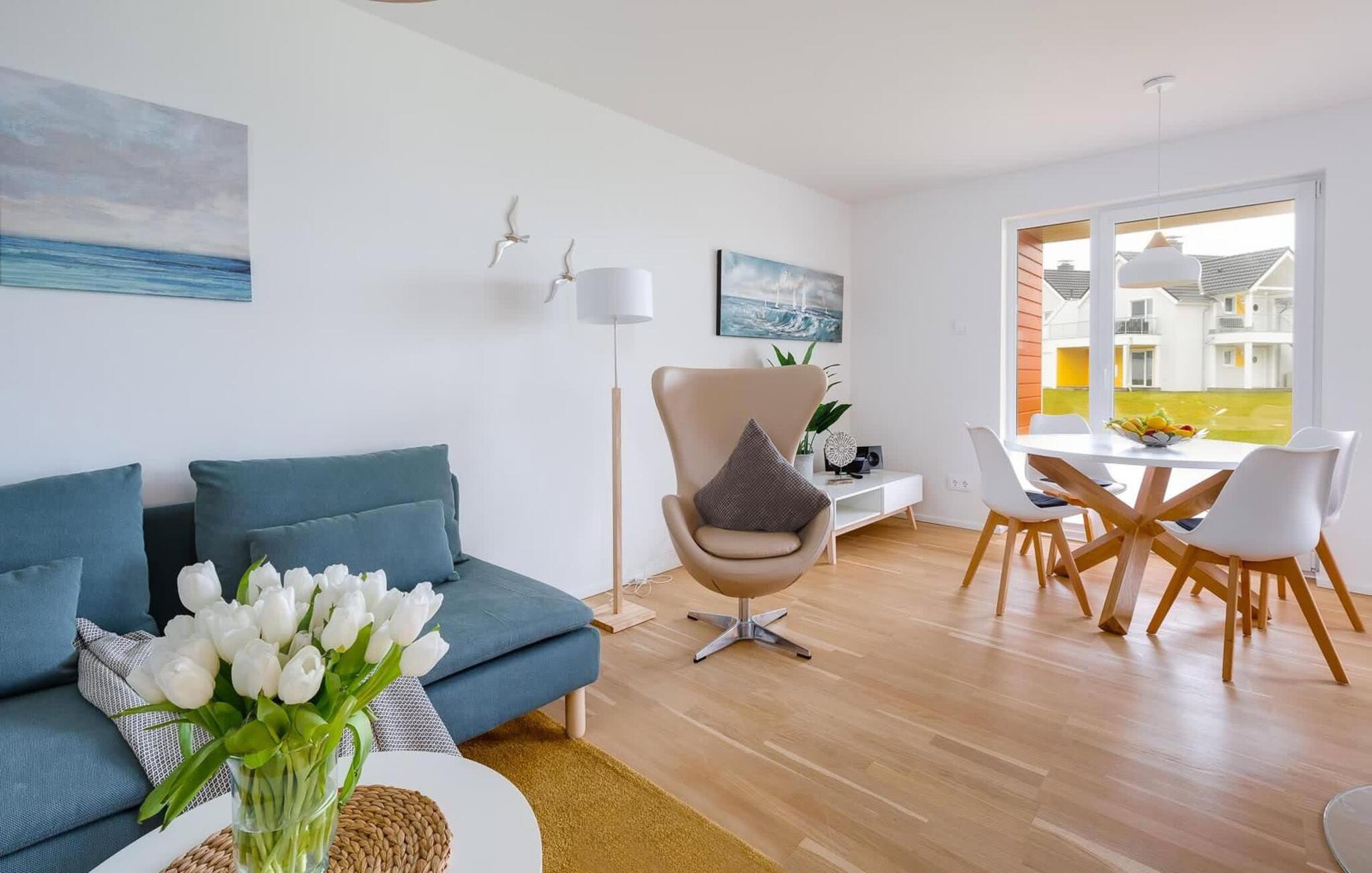 WiFi og Smart TV med Telekom Home Entertainment-program sørger også for indendørs underholdning. De to soveværelser har direkte adgang til udearealet.