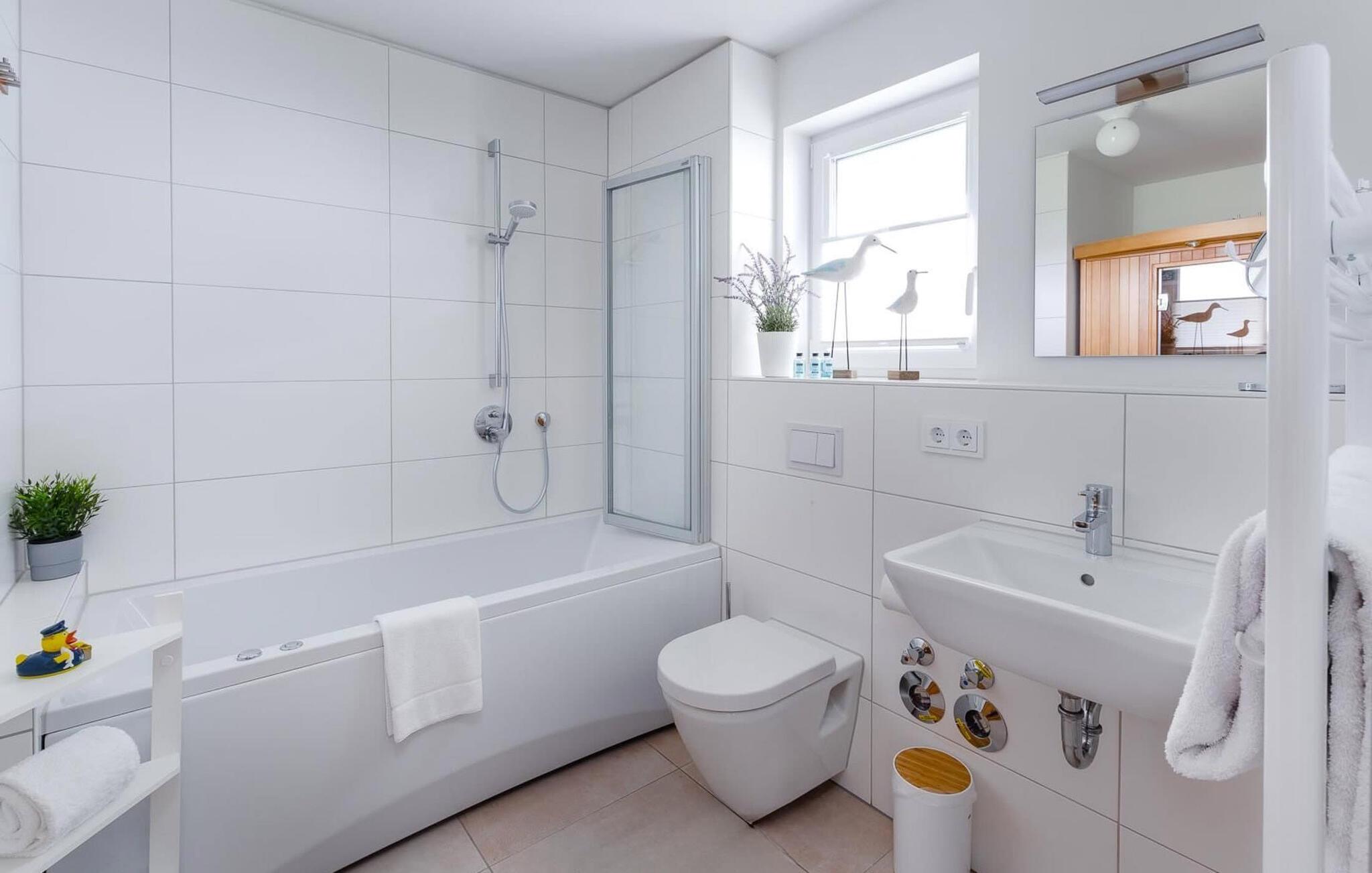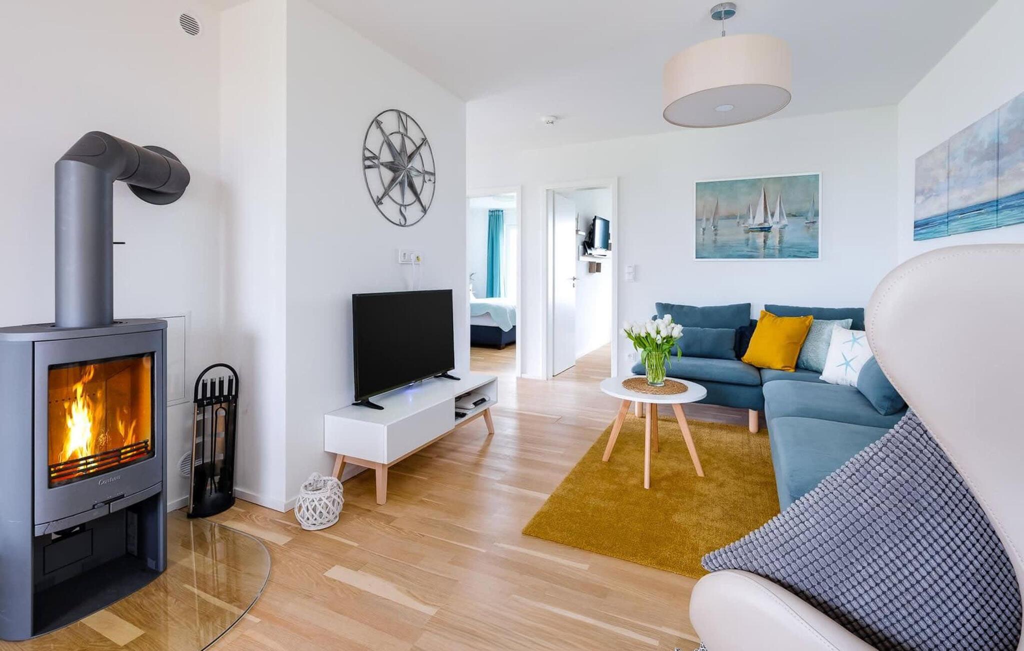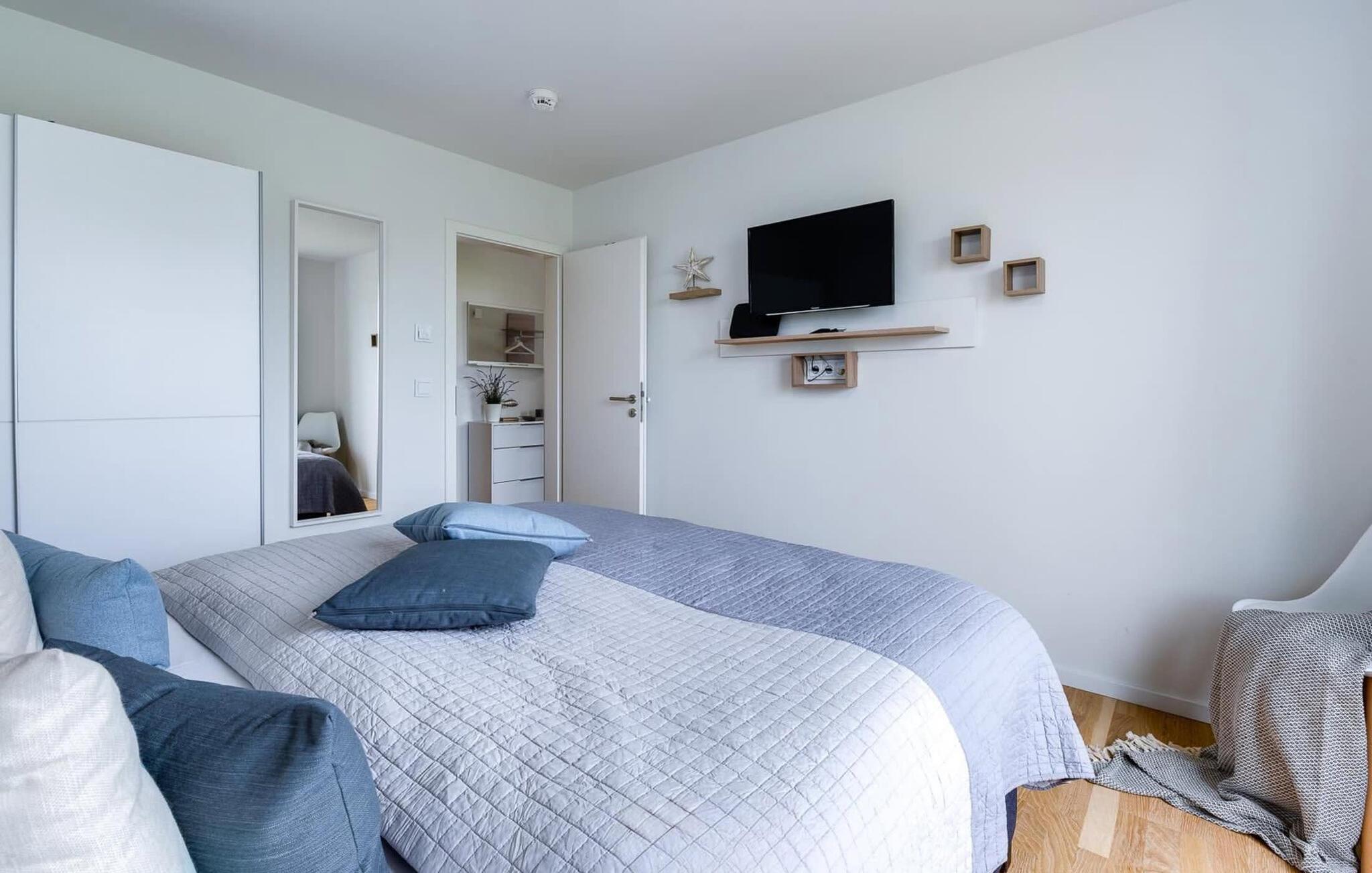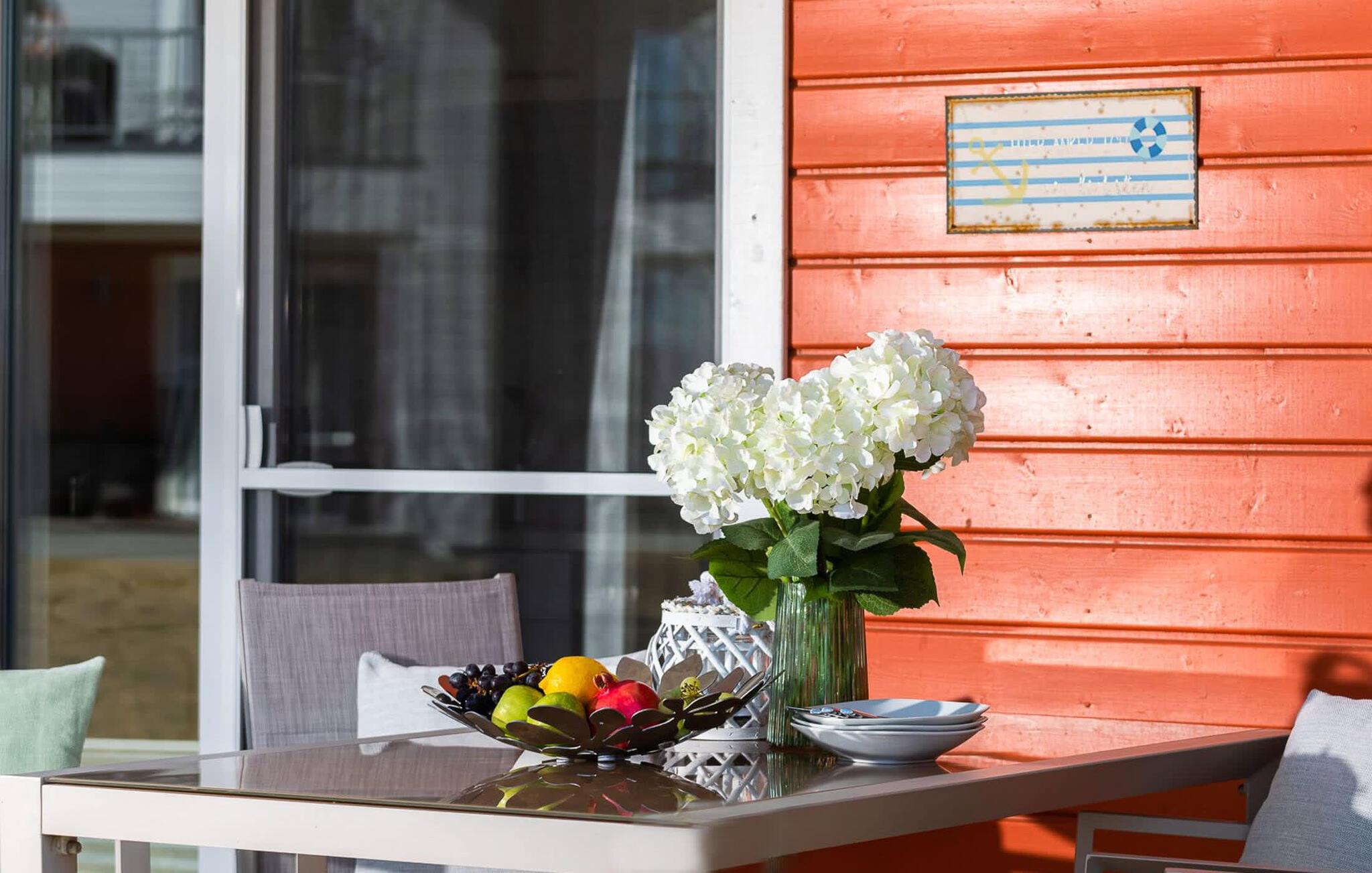 Kun få meter fra Weidefelds sandstrand og havnepromenaden i OstseeResort Olpenitz ligger denne ferielejlighed med central beliggenhed og topfaciliteter, privat wellness-område og gulvvarme. De to overdækkede solterrasser lægger op til sol dagen lang, mens det grønne område omkring huset giver jer mulighed for solbadning, brætspil og hygge.