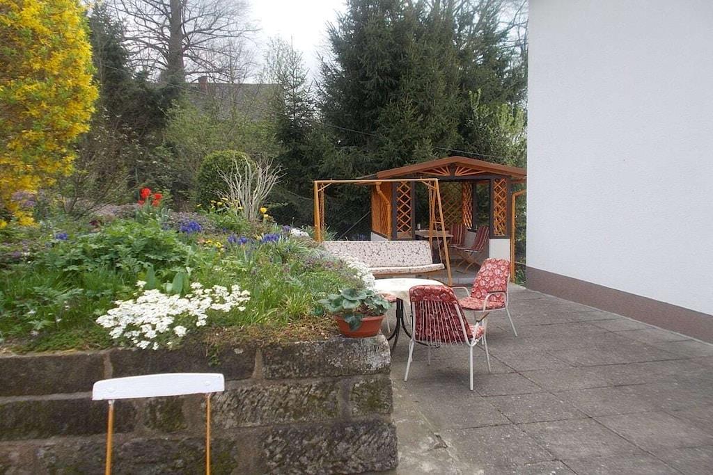 Smuk ferielejlighed i Tyskland (Elbsandsteingebirge): Her er plads til op til fire gæster på 60 kvadratmeter med terrasse og pool samt gratis Wi-Fi. Indkvarteringen tilbyder en rummelig stue og to separate soveværelser. Badeværelset har hjørnebadekar.
