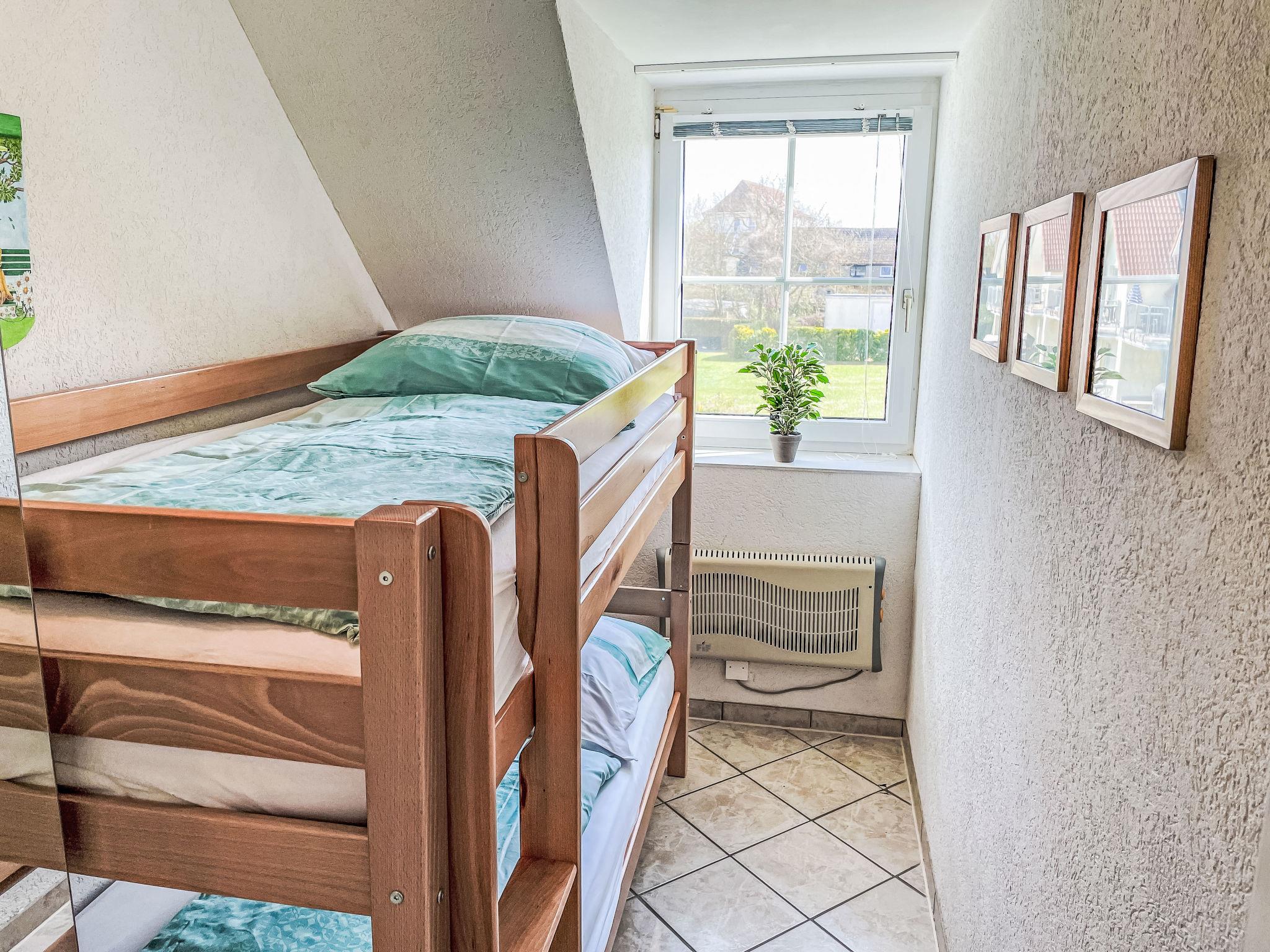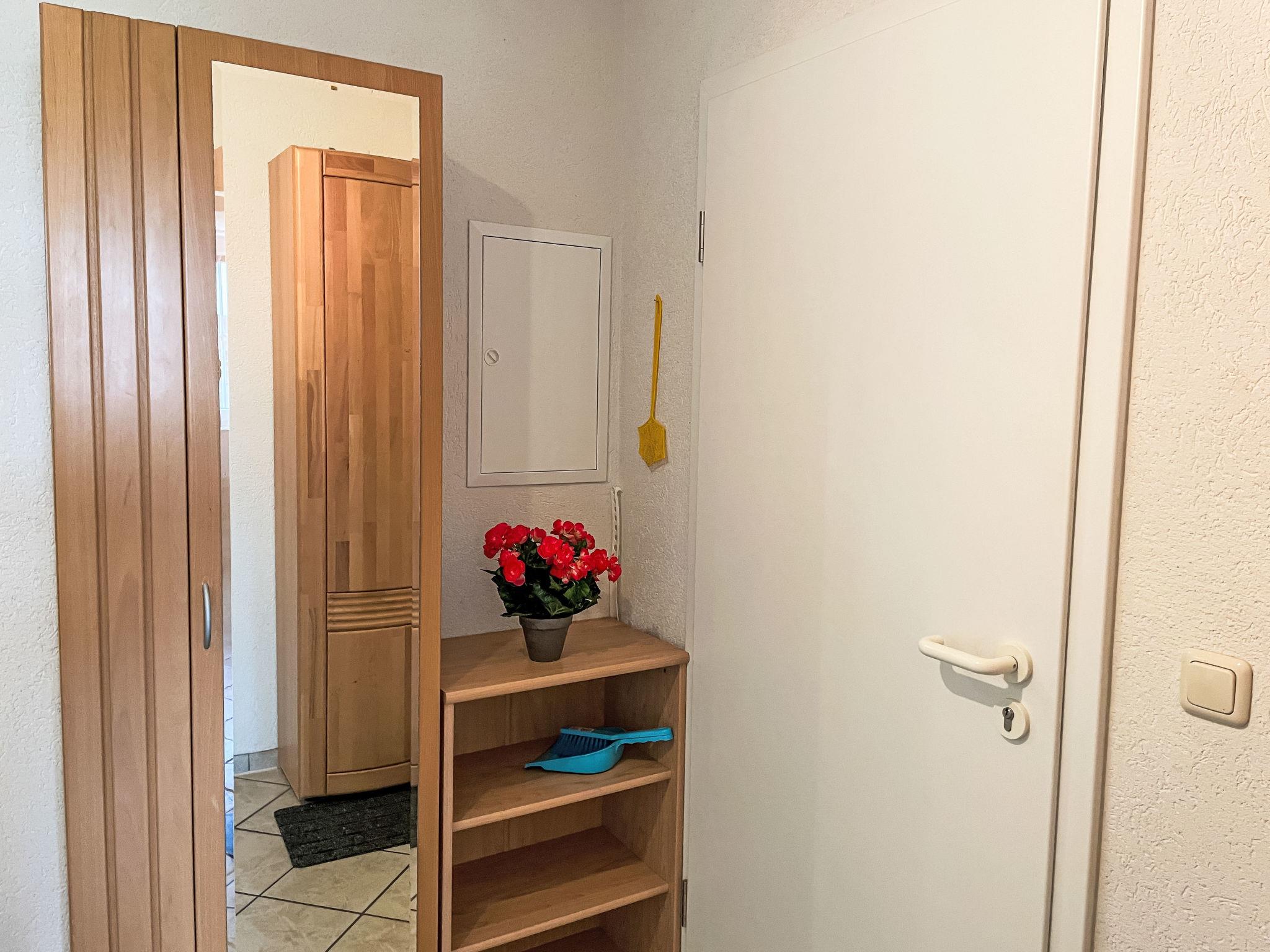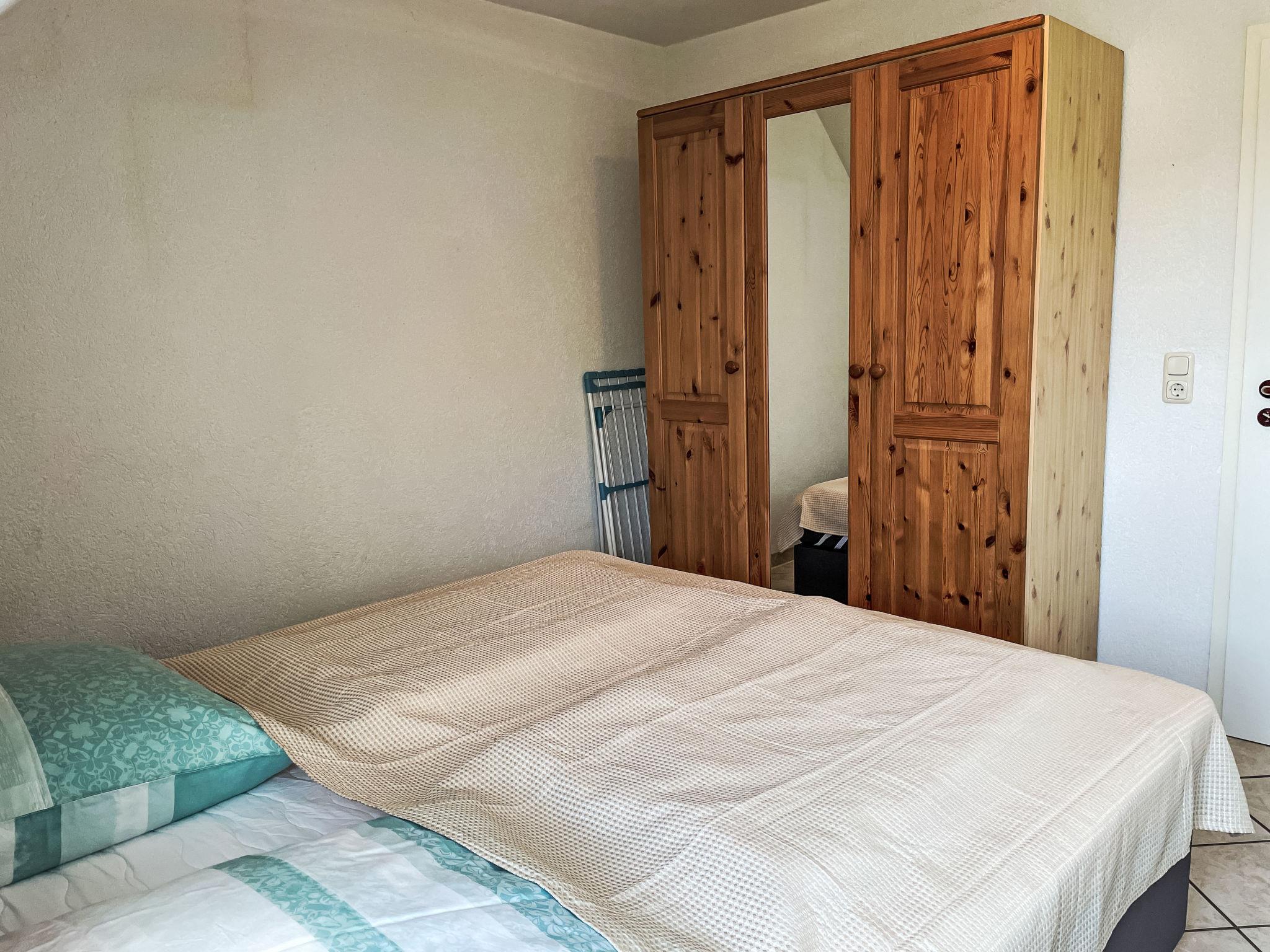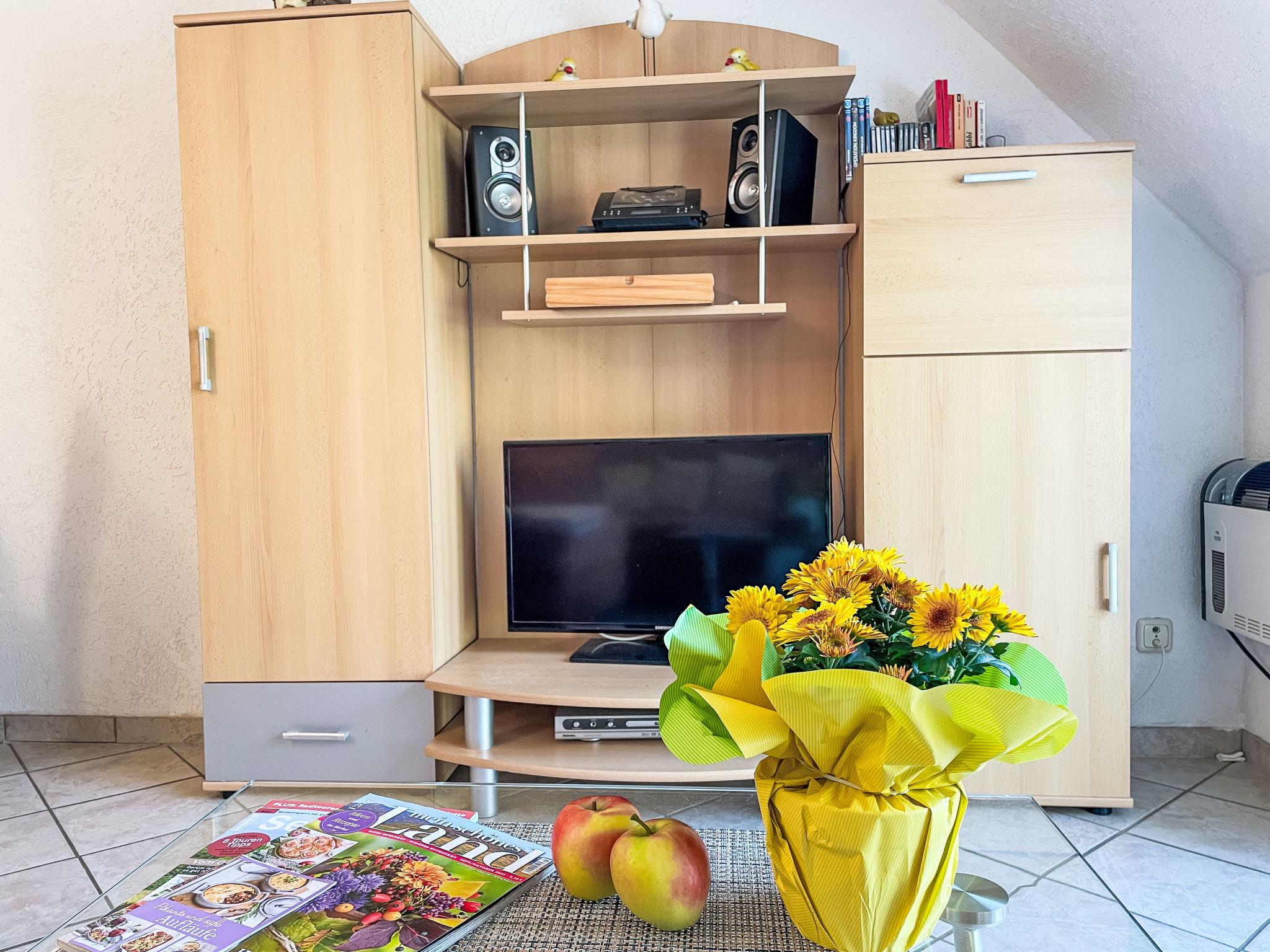 3-room apartment 46 m2 on 1st floor. Partly with sloping ceilings: living/dining room with satellite TV (flat screen), CD-player. Exit to the balcony. 1 room with 1 double bed (180 cm, length 200 cm). 1 children's room with 1 bed (80 cm, length 200 cm), 1 sleeping facility (90 cm, length 200 cm). Kitchenette (oven, dishwasher, 4 ceramic glass hob hotplates, toaster, kettle, electric coffee machine). Shower/WC. Electric heating. Small balcony 5 m2, south facing position. Balcony furniture. Facilities: Internet (WiFi, free). Please note: non-smokers only. Maximum 1 pet/ dog allowed. Smoke alarm. The sleeping possibility in the nursery is a pull-out bed (tandem bed).
