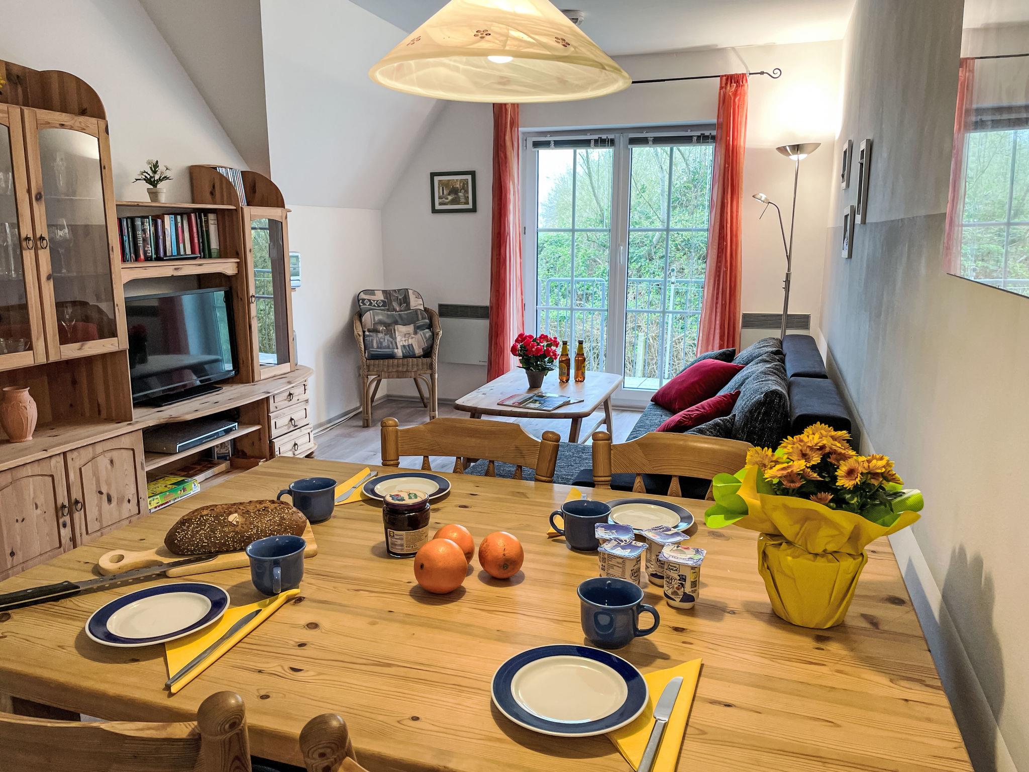 Cosy holiday development "Gollwitzer Park (Insel Poel)", surrounded by trees, meadows and fields. On the outskirts, in a quiet, sunny position, 600 m from the sea, 600 m from the beach, in a cul-de-sac, in the countryside. For shared use: property 12'000 m2 with lawn, meadow, lawn for sunbathing, natural pond. Table tennis, boccia (extra), children's playground. In the complex: WiFi, storage room for bicycles. Parking on the premises. Grocery 5 km, supermarket 5 km, shopping centre 5 km, restaurant 200 m, bakery 5 km, bus stop 100 m, sandy beach 600 m, outdoor swimming pool 18 km, indoor swimming pool 18 km, bathing lake 18 km. Minigolf 6.5 km, riding stable 7.5 km, walking paths from the house 100 m. Nearby attractions: Hansestadt Wismar 10 km. Please note: car recommended. The Gollwitzer Park consists of five two-storey apartment blocks with a total of 45 apartments, on the property is also a fenced natural pond. Smoking on the balcony is not allowed.