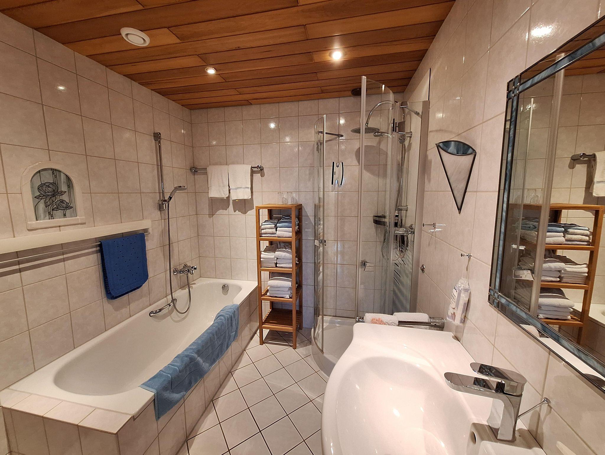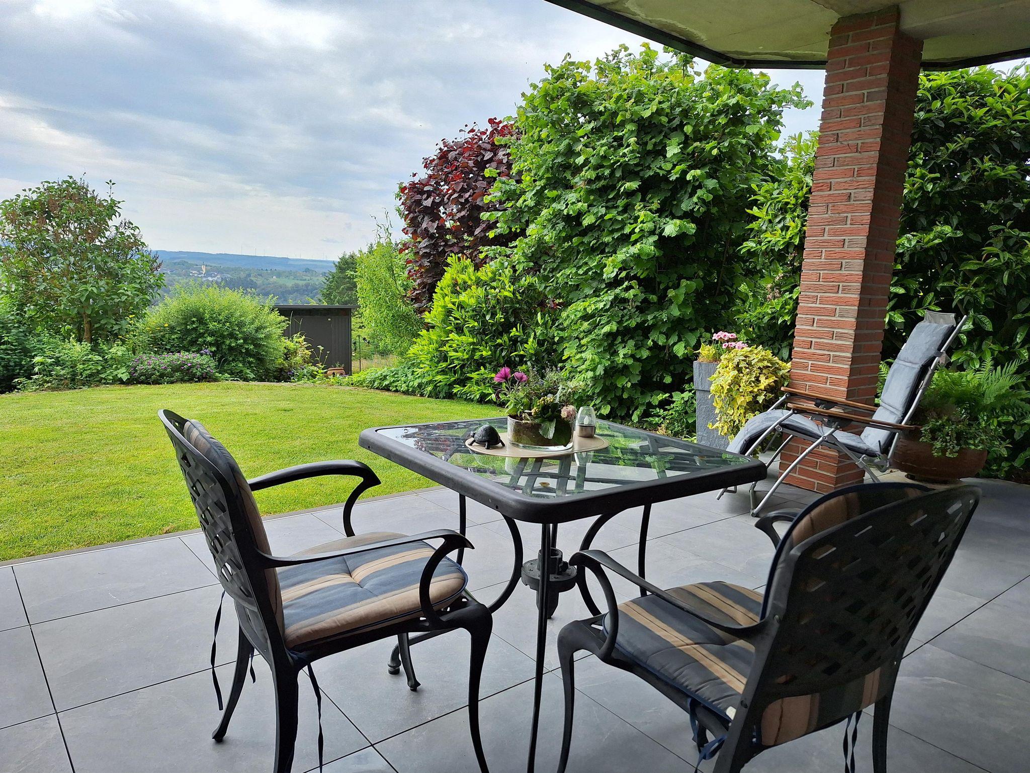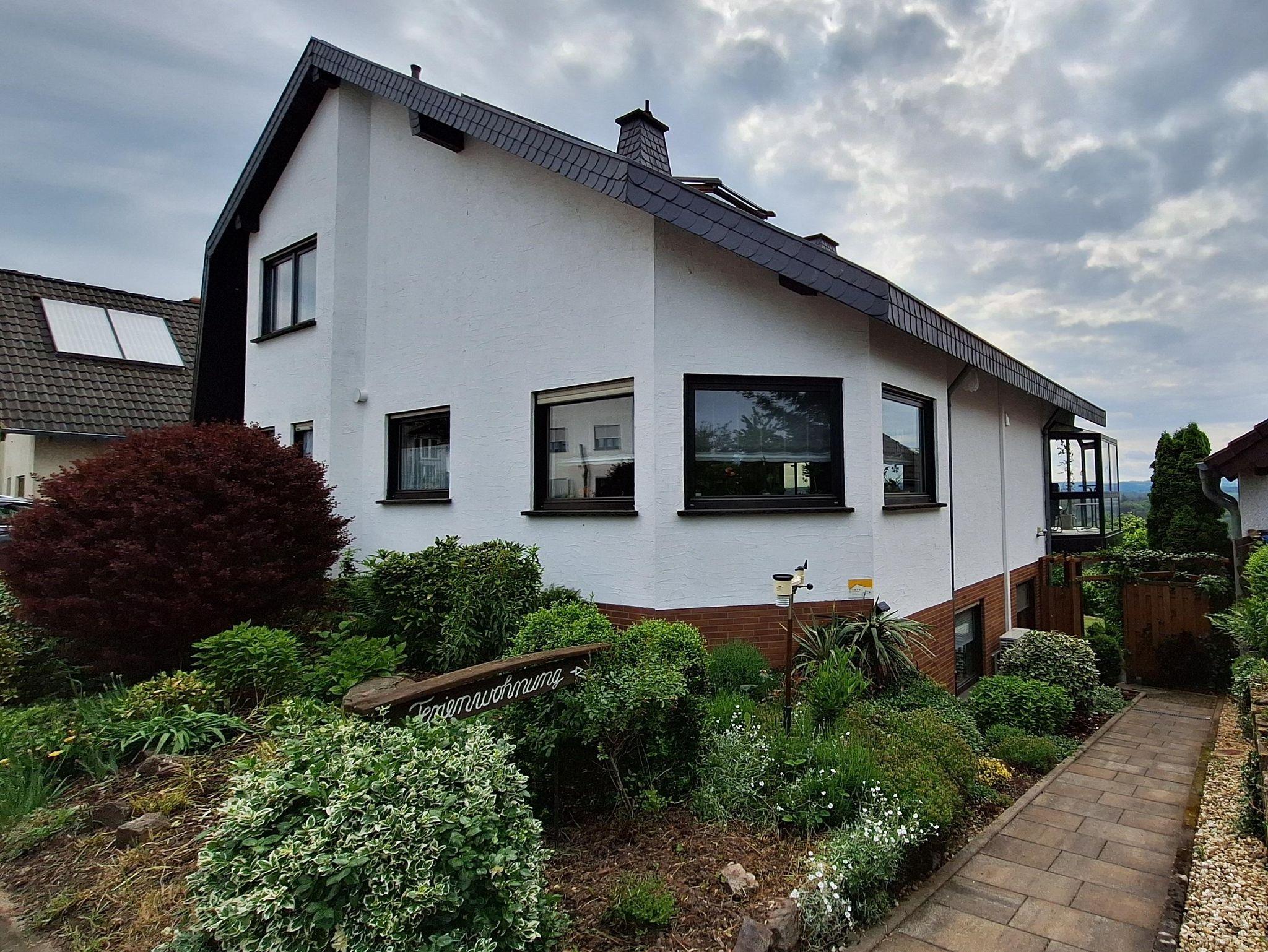 Unsere komfortable, Nichtraucherwohnung liegt in Nörtershausen, im Vorderhunsrück, einem großen Wander- und Radfahrgebiet, unmittelbar am Traumpfad Bergschluchtenpfad Ehrenburg. Die 65 m² Ferienwohnung befindet sich im Untergeschoss unseres Hauses und ist über einen separaten Eingang erreichbar. Auf der großzügigen, überdachten Terrasse und auf der Liegewiese können Sie die besondere Ruhe und einzigartige Lage mit weiter Fernsicht genießen. Die Wohnung ist mit einem Wohn-Essbereich und einer vollausgestatten Küche, einem separaten Schlafzimmer sowie einem Badezimmer und einem Gäste-WC gegliedert. Parken können Sie sowohl direkt vor dem Haus als auch im 100m entfernen Carport. Auf Wunsch ist eine Weinprobe im urigen Weinkeller unseres Hauses möglich. Wir bringen Ihnen auf Wunsch die Tageszeitung und überlassen Ihnen kostenlosen Internetzugang über W-LAN. Ideal für weitere Ausflüge: Rhein und Mosel sind in etwa 20 Minuten mit dem Auto zu erreichen, zahlreiche Burgen können in der Umgebung erkundet werden. Koblenz erreichen Sie in etwa 45 Minuten. Gerne helfen wir Ihnen bei der Planung von Wanderrouten weiter. Wanderstöcke, Wanderrucksack und eine Wanderapotheke ist vorhanden. Haustiere nur auf Anfrage beim Vermieter, abschließbarer Außenbereich des Gartens.