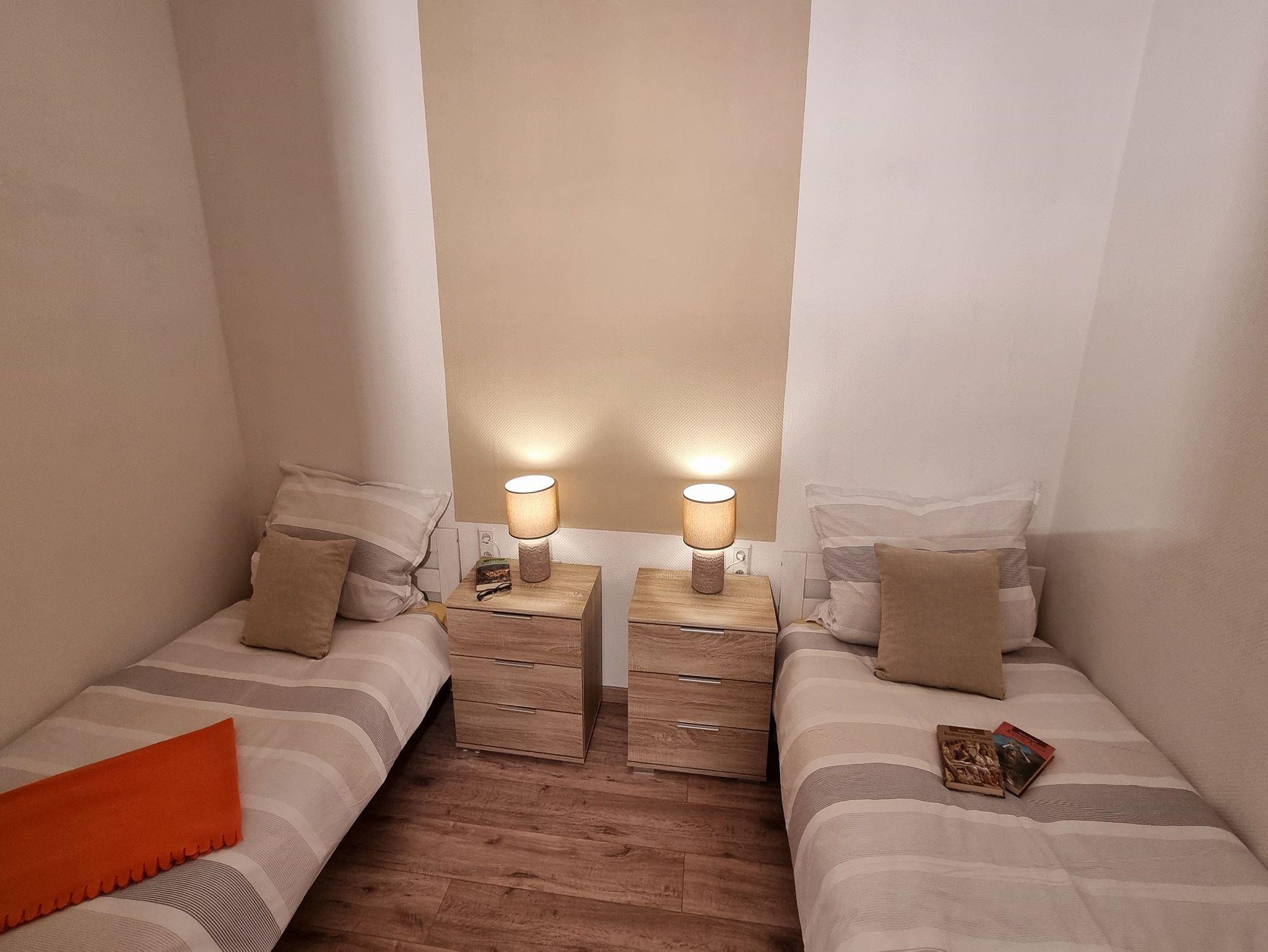 Die 4-Raum-Ferienwohnung Kiefernblick mit einer Größe von 59 m² befindet sich im Haus 2 in der 5. Etage. 2023 wurde die Ferienwohnung renoviert, sie verfügt über WLAN und wird ganzjährig für max. 4 Personen vermietet. Mit einem gemütlichen Ambiente und einem großen Balkon lädt die Ferienwohnung Kiefernblick zum Wohlfühlen ein. Auf dem Balkon lässt sich die Morgensonne mit einem unverbauten Blick zum Bocksberg genießen. Ein Fahrstuhl bringt unsere Gäste bequem in die 5. Etage.