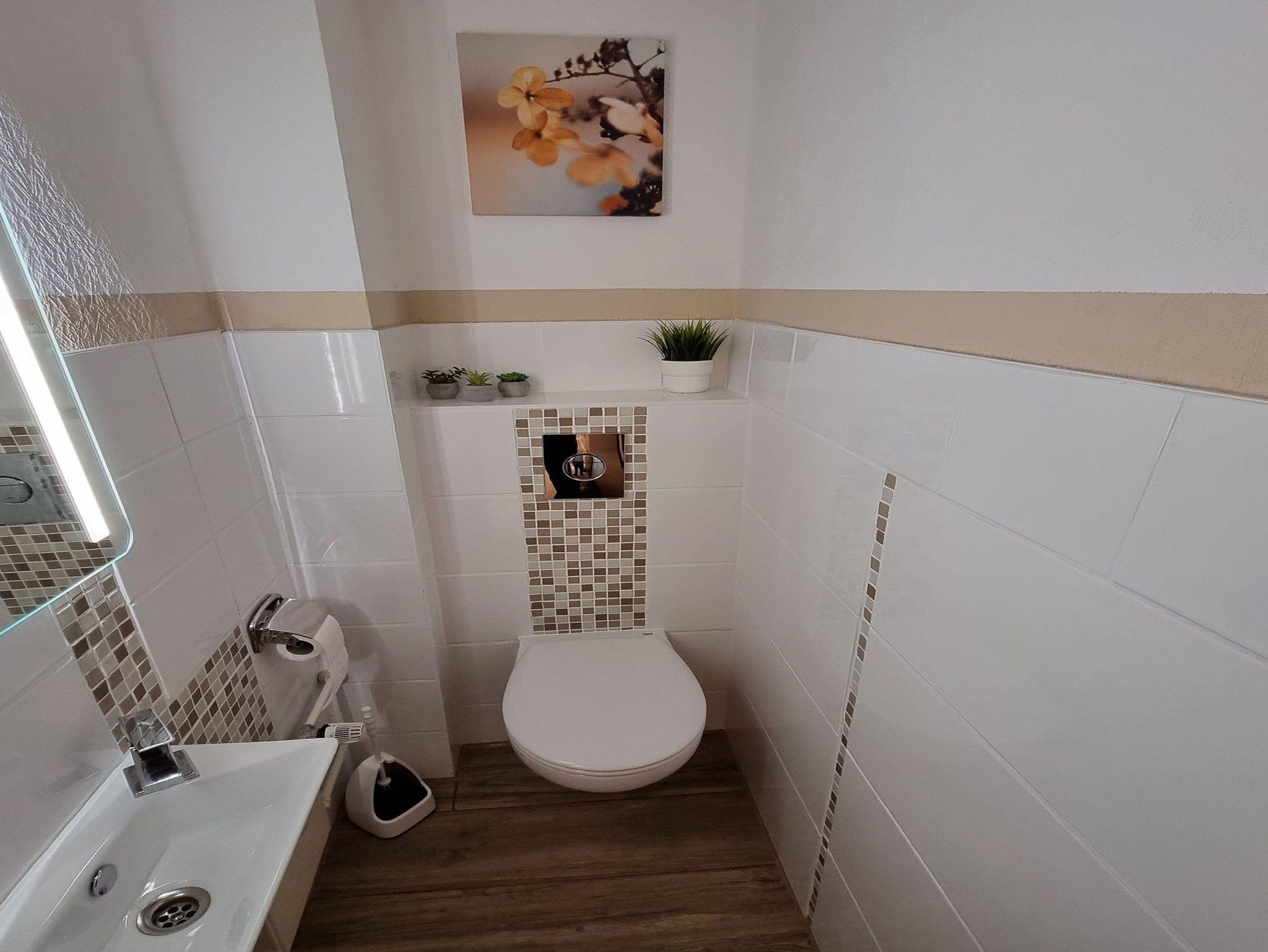Ein geräumiges Bad mit Dusche, WC und Fön gehören ebenso zur Ausstattung wie ein separates kleines Gäste-WC. Ein kleines Esszimmer sowie ein Ankleidezimmer geben der Wohnung einen individuellen Charme. Für unsere kleinen Gäste, bis 2 Jahre, steht Ihnen ein Kinderreisebett und ein Kinderhochstuhl zur Verfügung.