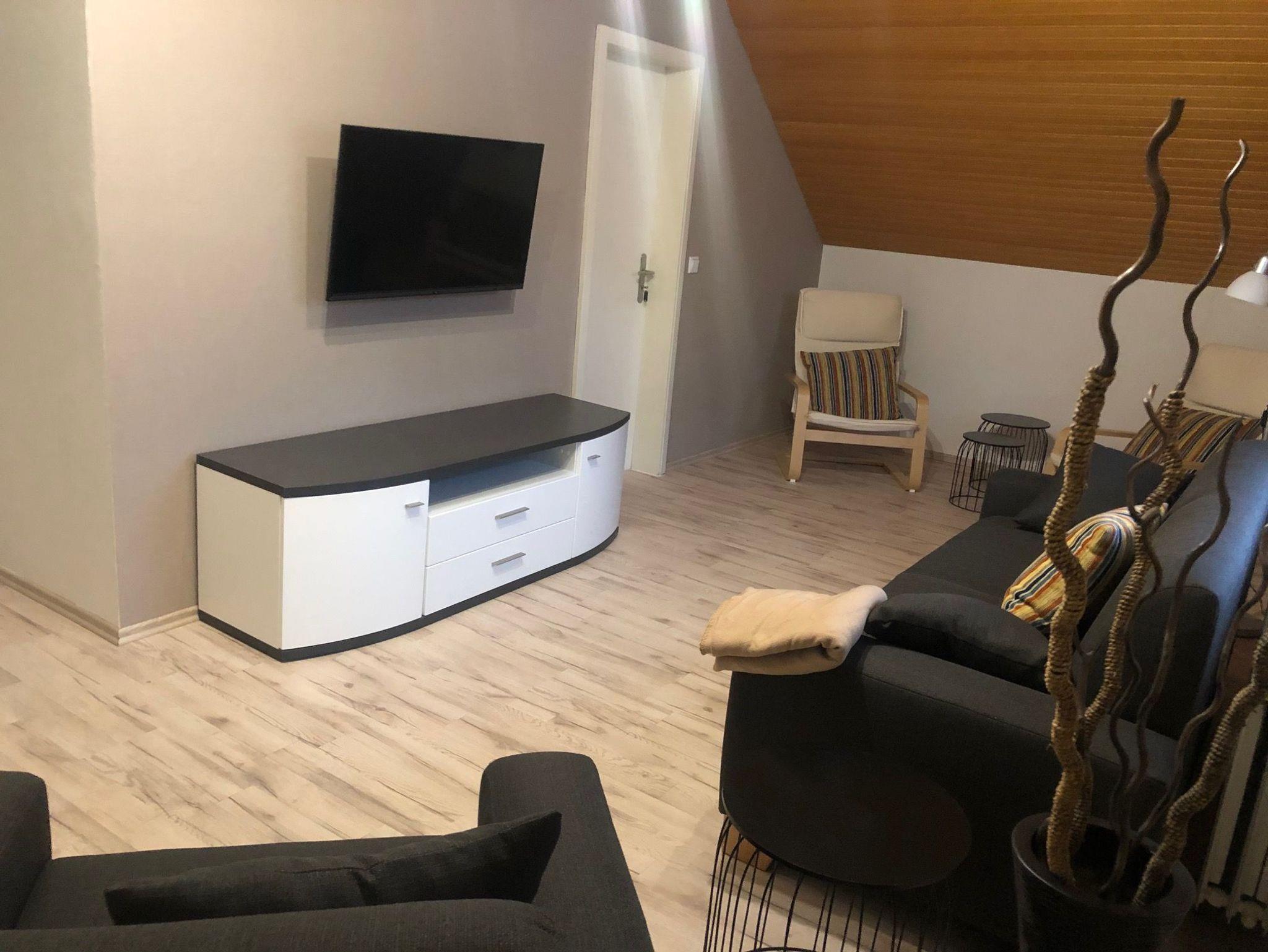 Ferienwohnung 2 im Haus Landmann. Platz genug für die Familie! 2 Schlafzimmer mit jeweils eigenem Bad mit Dusche/WC, Küche/Esszimmer und Wohnzimmer. Die Wohnung geht über 2 Etagen. Letzte Renovierung: 2018. Schlafzimmer 1 im 1. OG mit Aufbettungsmöglichkeit (Schlafsofa). Beide Schlafzimmer sind mit einem eigenem TV ausgestattet und bieten reichlich Platz. Eine separate Sitzmöglichkeit ist ebenfalls in beiden Schlafzimmern vorhanden. (einmal als Aufbettung möglich). Küche und Bäder komplett neu.