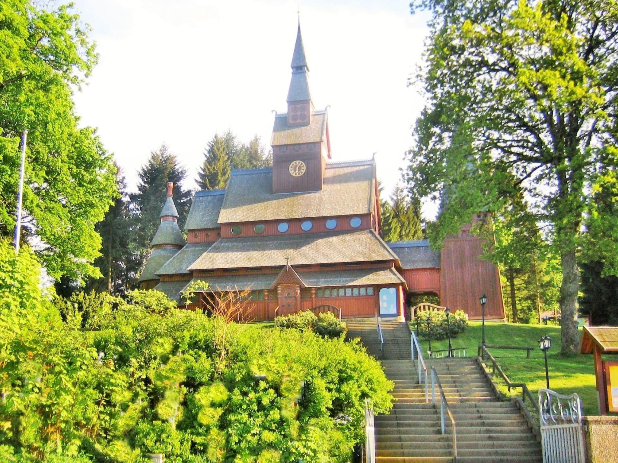 Not far from the centre of the village, the spa gardens, indoor swimming pool and various restaurants (all approx. 300-400 metres) is Haus Hopfe with its PREMIUM holiday flats BERGBLICK, which have been popular with regular guests for many years, with a magnificent view of the Bocksberg and over the village to the stave church. Hiking trails start right outside the front door at the edge of the forest! And the idyllic Waldseebad or the multi-award-winning Liebesbankweg are only a few minutes' walk away.