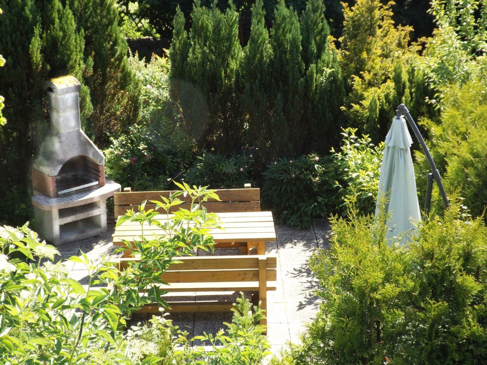 Your large balcony is seasonally equipped with garden furniture, parasol and garden loungers. The large, completely quiet property also offers play and sunbathing areas as well as an idyllic barbecue terrace. From here you also have a beautiful view of the Bocksberg Mountain Private parking spaces are available on the property