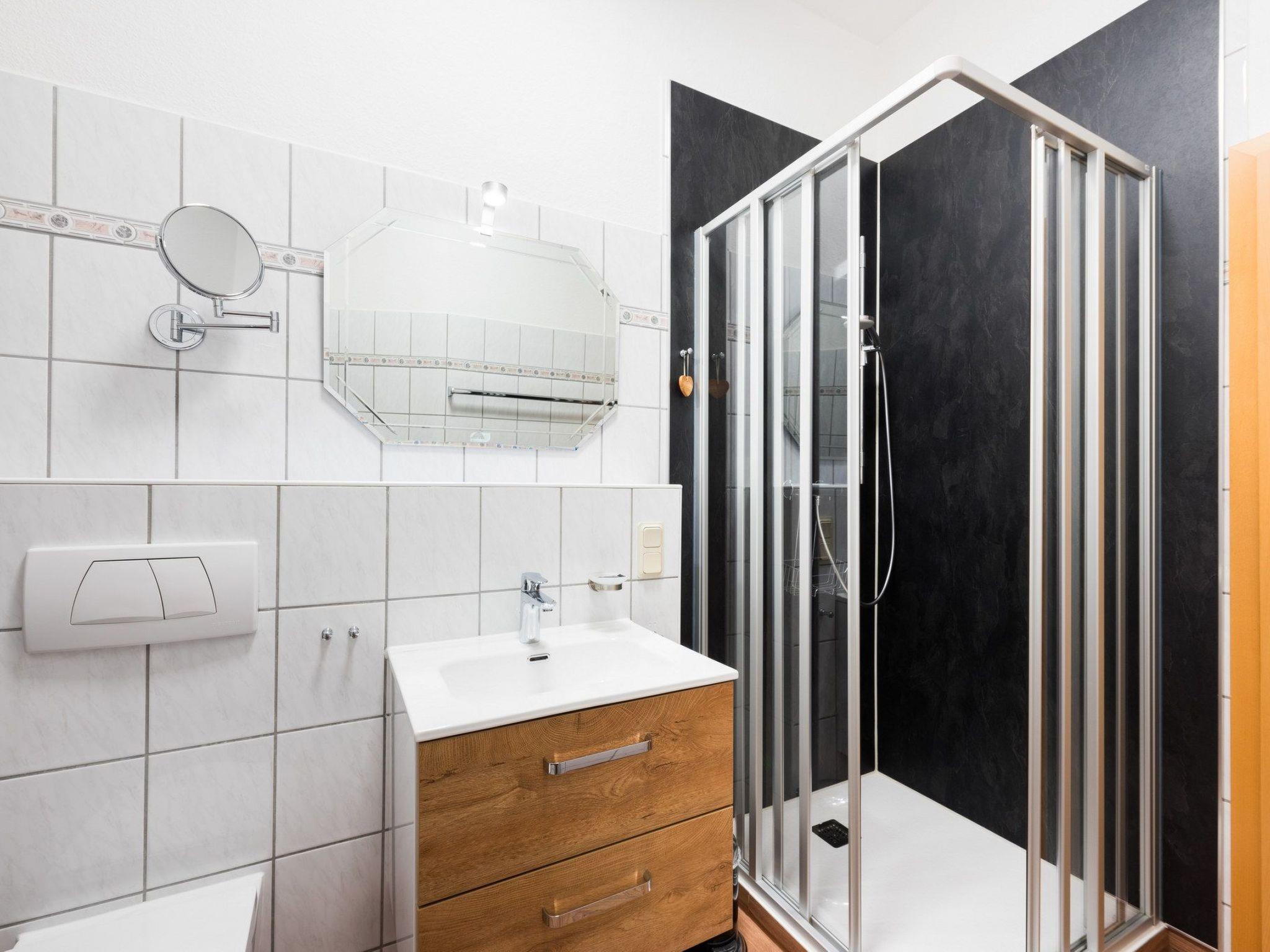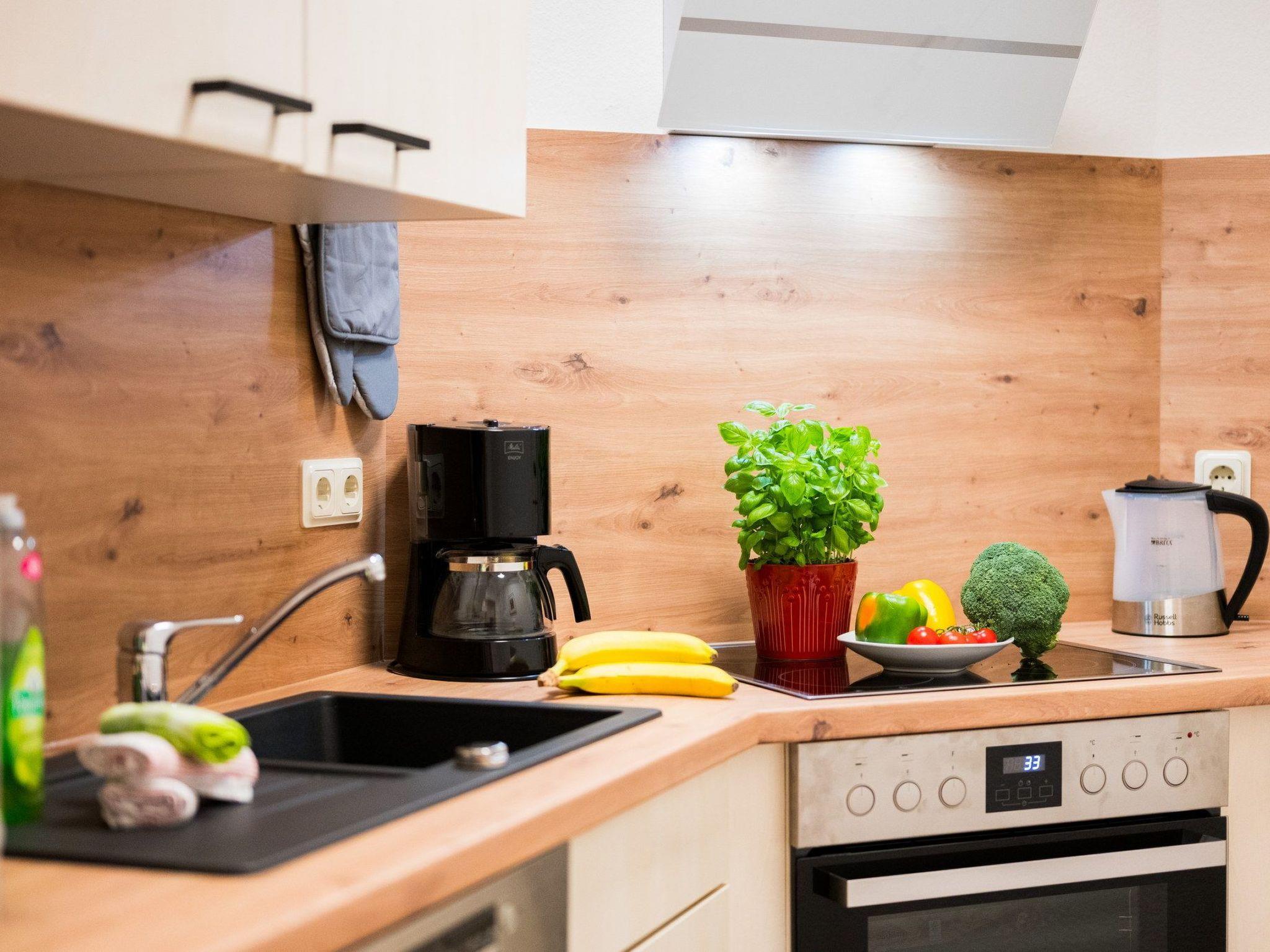 Our holiday flat 'Burggraf' also invites you to a cosy stay on approx. 80 sqm. There is a living room with a dining area and a sofa bed, a bedroom with a double bed, a room behind it with two further beds, a separate kitchen and a bathroom/WC.