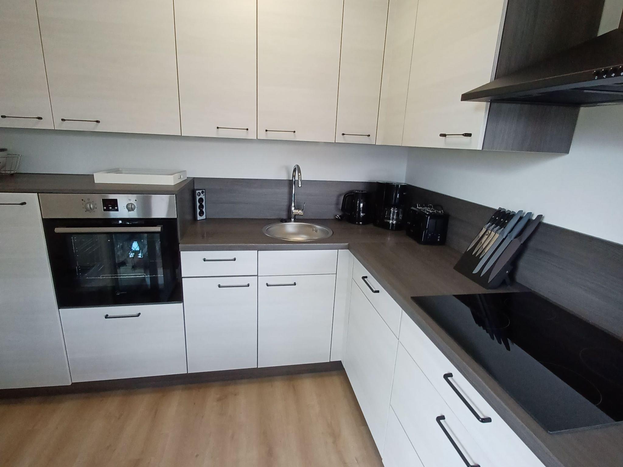 The spacious interior includes a fully equipped kitchen with dishwasher, toaster, coffee machine, kettle, oven, four ceramic hobs and a fridge-freezer, among other amenities. The hallway also has a practical cloakroom with shoe cupboard. In the bright dining/living room with panoramic window, you will find a comfortable lounge area, a 65-inch TV, a large dining table and access to the furnished balcony with a fascinating view. The bedrooms are comfortably furnished, with views of the cable car to Bocksberg, the summer toboggan run and the historic stave church. The bathroom boasts a spacious walk-in shower and a powerful hairdryer.