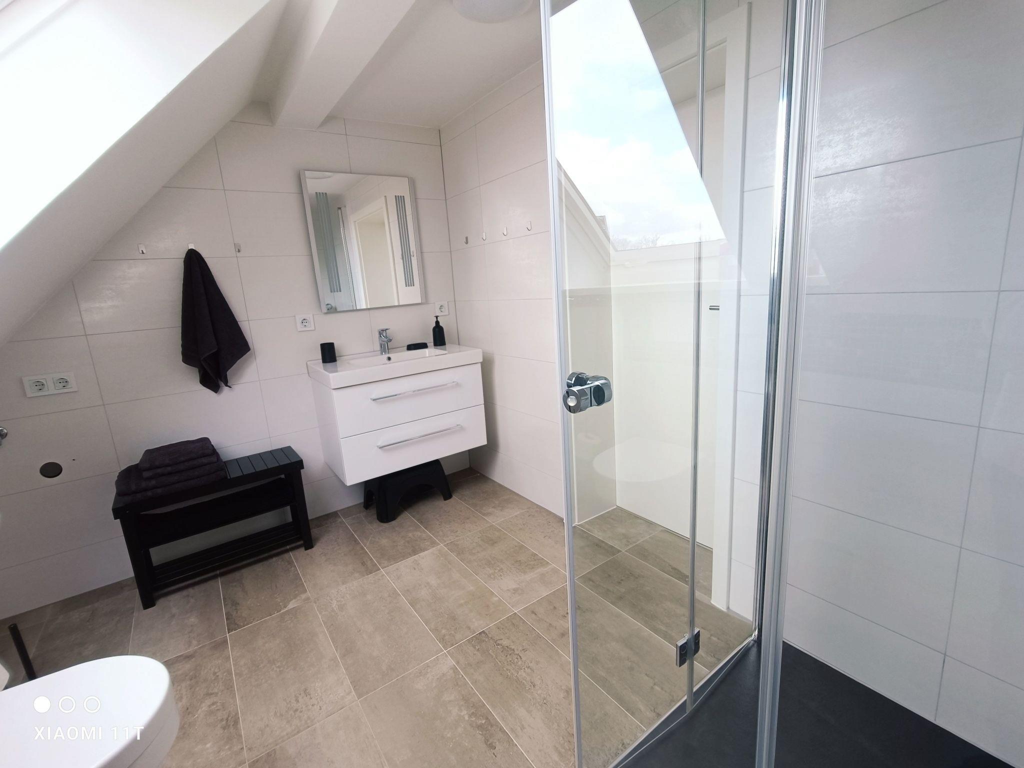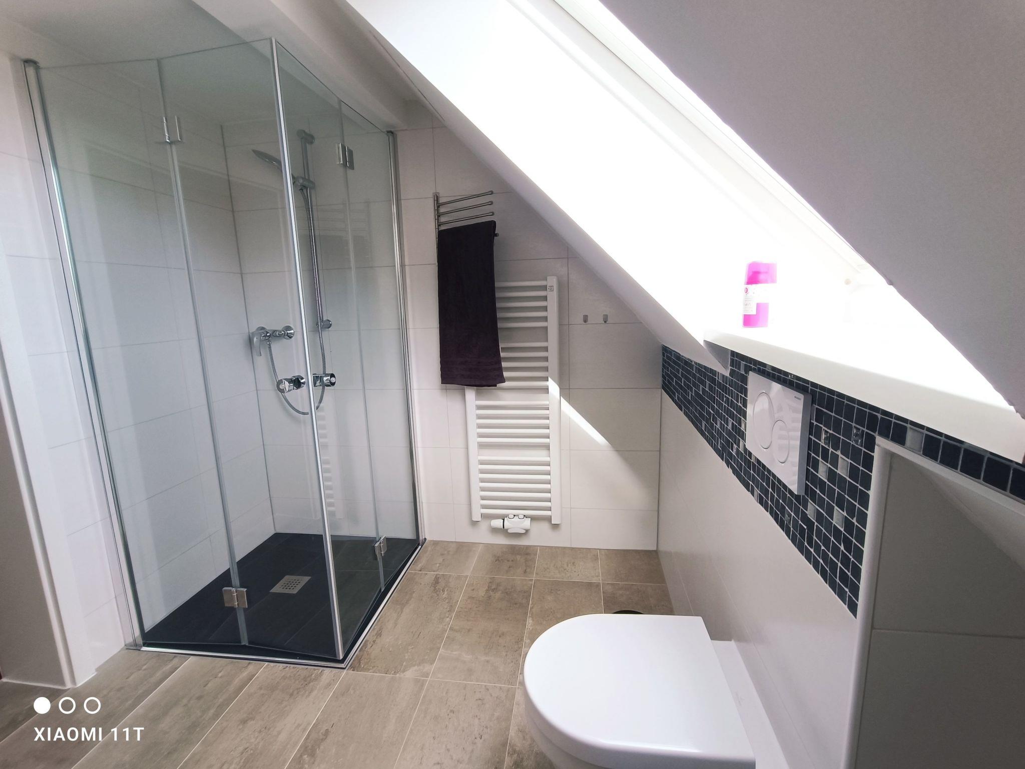 Bedroom two also has a large wardrobe with a full-length mirror and two box-spring beds with toppers (total size per bed 90cm) = the beds can also be pushed together to create a sleeping area of 180cm. Bedroom 3 is located in the converted attic. There are also two box-spring beds with toppers (total size per bed 90cm). An extra bed for a 7th person could be added here on request. A walk-in wardrobe offers enough storage space for clothes.