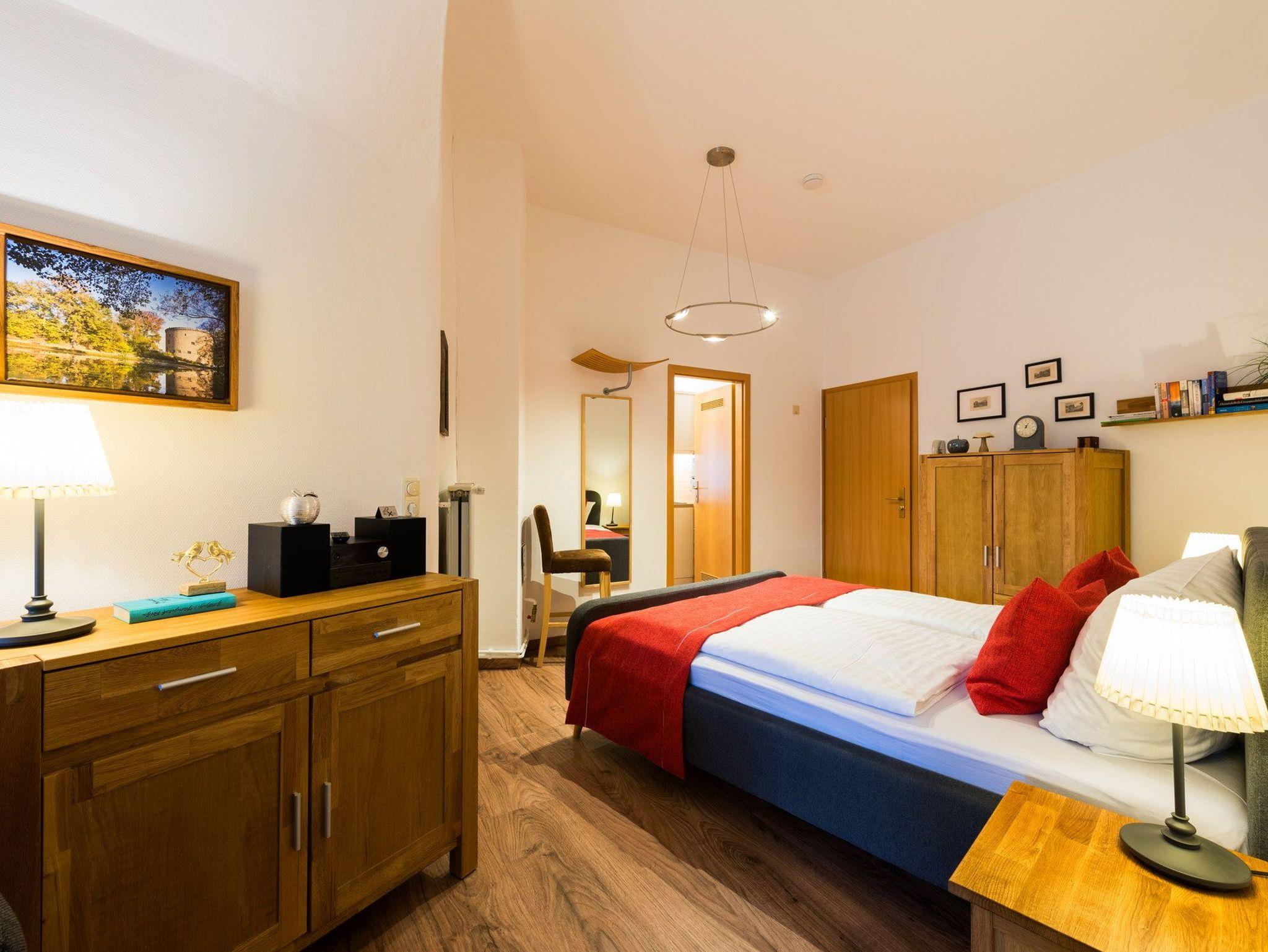 Auf der mittleren Ebene des imposanten Befestigungsturms stehen drei individuell geschnittene und gemütlich eingerichtete Ferienwohnungen für 2 bis 6 Personen ab 3 Übernachtungen zur Verfügung. Das historische Ambiente des 500 Jahre alten Turms ist in den freundlichen und komfortablen Ferienwohnungen zu spüren. Gewölbedecken, teils freigelegte Mauern und der Blick auf die Wallanlagen machen den Zwinger zu einem besonderen Urlaubsziel im Harz.