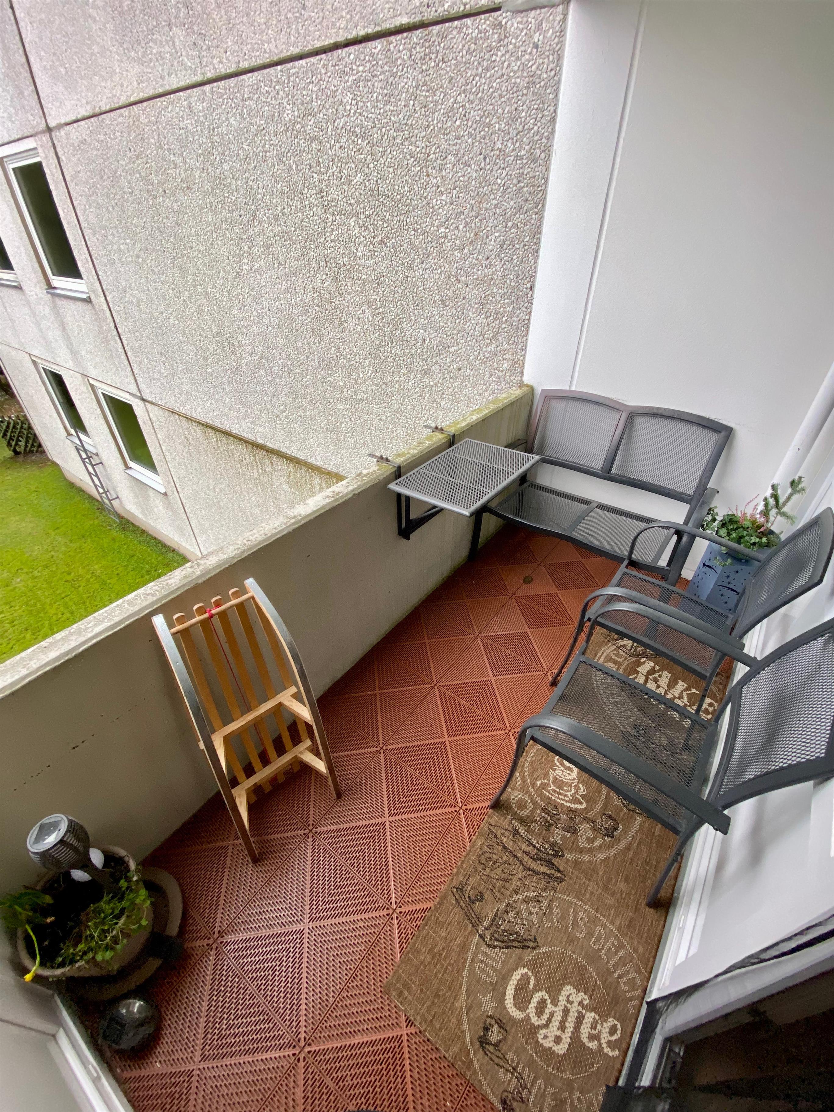 überdachter Balkon mit Tisch,Bank,2 Stühle,Auflagen