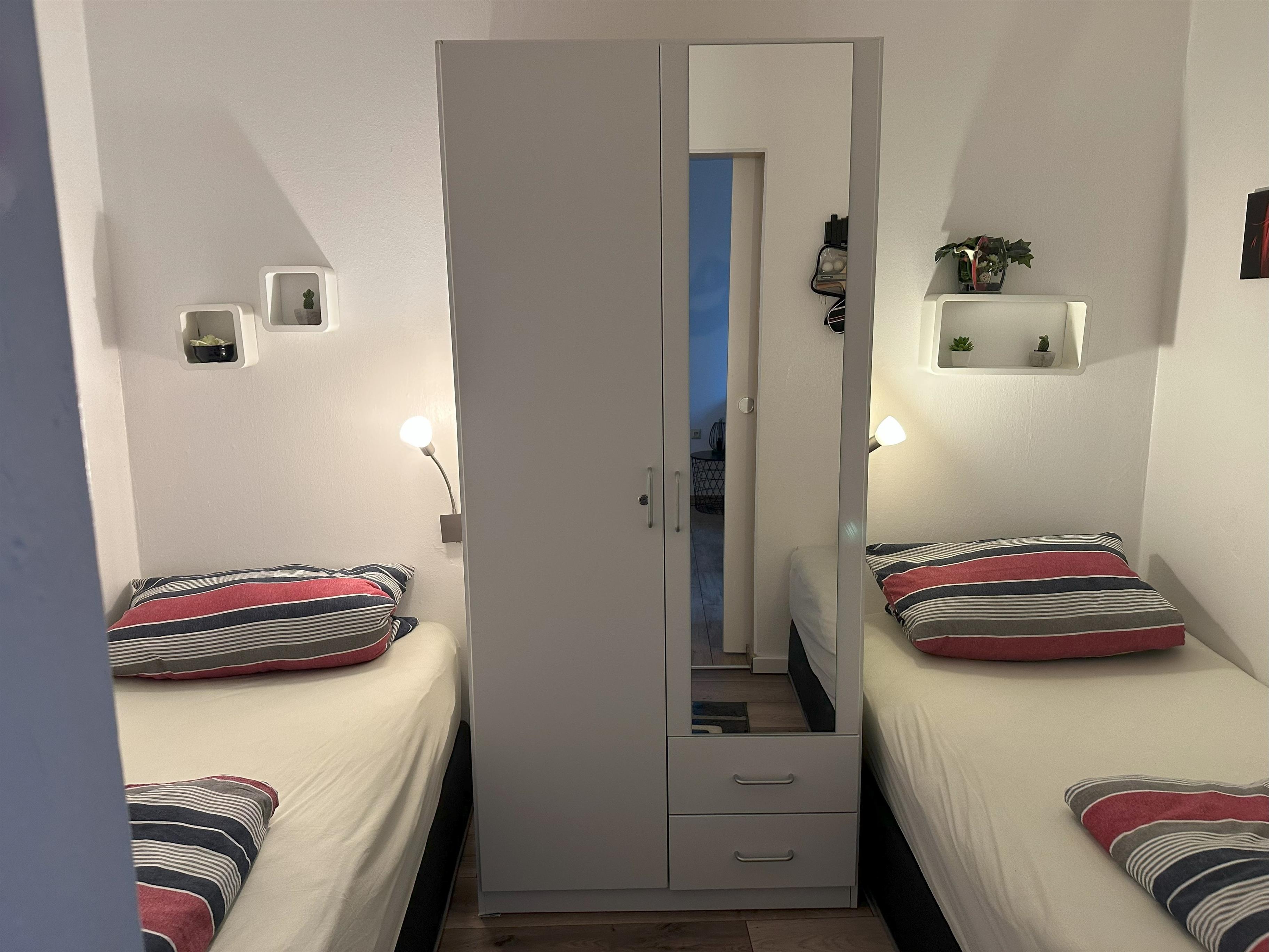 2. Schlafzimmer, mit 2 bequemen Boxspring-Einzelbetten und Schrank