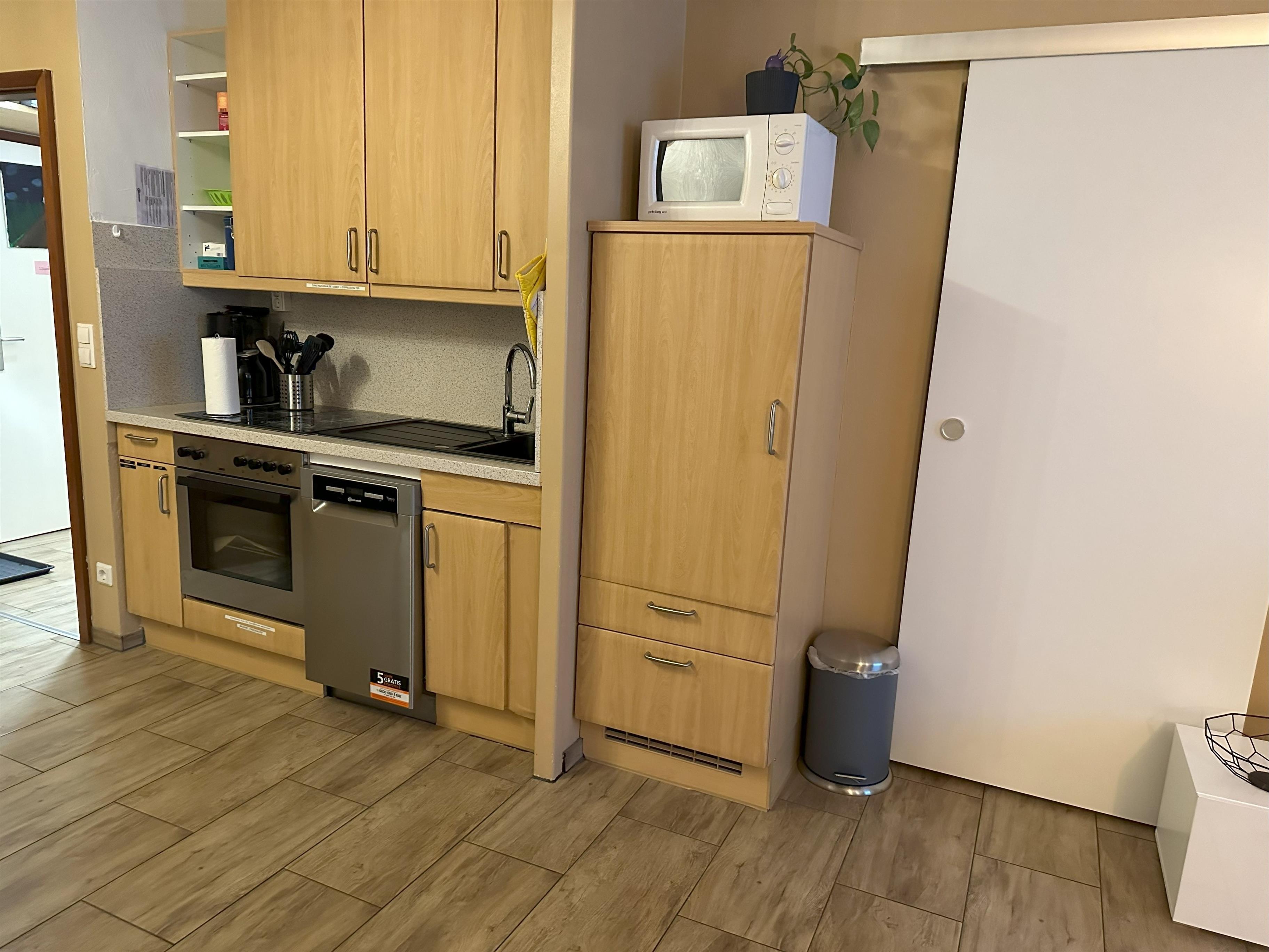 Gepflegte Küchenzeile mit Herd u.Backofen,gut ausgestattet mit vielen E-Geräten,Kühlschrank mit Eisfach, Geschirrspüler