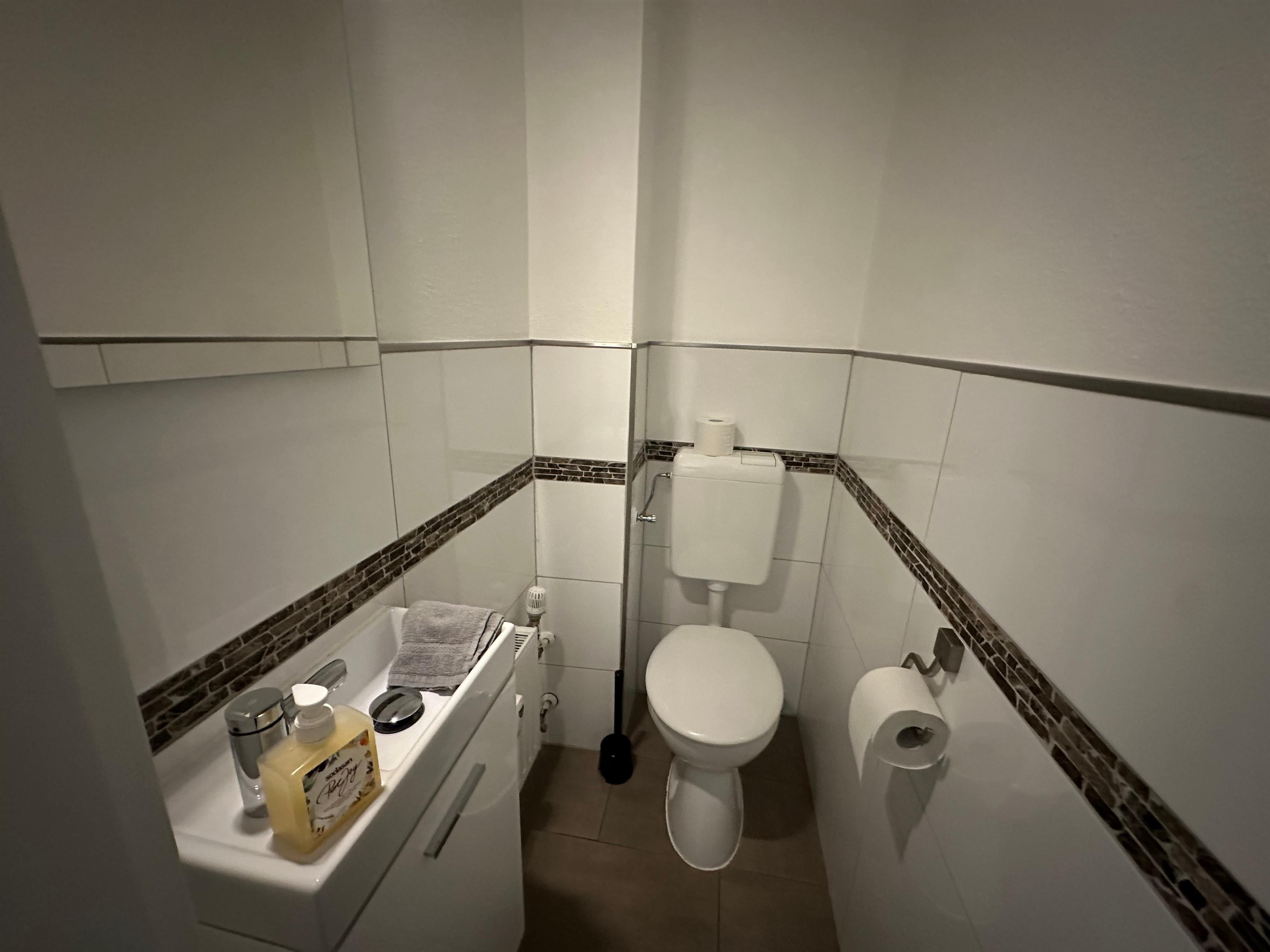 2. Sanitärraum mit Toilette und Handwaschbecken