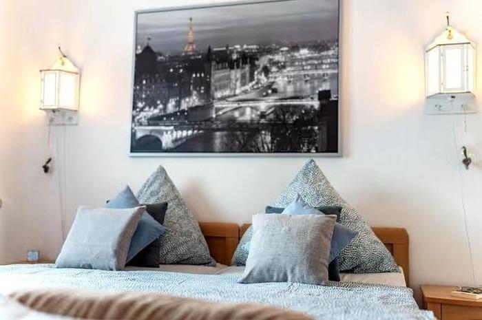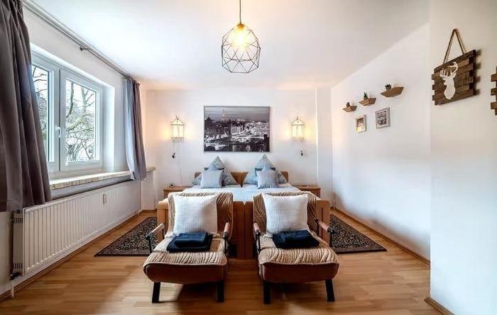 Eigene abschließbare helle Nichtraucher Wohnung 100 qm im EG. Helle, stilvolle, sehr saubere und gepflegte Einrichtung mit liebevollen Details. W-Lan Zugang kostenfrei. Wohnbereich mit Fire TV Stick, Bluetooth Radio und Blu Ray. Haupt-Schlafzimmer mit Doppelbett 180 x 200 mit Gel-Auflage oder auf Wunsch mit 2 getrennten Betten und Kleiderschrank. 2. Schlafzimmer gegen Zusatzgebühr or Ort zubuchbar Kinderbetten sind zubuchbar vor Ort. Separates Esszimmer mit direkten Zugang zur Terrasse und Gäste-Gartennutzung. Küche modern und voll ausgestattet. Bad mit WC und Regendusche. Für Zentralheizung, Wasser und Strom sind inklusive. Bettwäsche und Handtücher sind im Preis nicht enthalten. Alle Zusatzleistungen wie Bettwäsche, Handtücher, Kinderbett, Haustier ect. werden mit der Kaution vor Ort verrechnet.