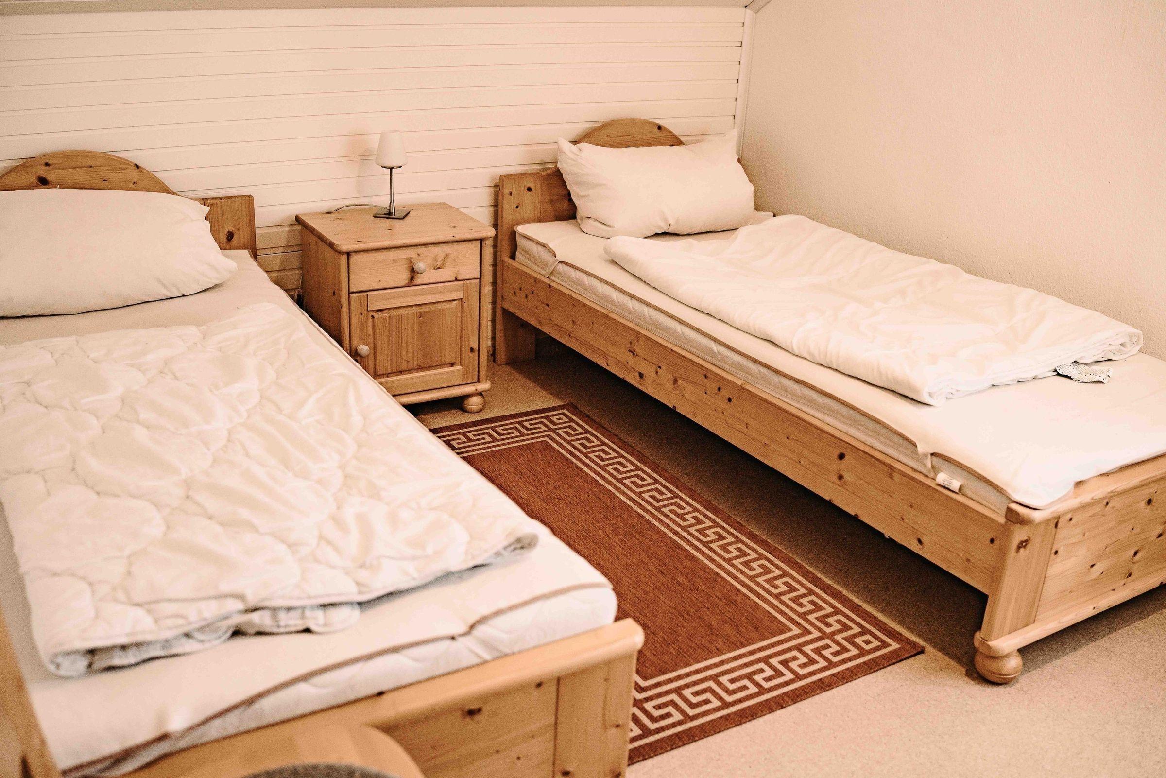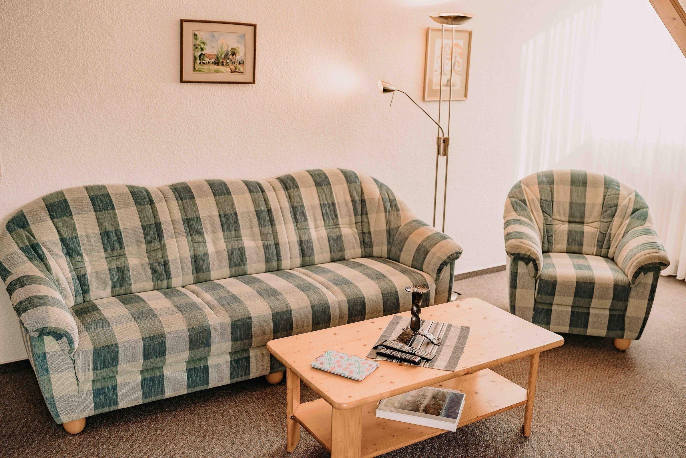 Die Ferienwohnung bietet einen komfortablen Aufenthalt in einer ansprechenden Umgebung. Sie verfügt über zwei Schlafzimmer, eines mit einem Doppelbett und eines mit zwei Einzelbetten, sowie ein Wohnschlafzimmer mit einer Schlafcouch. Die separate Küche ist umfassend ausgestattet mit einem Elektro-/Gasherd, Backofen, Mikrowelle, Kühlschrank, Geschirrspüler, Kaffeemaschine und Toaster. Ein Gefrierfach sowie ein Mixer und Eierkocher stehen ebenfalls zur Verfügung. Das geräumige Badezimmer verfügt über eine Dusche und einen Haartrockner. Für Unterhaltung sorgen eine HiFi-Anlage, ein TV und ein DVD-/Blu Ray-Player. Die Wohnung verfügt zudem über Internet mit WLAN, Heizung und Rauchmelder. Ein Esstisch sowie gemütliche Sofa und Sessel laden zum Entspannen ein. Waschmaschine und Wasserkocher runden die Ausstattung ab. Eine Garderobe sorgt für zusätzlichen Komfort. Ideal für Familien oder Gruppen, die ein Zuhause auf Zeit suchen.