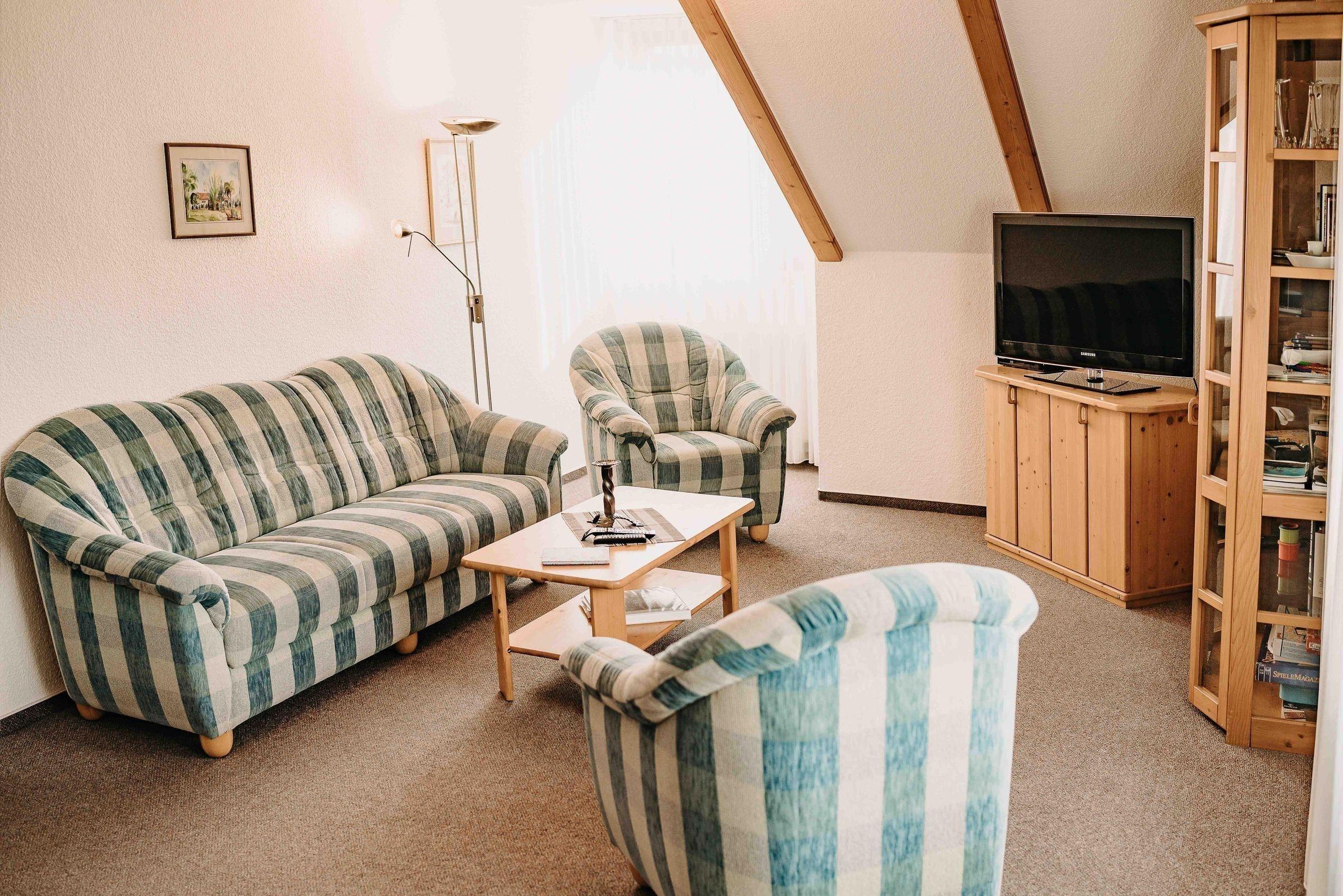 Im Wohnzimmer befindet sich ein HD-Flachbildfernseher.