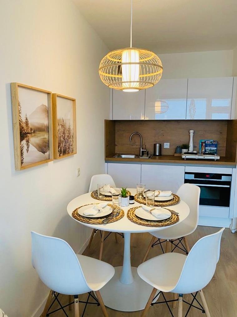 Der Esstisch mit 4 Stühlen lädt zum längeren Verweilen beim essen ein