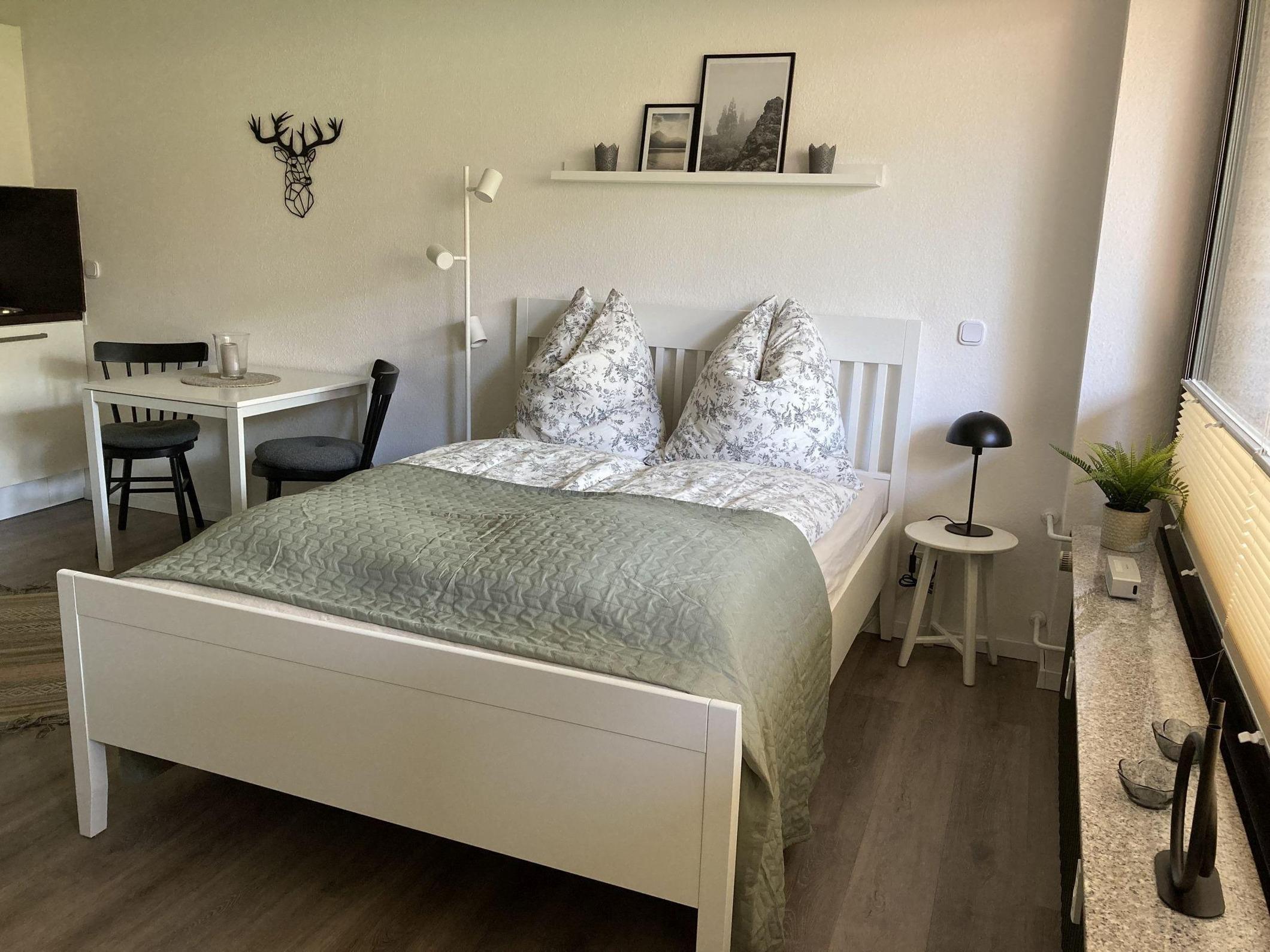 In dieser gemütlichen Ferienwohnung erwartet den Gast ein einladendes Ambiente mit durchdachter Ausstattung. Das lichtdurchflutete Schlafzimmer verfügt über ein komfortables Doppelbett, das Erholung pur verspricht. Die offene Küche ist modern eingerichtet und bietet zahlreiche Annehmlichkeiten wie einen Elektro-/Gasherd, Geschirrspüler, Mikrowelle und Kühlschrank mit Gefriermöglichkeit. Ein Esstisch lädt zum gemeinsamen Speisen ein. Im Badezimmer steht ein Duschbad mit Haartrockner zur Verfügung. Zur Unterhaltung gibt es einen TV, und für die nötige Konnektivität sorgt Internet mit WLAN-Zugang (25 MBit/s). Die Wohnung ist zusätzlich mit einem Sessel, Spiegel, Kosmetikspiegel und einer praktischen Garderobe ausgestattet. Ein Parkplatz ist ebenfalls vorhanden. Rauchmelder sorgen für Sicherheit, während die Heizung für behagliche Wärme an kühleren Tagen sorgt. Diese Ferienwohnung bietet den perfekten Rückzugsort für einen entspannten Aufenthalt.
