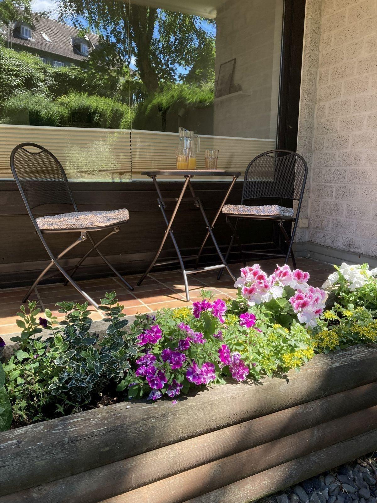 Die Ferienwohnung bietet einen großzügigen, privaten Garten, der ideal für entspannte Stunden im Freien ist. Hier kann man die Natur in vollen Zügen genießen und die Seele baumeln lassen. Die Terrasse lädt dazu ein, gemütliche Frühstücke zu genießen oder den Tag bei einem Glas Wein ausklingen zu lassen. Ein perfekter Rückzugsort für erholsame Ferien.