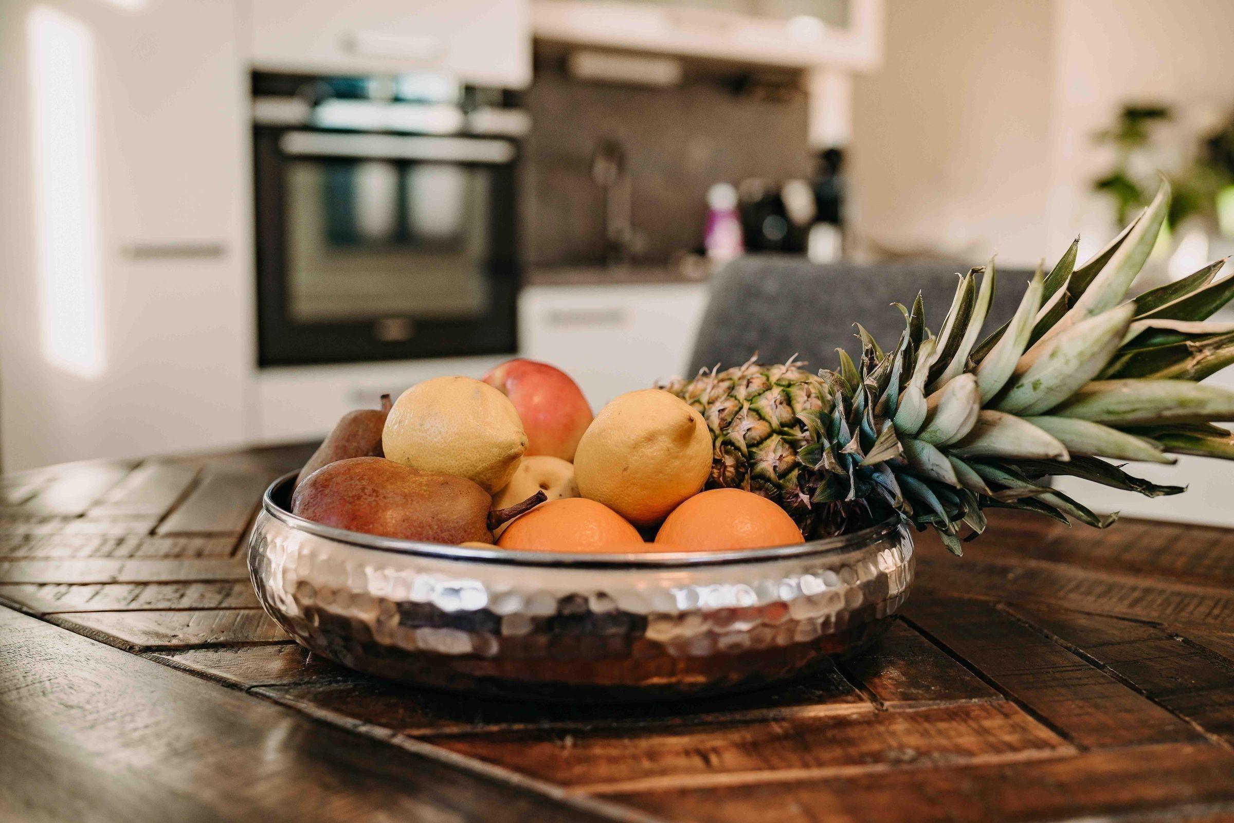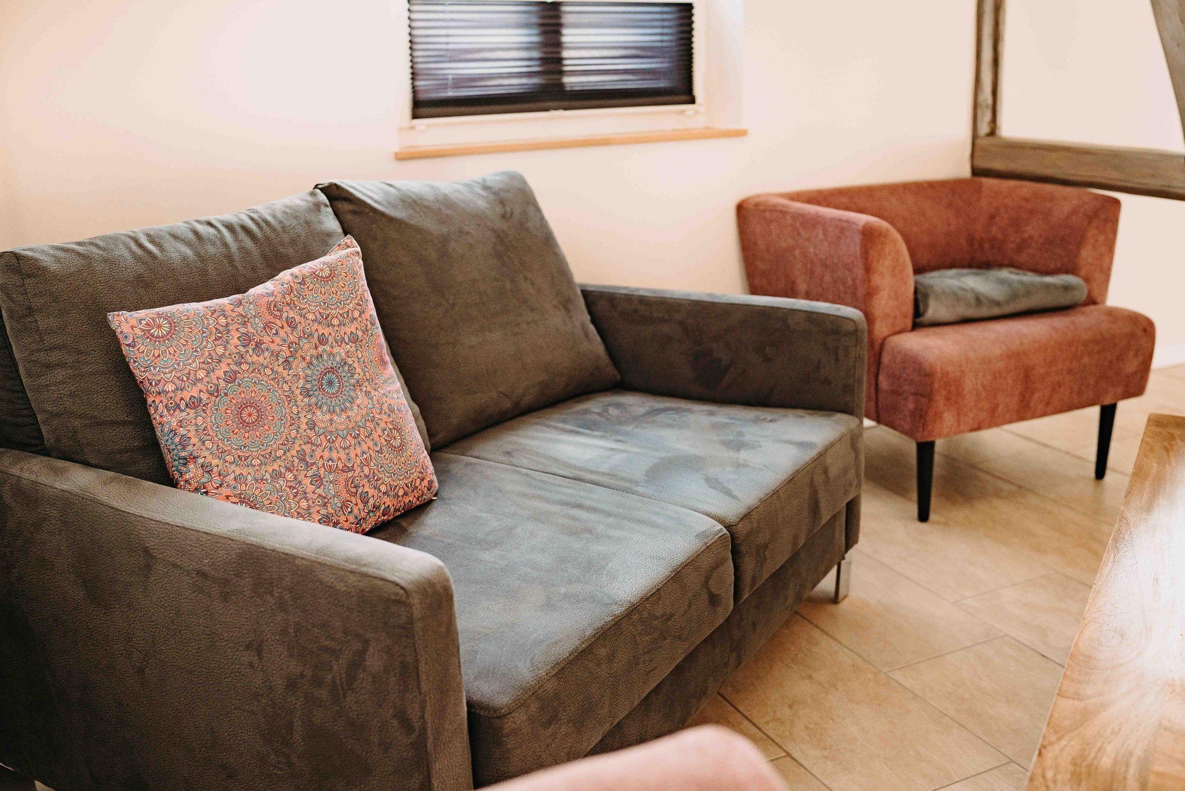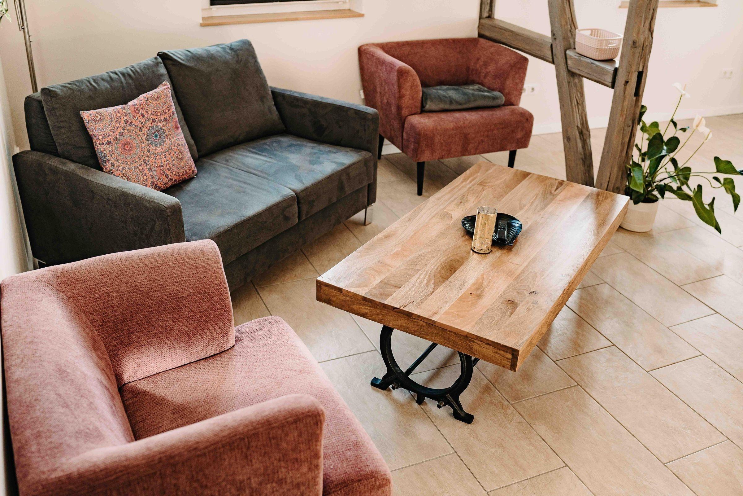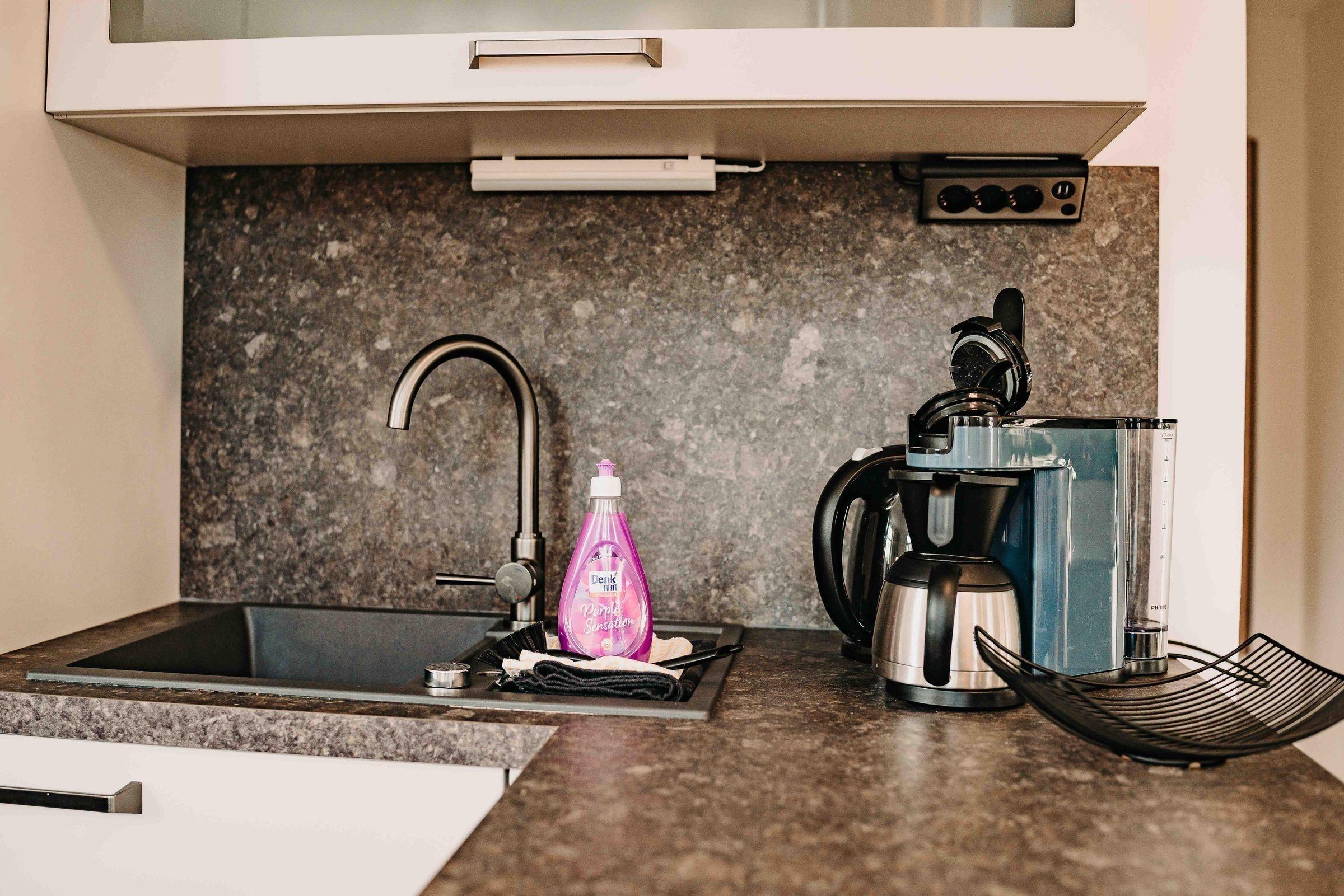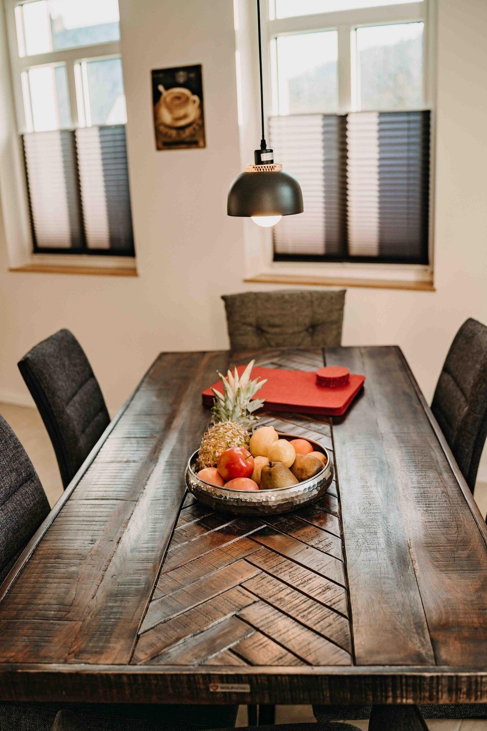 Die Ferienwohnung bietet eine stilvolle und gut durchdachte Ausstattung, die den Aufenthalt für jeden Gast angenehm gestaltet. Der offene Küchenbereich ist mit modernen Geräten ausgestattet, darunter ein Elektro-/Gasherd, Backofen, Geschirrspüler und Kühlschrank. Eine Mikrowelle und Kaffeemaschine stehen ebenfalls zur Verfügung. Im Wohnschlafzimmer finden sich eine bequeme Schlafcouch sowie ein Esstisch, ideal für gesellige Abende. Es gibt zwei Schlafzimmer, eines mit einem Doppelbett und das andere mit zwei Einzelbetten. Das Badezimmer verfügt über ein Fenster, eine Duschbadewanne sowie einen Haartrockner. Für Unterhaltung sorgt ein Fernseher. Praktische Annehmlichkeiten wie Waschmaschine, Wäschetrockner, Staubsauger und Parkplatz sind ebenso vorhanden. Zudem sorgt WLAN-Internet für eine durchgehende Verbindung. Die Wohnung ist einladend und komfortabel, perfekt für entspannte Ferien.