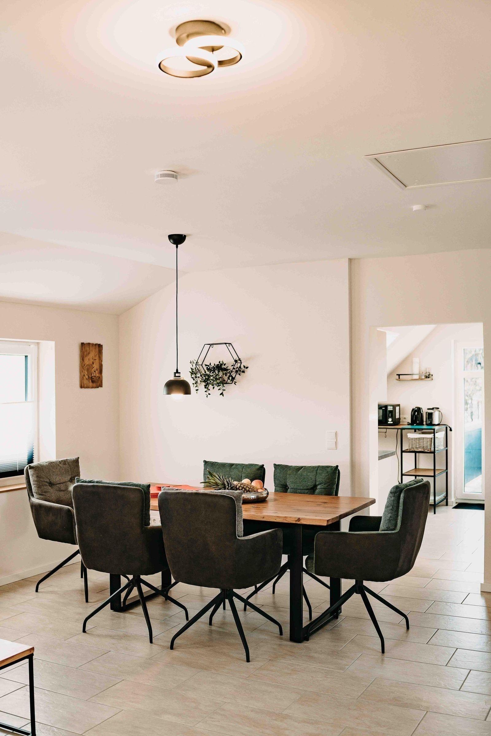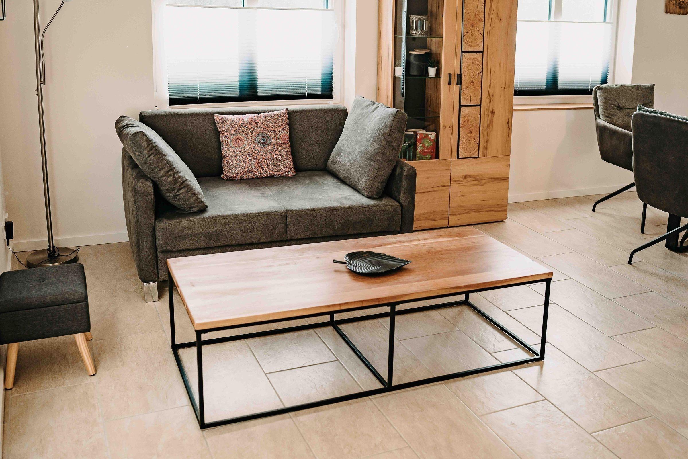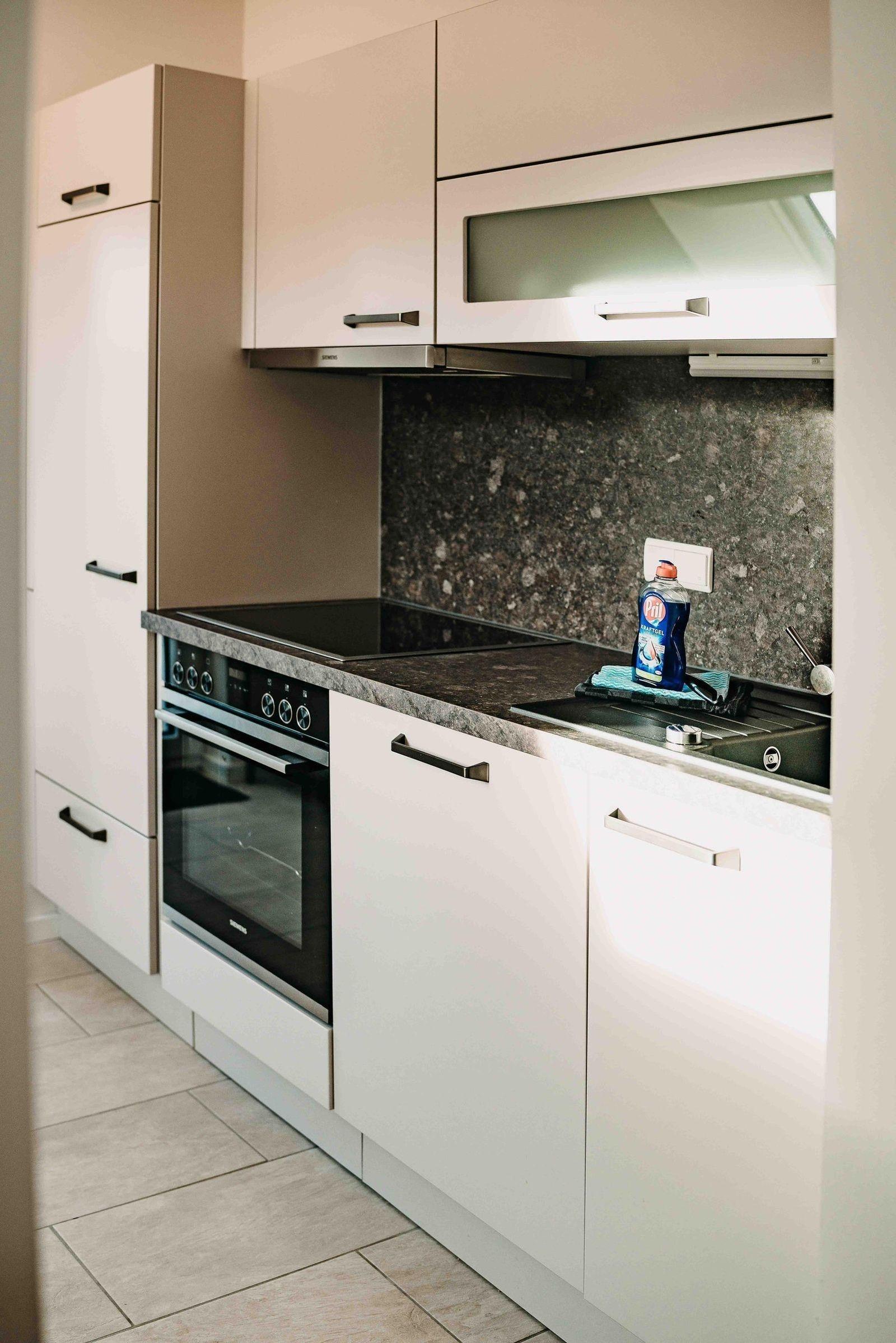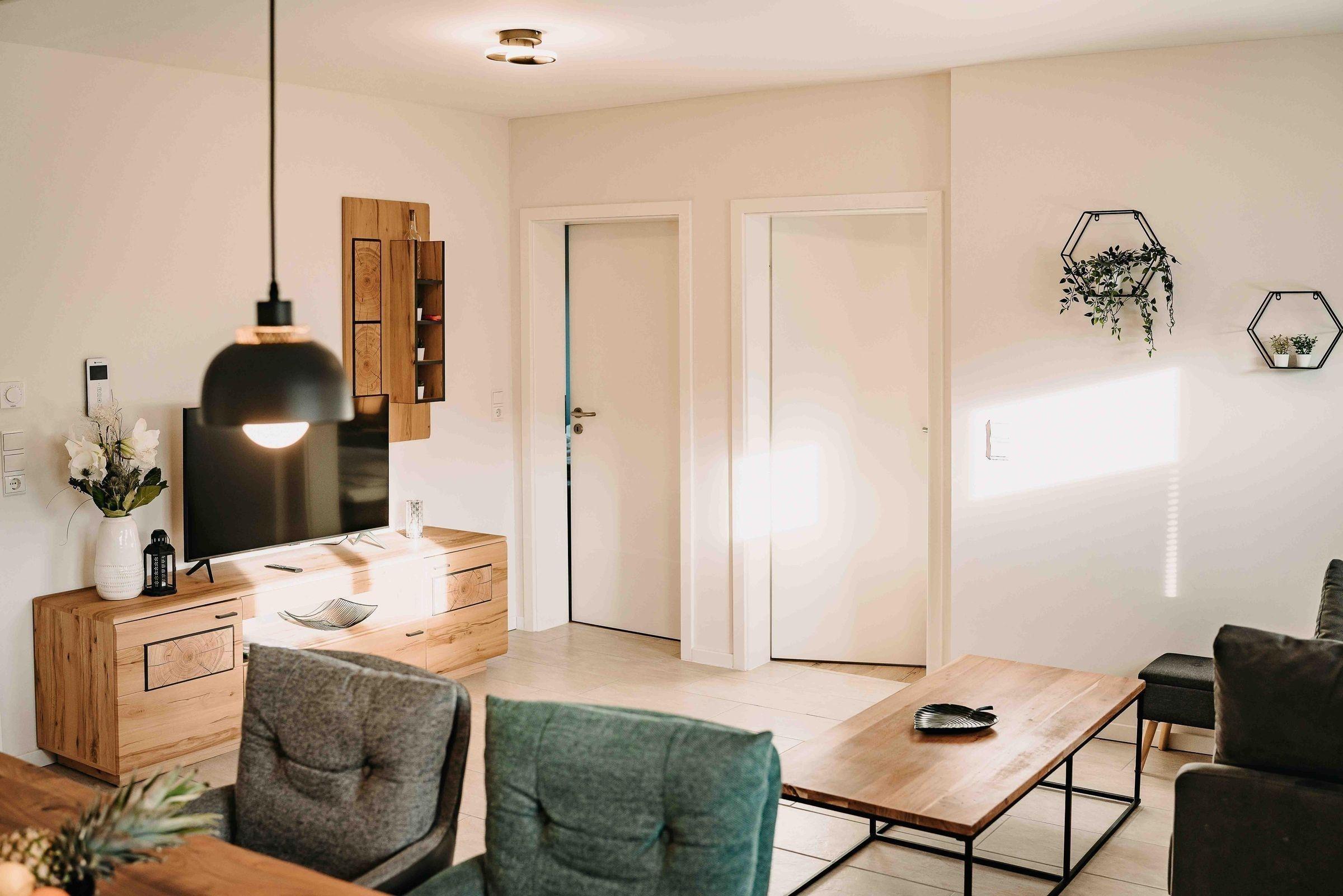 Die Ferienwohnung bietet eine komfortable und moderne Ausstattung für einen entspannten Aufenthalt. Sie verfügt über zwei Schlafzimmer, in denen sich ein Doppelbett sowie zwei Einzelbetten befinden. Im Wohnschlafzimmer steht eine gemütliche Schlafcouch bereit. Die offene Küche ist bestens ausgestattet mit einem Elektro-/Gasherd, Backofen, Mikrowelle, Kühlschrank, Geschirrspüler und Kaffeemaschine. Ein Esstisch lädt zum gemeinsamen Essen ein. Das Badezimmer mit Fenster bietet eine bodengleiche Dusche und eine Badewanne, sowie einen Haartrockner. Der Wohnbereich ist mit einem TV, Sofa und Heizung ausgestattet. WLAN steht zur Verfügung. Für zusätzlichen Komfort sorgen eine Waschmaschine, Wäschetrockner, Staubsauger und ein Parkplatz. Geschirr, Besteck und Geschirrtücher sind ebenfalls vorhanden. Genießen Sie einen unvergesslichen Aufenthalt in dieser optimal ausgestatteten Ferienwohnung.