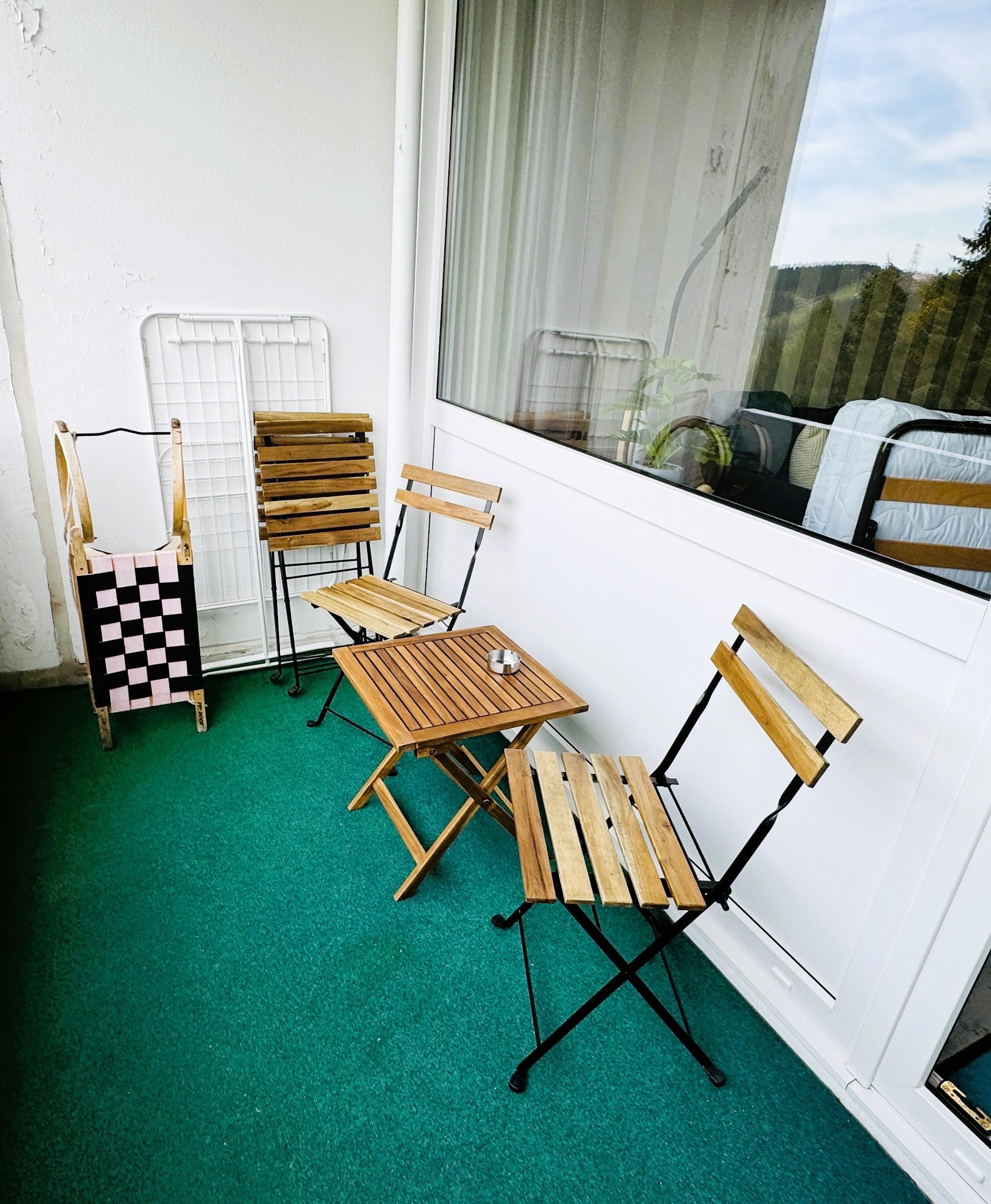• Balkon mit Blick auf den Bocksberg – perfekt für Kaffee am Morgen oder ein Glas Wein am Abend