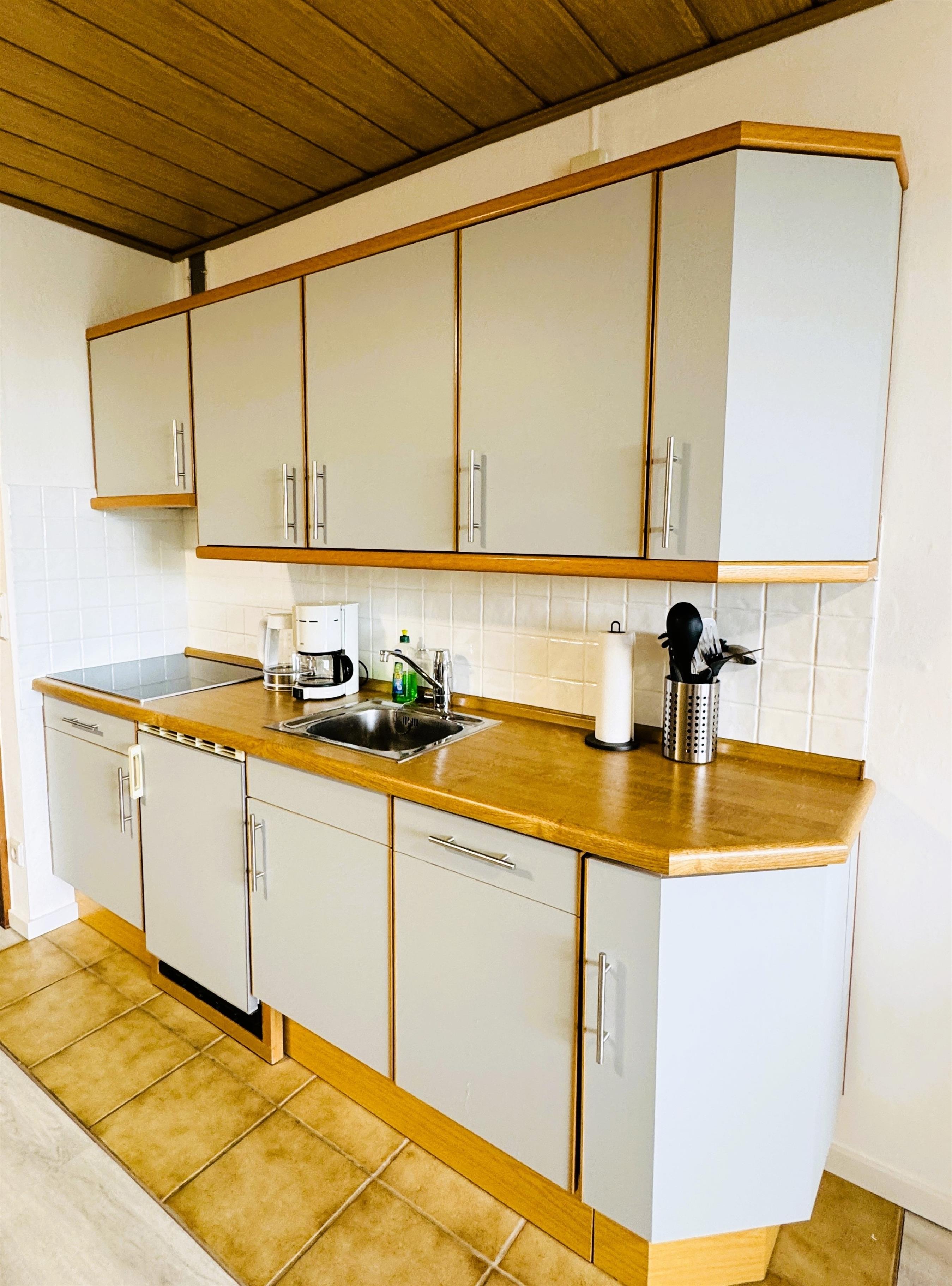 • Komplett ausgestattete, offene Küche mit Geschirrspüler – ideal zum Kochen wie zu Hause