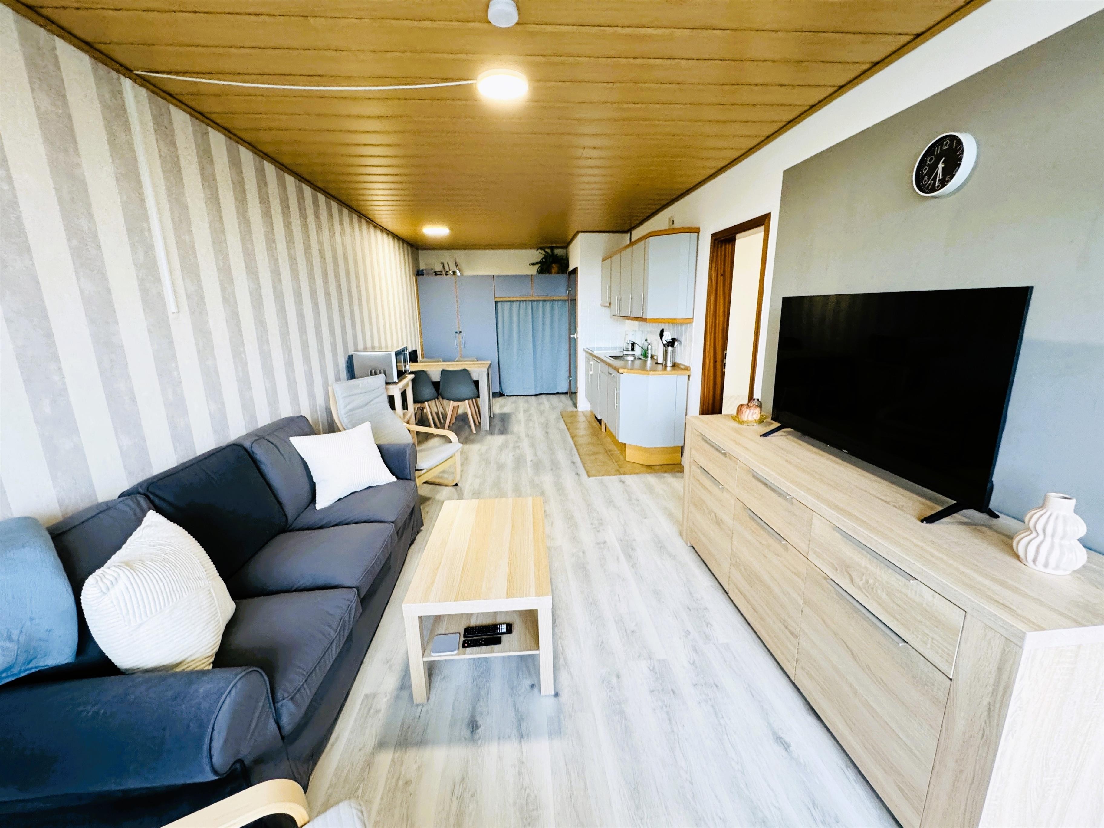 • Wohnbereich mit gemütlichem Sofa, großem Smart-TV & Essbereich