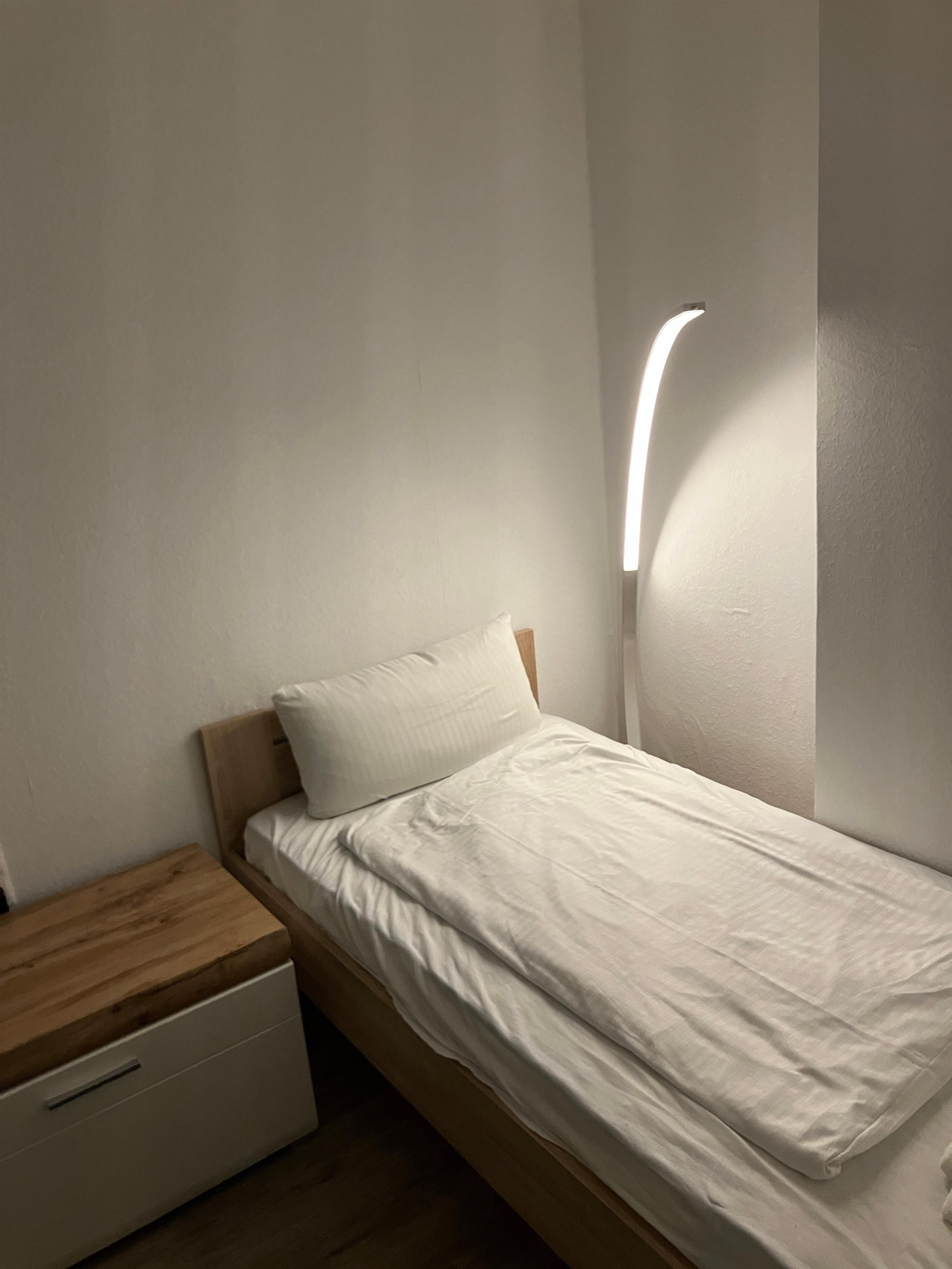 Im Schlafzimmer befindet sich ein Bett 140x200 und in dem zweiten Zimmer ein Bett 90 x 200.