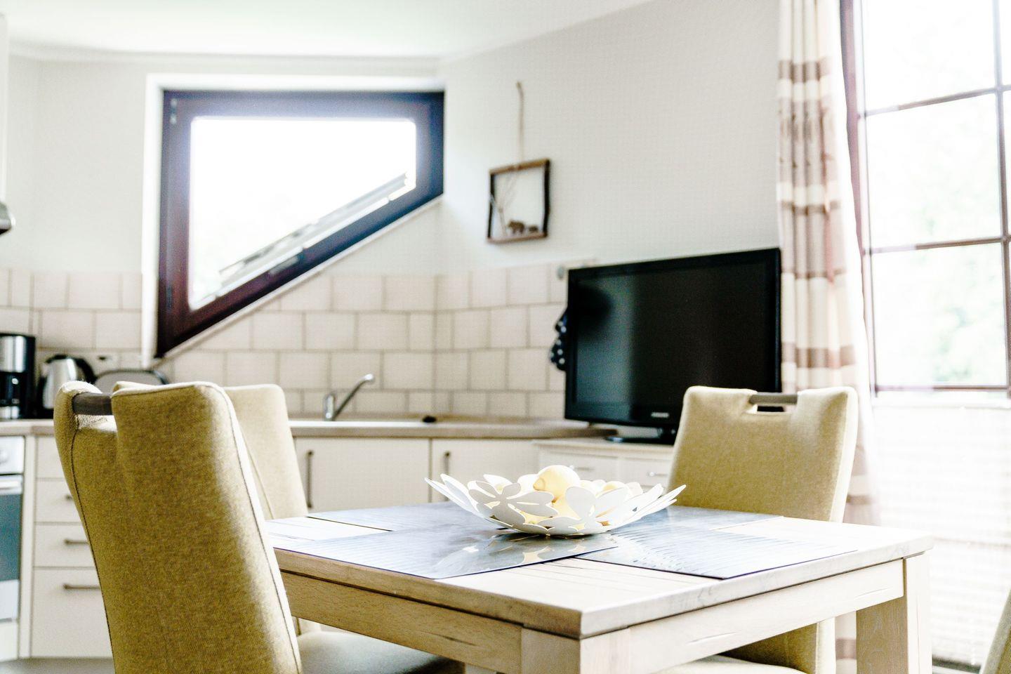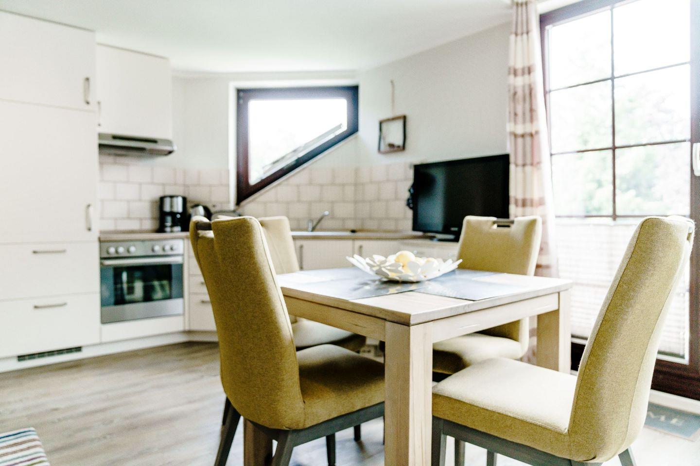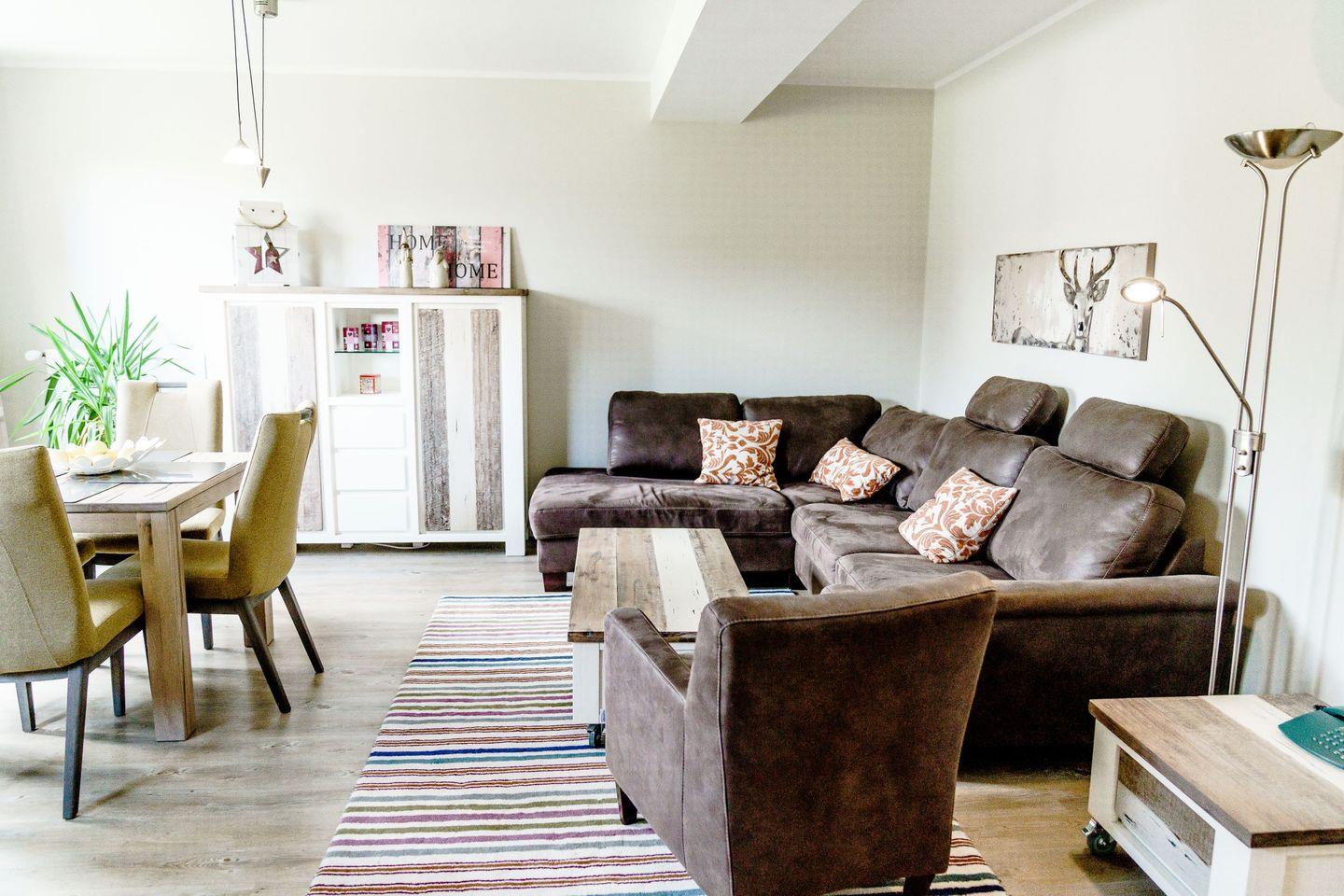 Die Wohnung zeichnet sich durch ein modernes, offenes Raumkonzept aus, das Wohnzimmer und Küche harmonisch vereint. Genießen Sie entspanntes Beisammensein auf der gemütlichen Sofaecke, während Sie einen Film auf dem großzügigen 44 bis 55 Zoll großen Flachbild-TV mit Kabelanschluss ansehen. Der Blu-ray-Player und die Auswahl an DVDs sorgen dafür, dass keine Langeweile aufkommt. Für die jüngeren Gäste stehen Spiele und eine Spielekonsole zur Verfügung, die für zusätzlichen Spaß sorgen.
