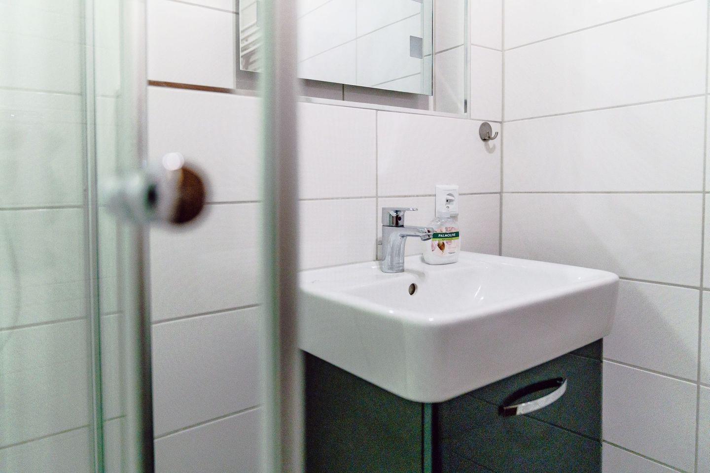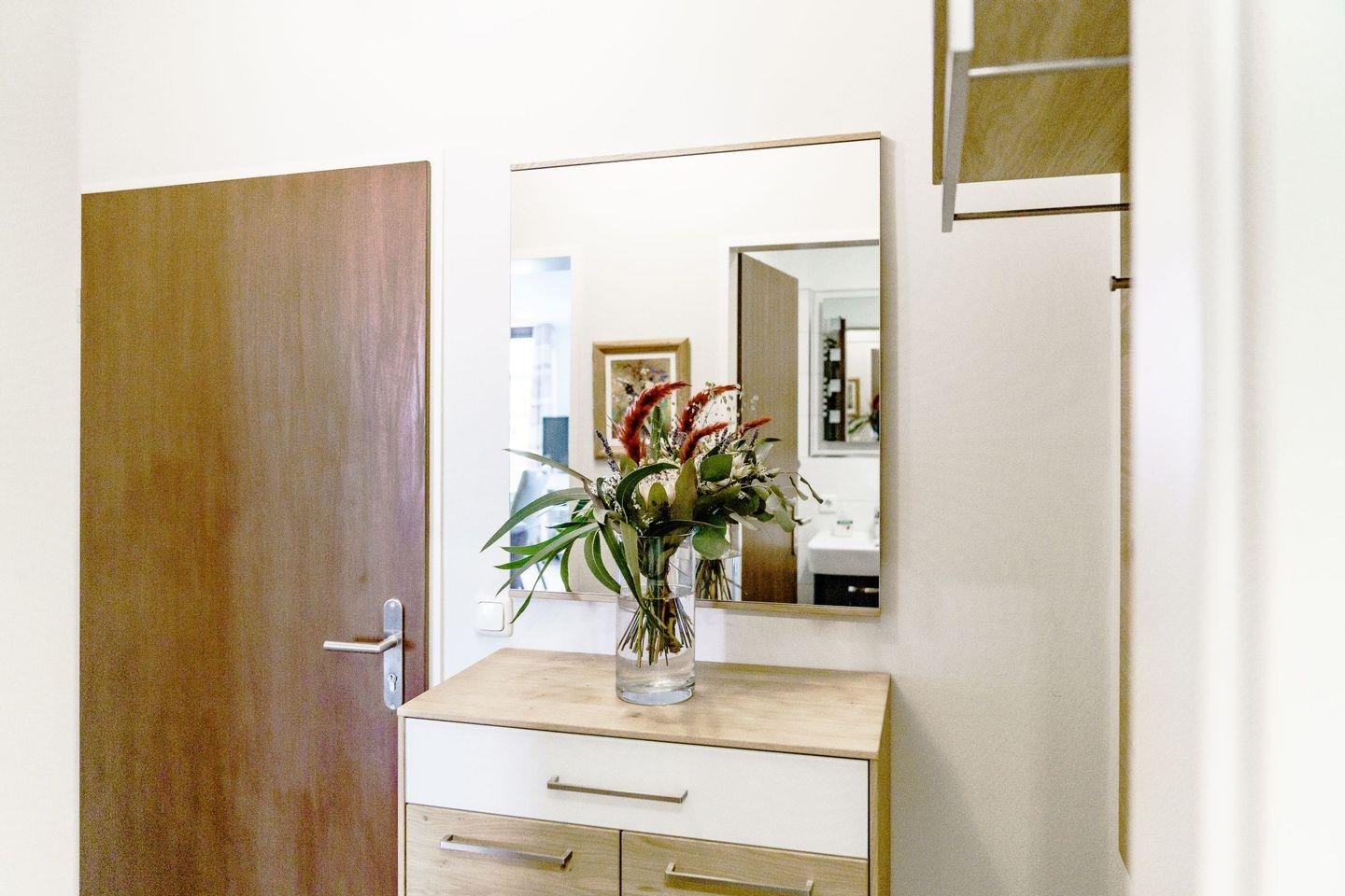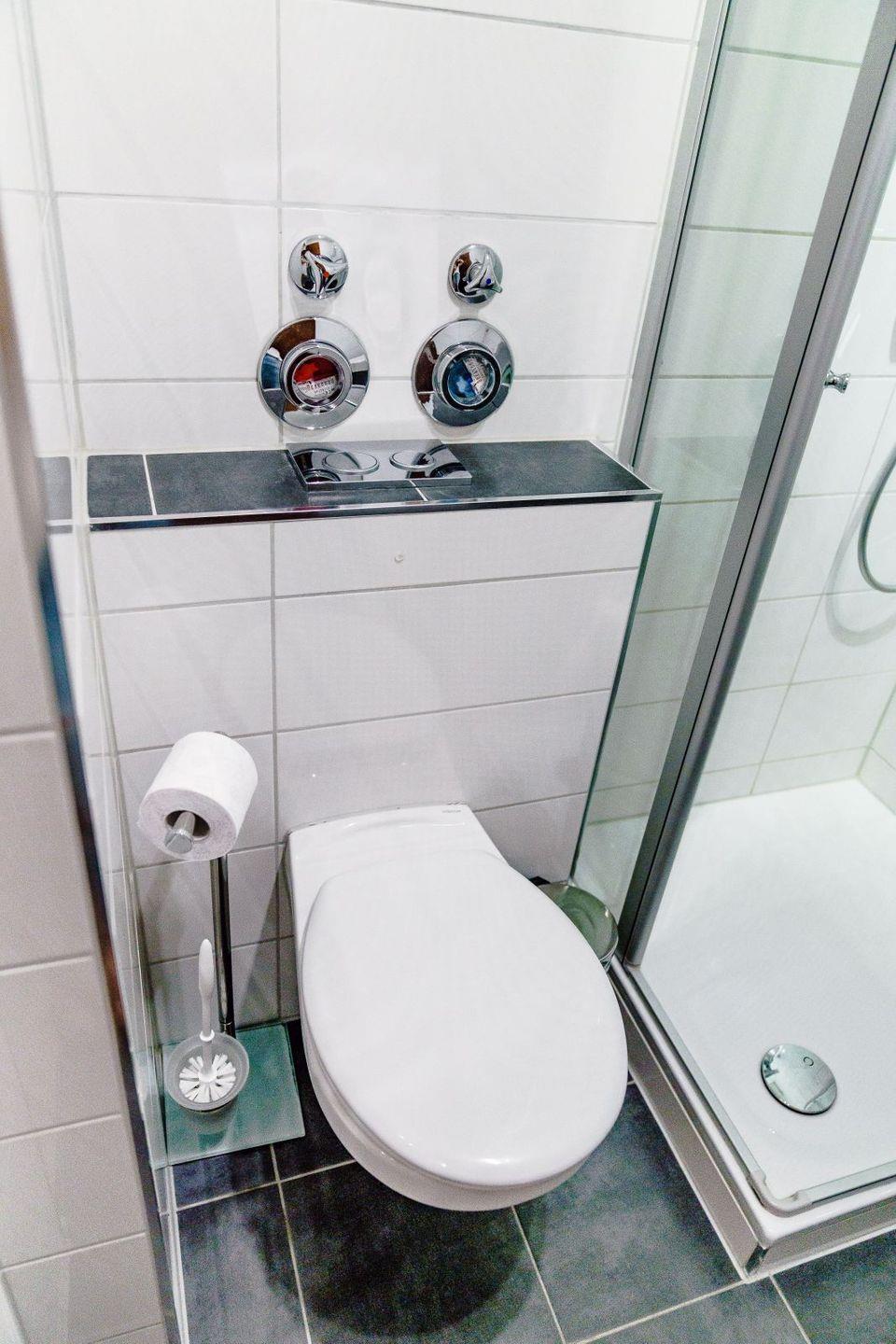 Zur privaten Entspannung wurde ein hochwertiges Badezimmer mit bodengleicher Dusche, WC, Waschbecken und Kosmetikspiegel integriert. Handtücher, Seifen und weitere Badausstattungen sind selbstverständlich vorhanden.