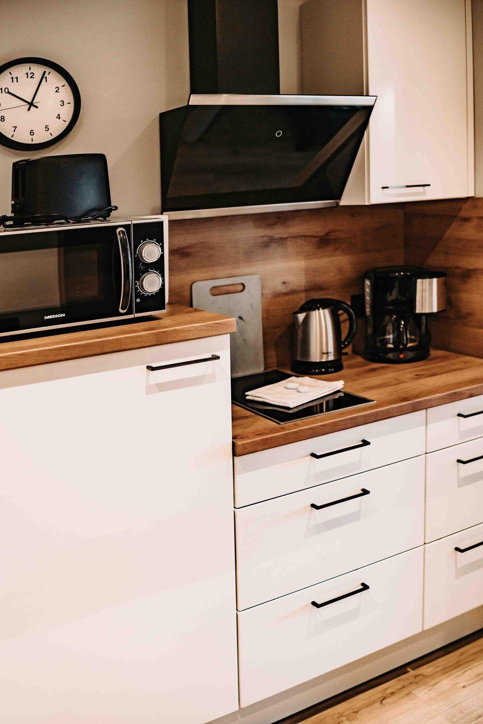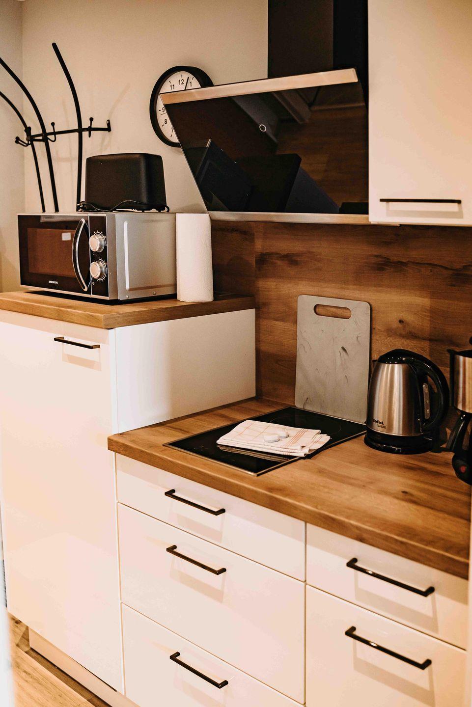 -Pantryküche inkl. 2-Plattenherd, Kühlschrank, Wasserkocher, Kaffeemaschine, Toaster