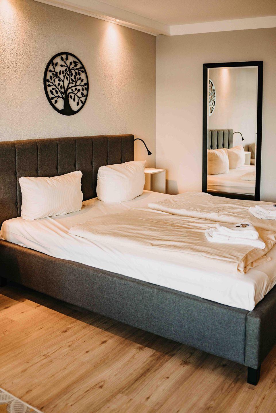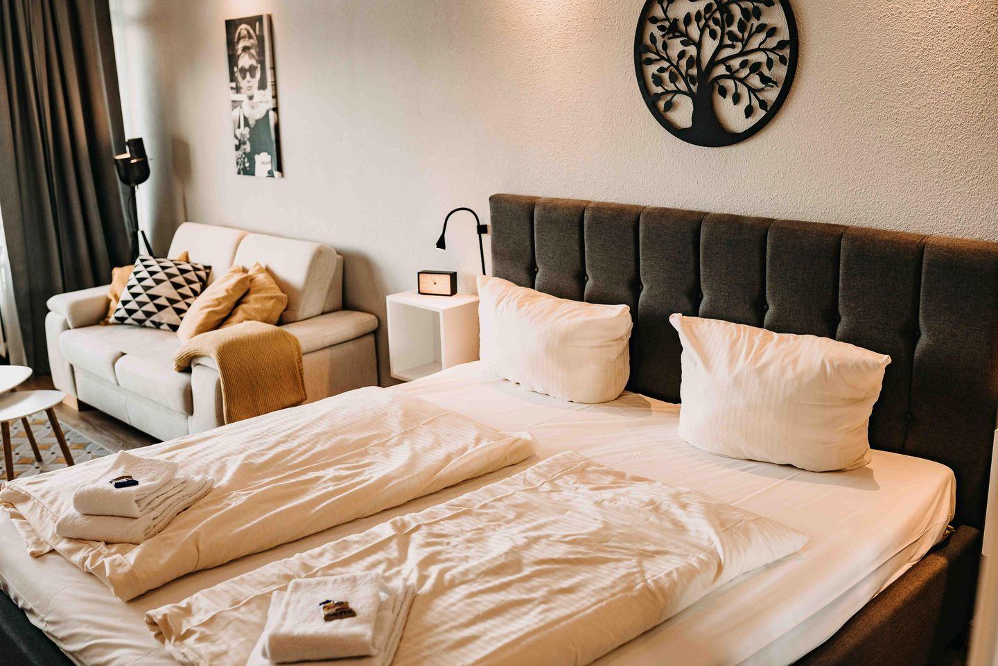 -Doppelbett 2x2m und Schlafcouch (Erstaustattung Bettwäsche & Handtücher)