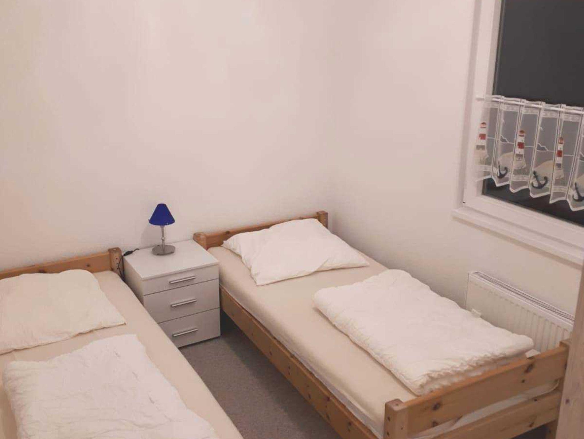 Raumaufteilung: 1 Schlafraum (2 Einzelbetten), 1 Schlafraum (1 Doppelbett), 1 Wohnraum, 1 Flur, 1 separate Küche, 1 Badezimmer mit Dusche.