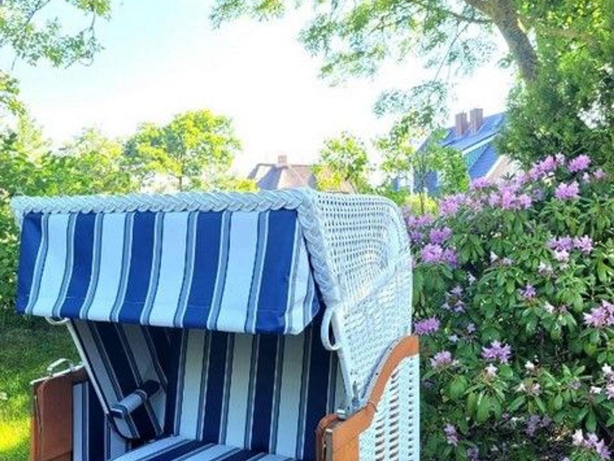 Sie haben in dem grossen Garten einen separatem Terassenplatz mit Gartenmöbeln und Strandkorb. Der Weg zum Strand ist ca 7 Minuten zu Fuss.