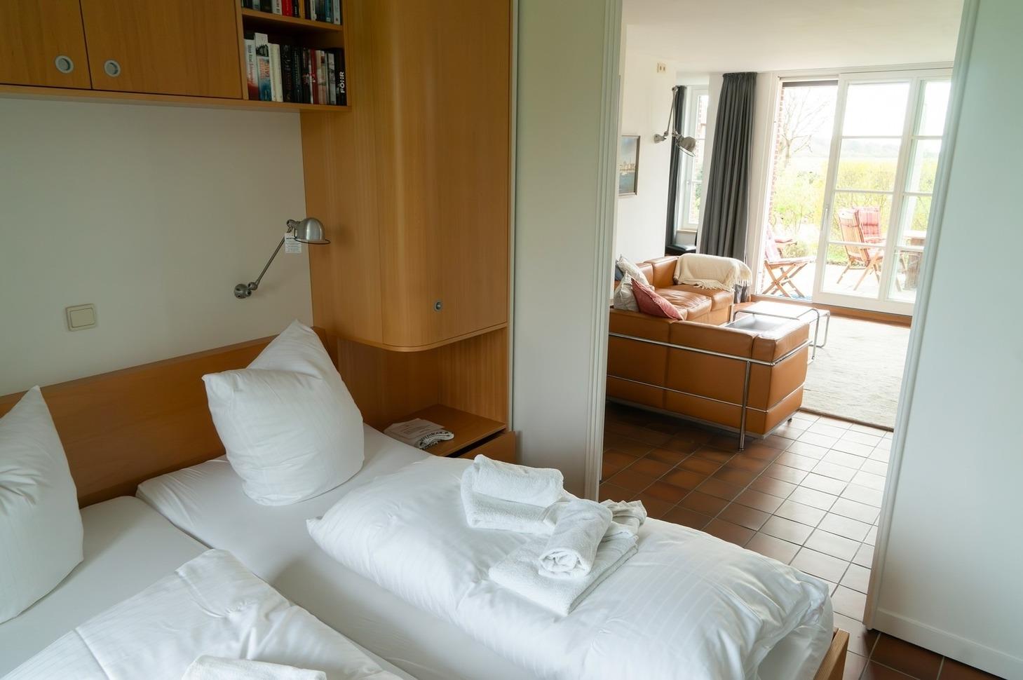 Hochwertige Betten in Komfortgröße (180 x 210 cm) sorgen für erholsame Nächte und die geräumigen Kleiderschränke bieten viel Platz für Ihre Urlaubsgarderobe.