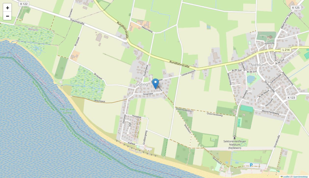 In der ruhigen Lage von Goting und in direkter Nähe zum malerischen Goting Kliff gelegen, können Sie am bewachten Badestrand entspannen und die Nordseeluft in Ihrem Strandkorb - welcher Ihnen in der Strandkorbsaison zur Verfügung steht - genießen (Bereitstellungseinschränkungen bei Küstenschutzmaßnamen und Sturmfluten möglich.).