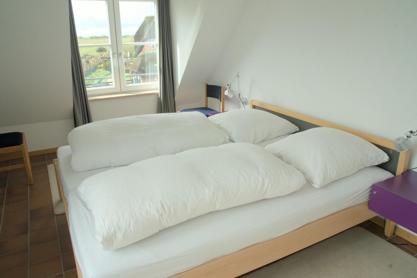 Die komfortablen Schlafzimmer mit hochwertigen Betten (180 x 210 cm) sorgen für erholsamen Schlaf und ein großzügiger Kleiderschrank bietet viel Platz für Ihre Urlaubsgarderobe.