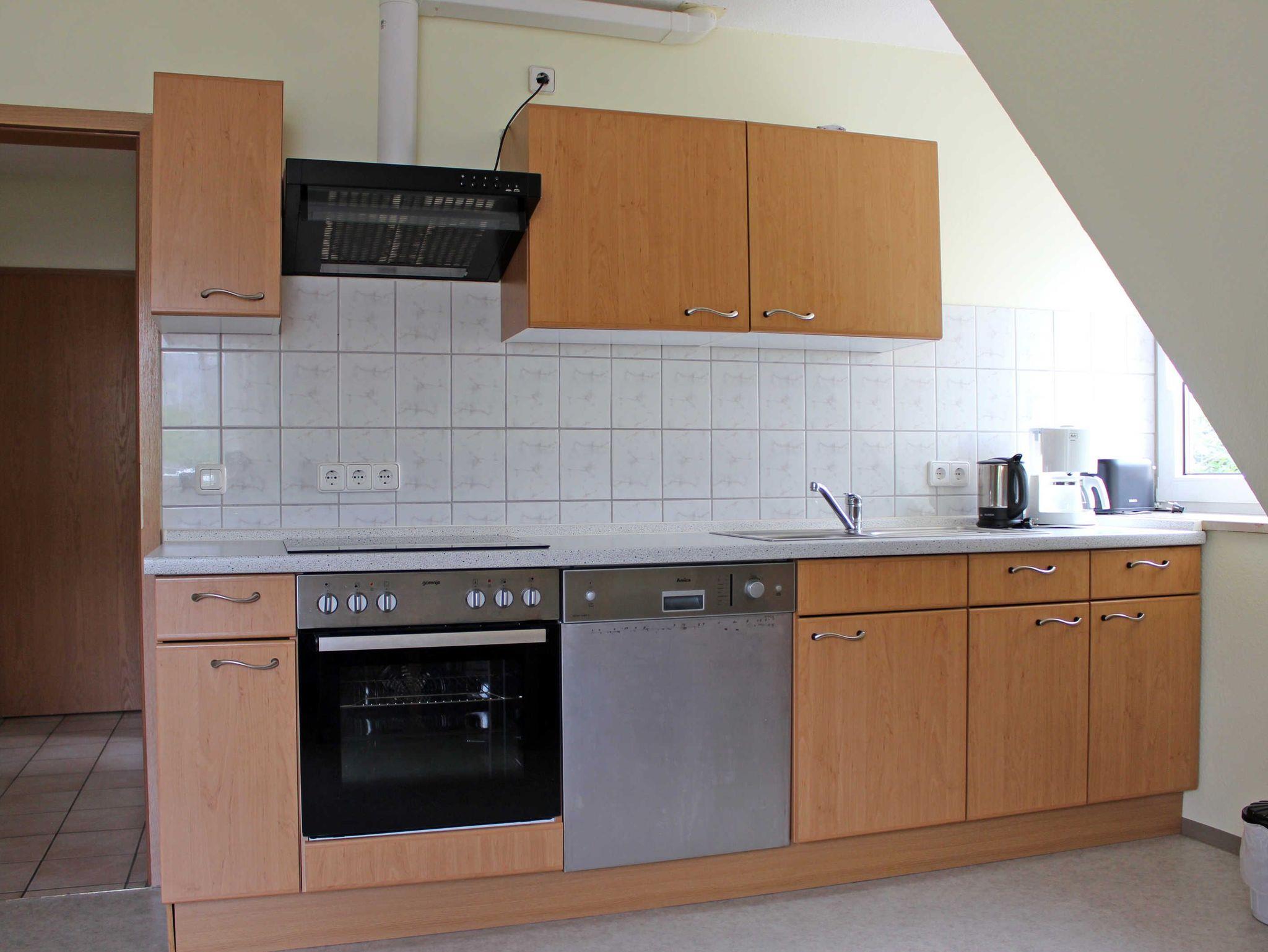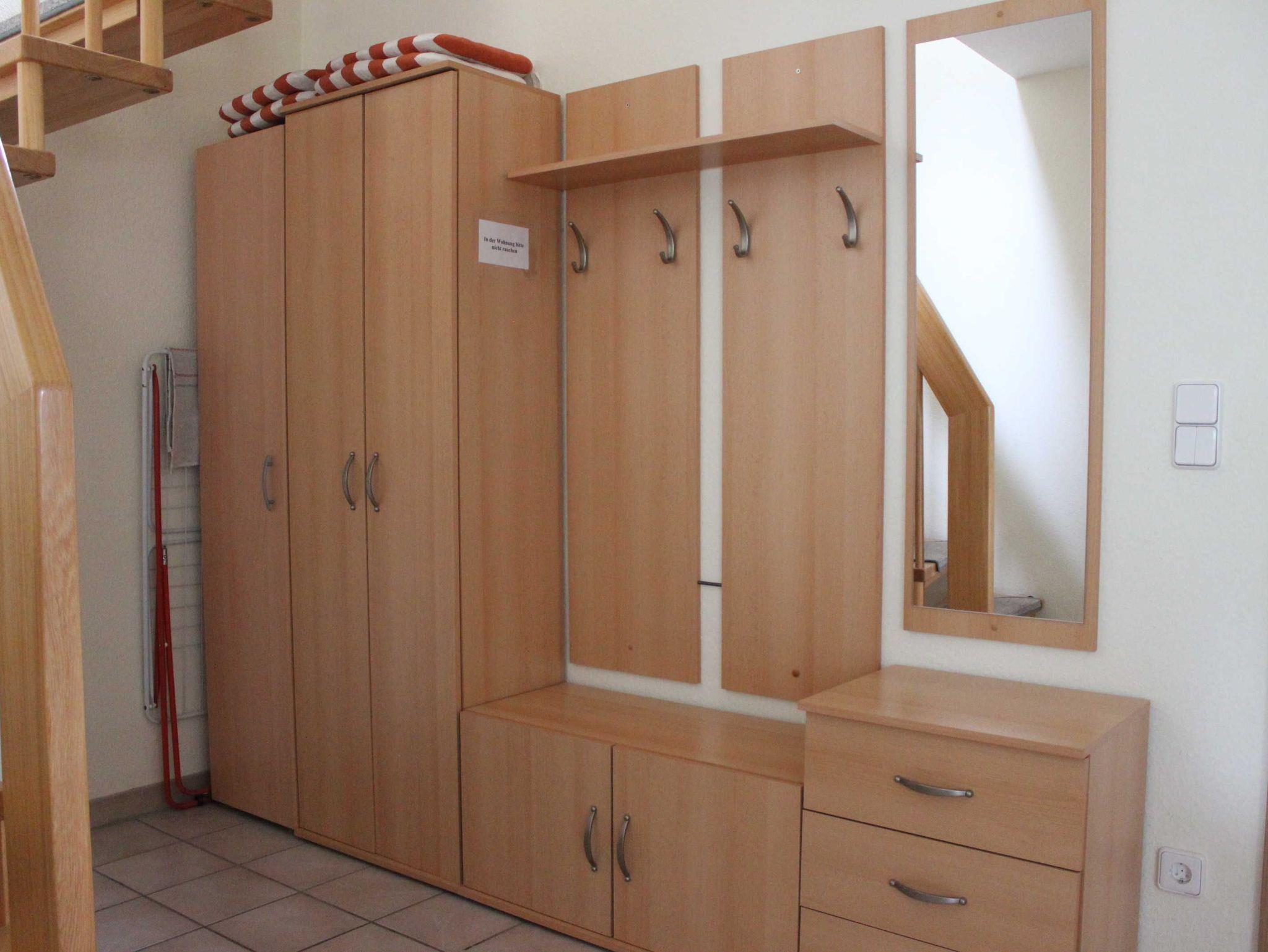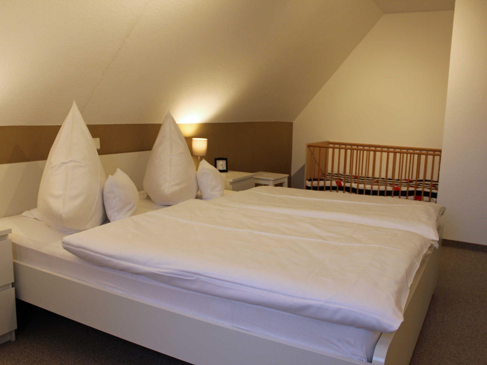 Die Ferienwohnung verfügt auf zwei Stockwerken über ein großes, helles Wohnzimmer, eine voll ausgestatteten Küche mit Sitzecke und einem Bad mit Badewanne und WC. In der oberen Etage finden Sie ein Schlafzimmer mit Doppelbett und ein weiteres Zimmer mit zwei Einzelbetten, sowie ein separates WC. Das Aufstellen eines Kinderbettes ist in beiden Schlafzimmern möglich. Täglich frische Brötchen auf Anfrage vor Ort.