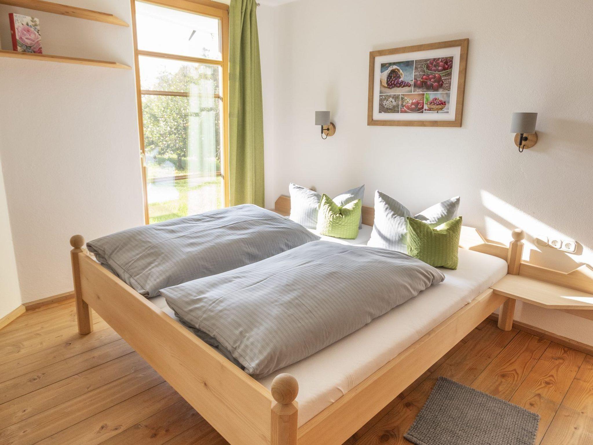 Unsere Wohnung „Obstgarten“ befindet sich im EG des Gästehauses. Sie bietet Ihnen neben einem traumhaften Blick auch den direkten Zugang in unseren Obstgarten. Die überdachte Terrasse und der kleine eigene Gartenanteil lassen Sie Natur pur erleben. Die Wohnung verfügt über eine abgetrennte Küche, ein großzügiges Wohn-Esszimmer, Schlafzimmer, Kinderzimmer, Bad (mit Dusche, Wanne und WC) sowie ein extra WC im Eingangsbereich. An kalten Tage genießen Sie bei wohliger Wärme des schicken Kachelofens gemütliche Stunden auf der Ofenbank.