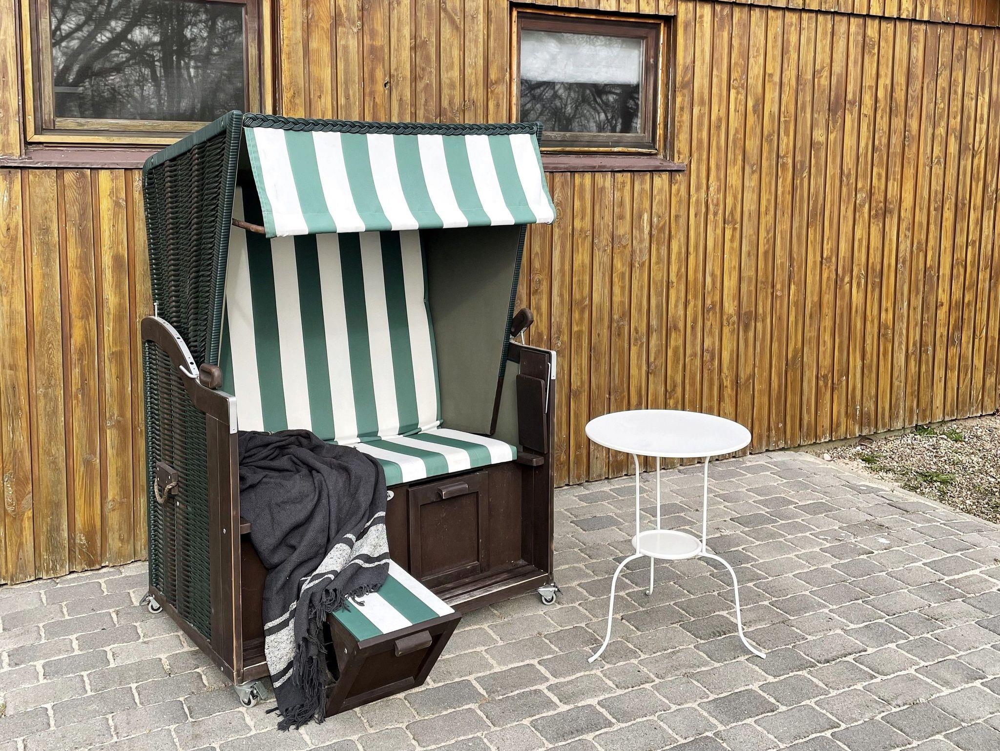 Im großen Garten stehen unseren Gästen ein Kinderspiel- und Grillplatz eine Liegewiese, eine Sitzecke sowie ein Gartenhaus zur Vefügung. Zwei Strandkörbe mit Blick aufs Wasser laden zum Verweilen ein.