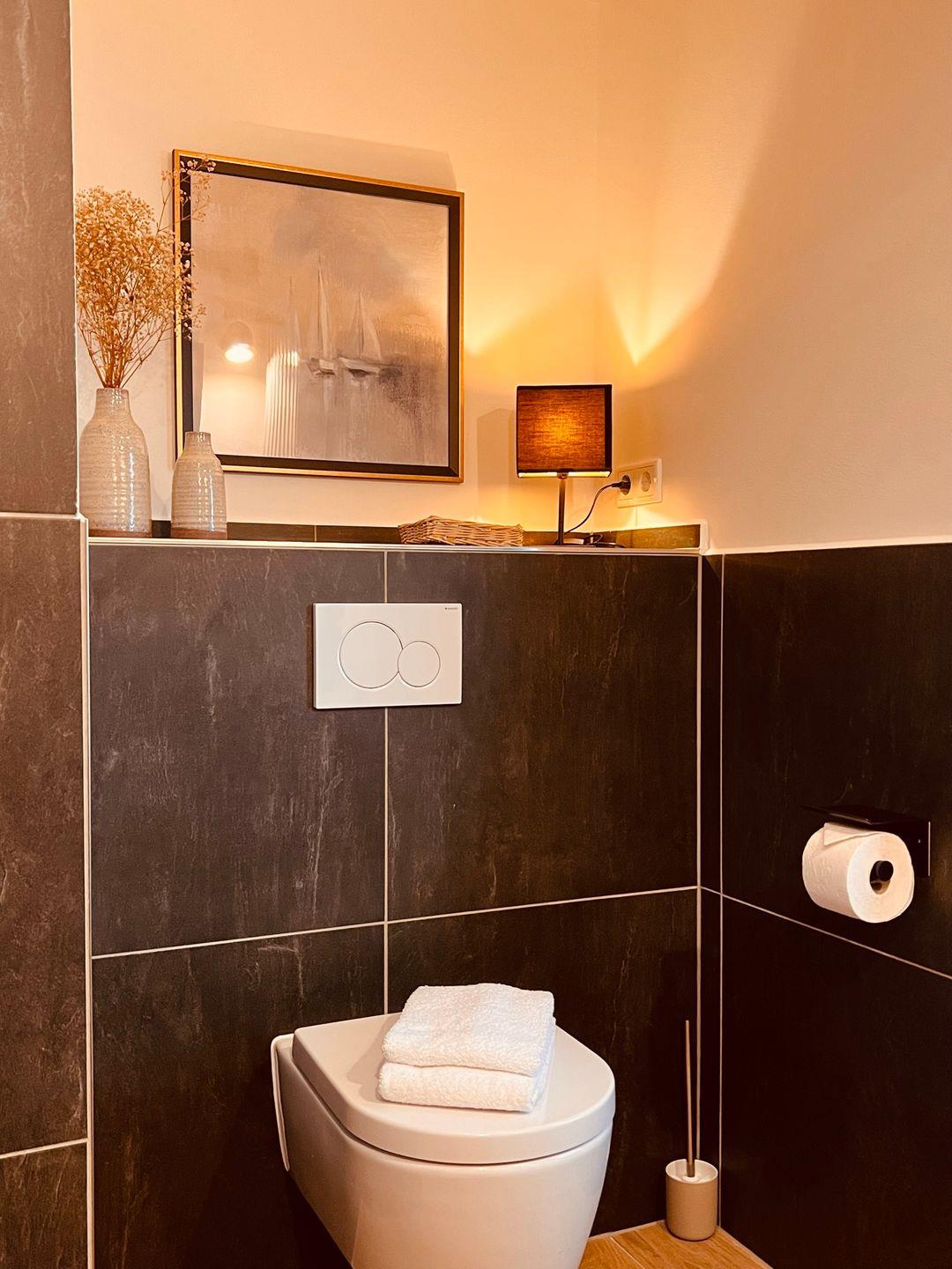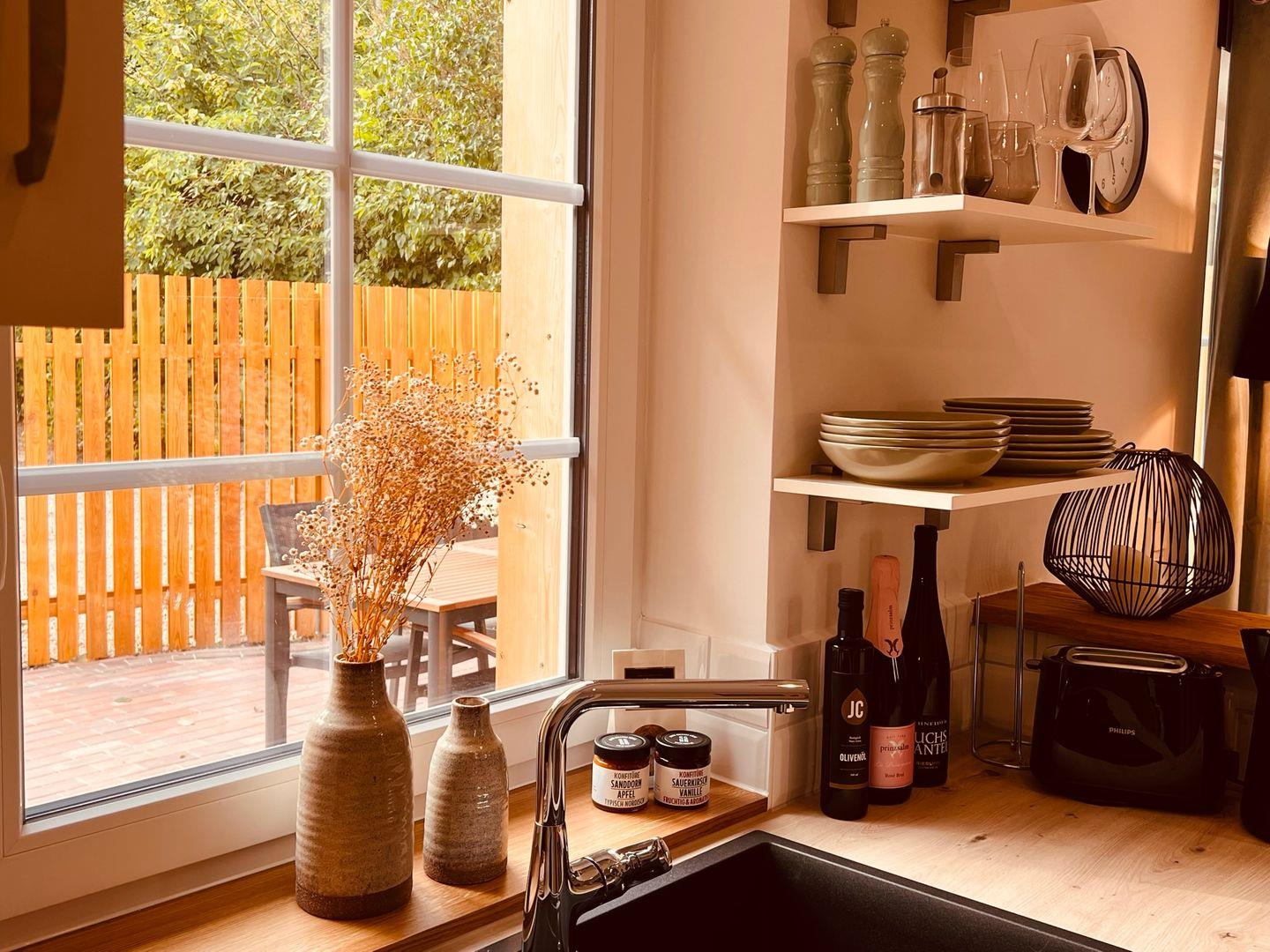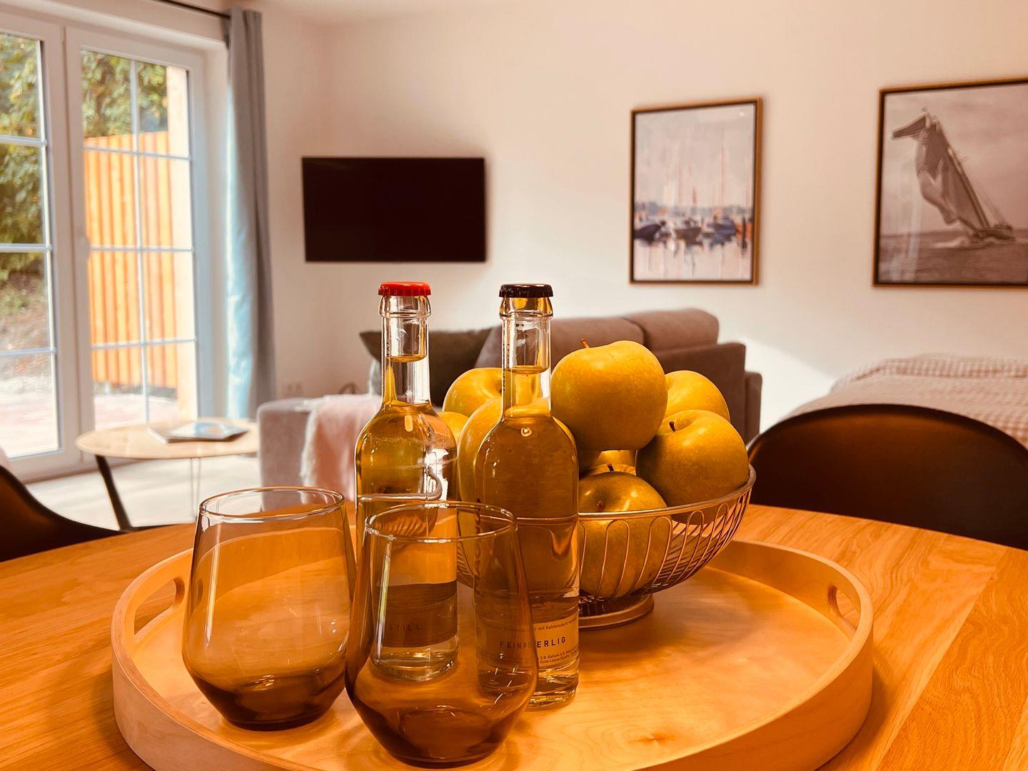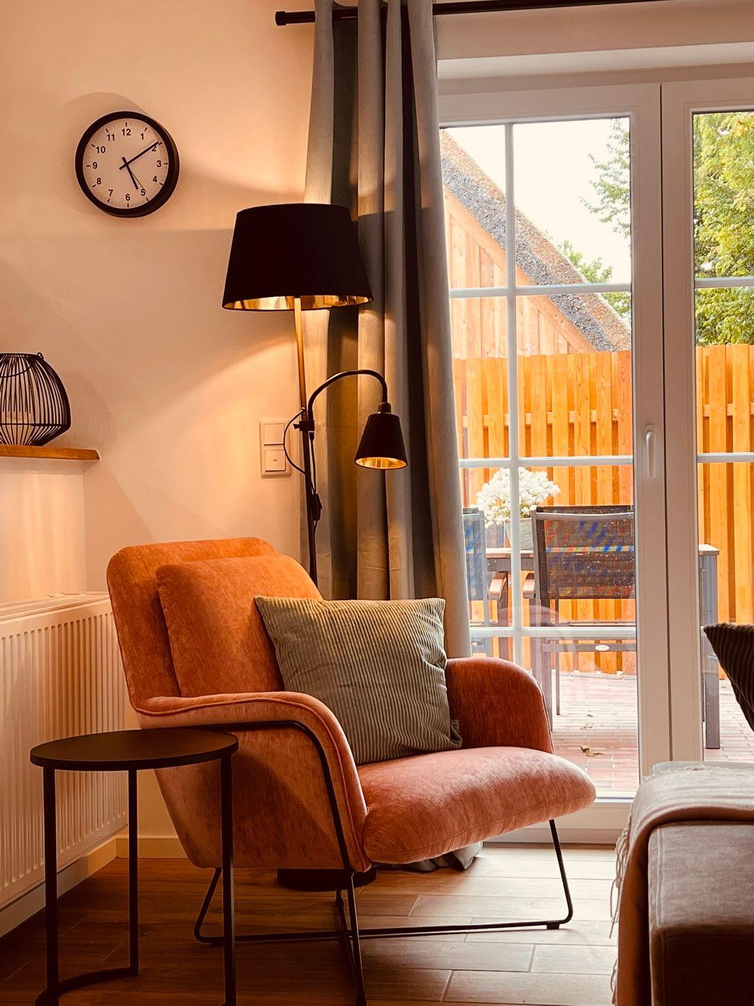 Für Unterhaltung sorgen ein Smart TV, eine Auswahl an Büchern sowie kostenloses Internet/WLAN über Glasfaser. Im Außenbereich steht den Gästen eine Gartensauna (Fasssauna) zur Gemeinschaftsnutzung zur Verfügung, ergänzt durch eine Außendusche. Die Nutzung der Sauna kostet 8,00 € pro Stunde (Münzautomat). Der Gemeinschaftsgarten mit Liegewiese sowie die eigene Terrasse sind perfekt zum Entspannen geeignet; Gartenmöbel, Sonnenschirm und Windschutz sind vorhanden. Bitte beachten Sie, dass aufgrund des benachbarten Reetdachhauses das Grillen nicht gestattet ist.