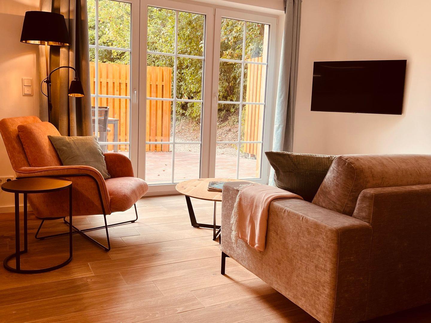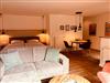 Der Schlafbereich bietet ein komfortables Boxspringbett (180x200 cm) mit offenem Fußende und einem Kleiderschrank für Ihre persönlichen Dinge. Der Wohnbereich ist gemütlich gestaltet und verfügt über ein Sofa, einen Sessel sowie eine Garderobe, die zum Entspannen und Verweilen einladen.