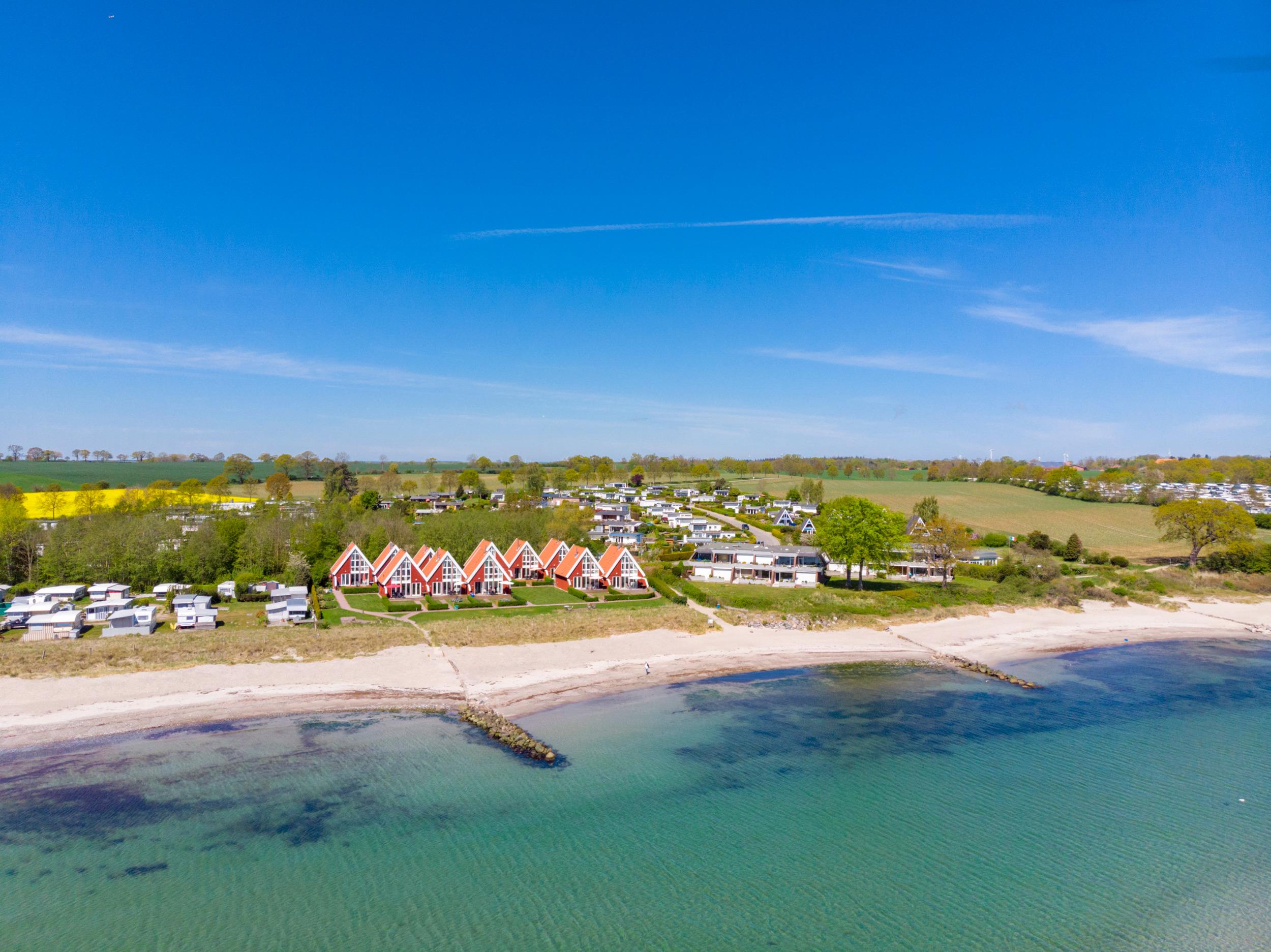 Das Paradies auch für Kinder: Eigener autofreier Zugang zum weichen Sandstrand und flaches klares Wasser. In Fußnähe befinden sich zwei schöne Spielplätze und ein Minigolfplatz.