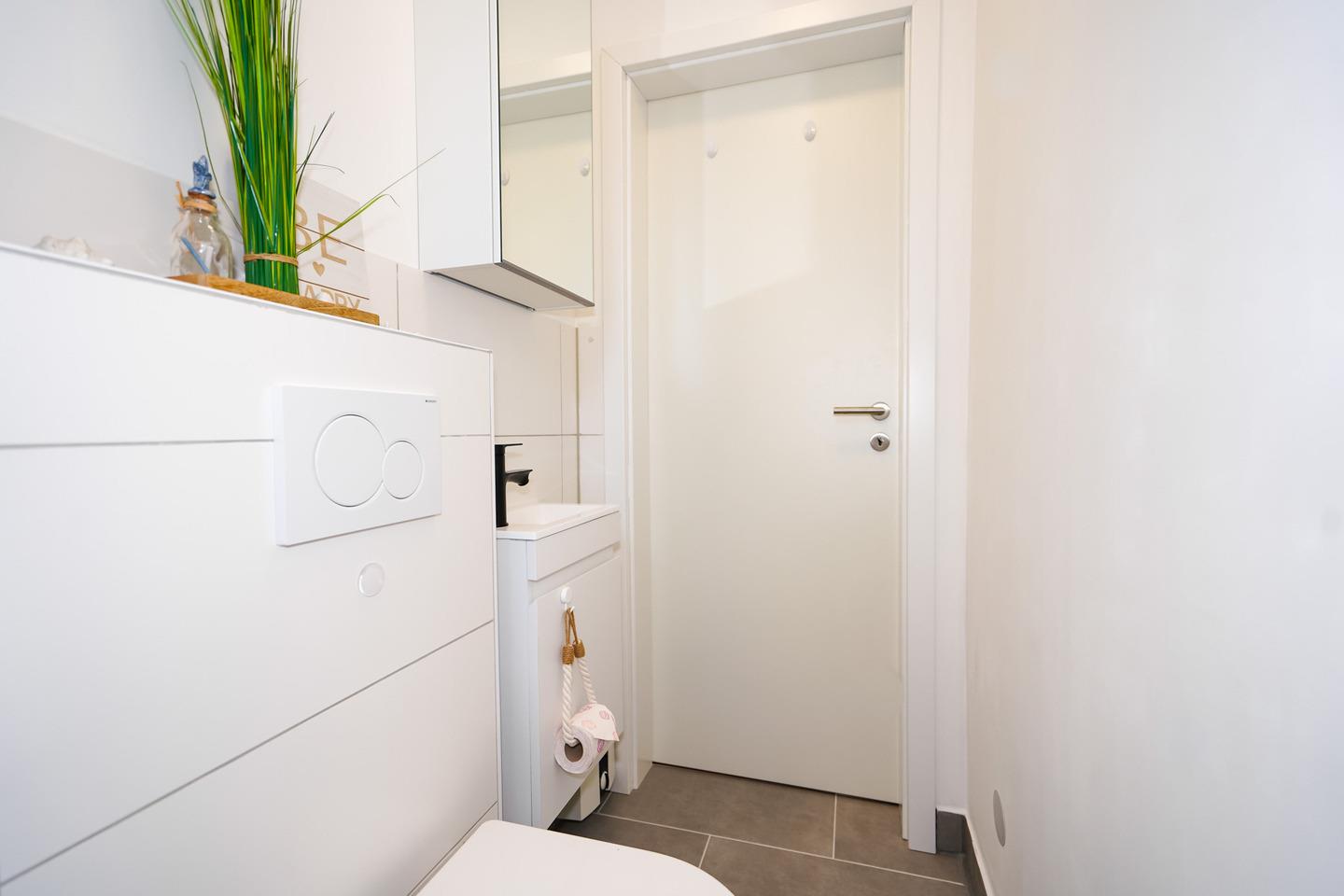Die voll ausgestattete Küche lädt dazu ein, die regionalen Köstlichkeiten selbst zuzubereiten. Sie verfügt über einen Geschirrspüler, ein Gefrierfach sowie einen Kühlschrank, damit Sie stets bestens versorgt sind. Der Flur führt Sie in das einladende Bad, das mit einer Dusche und WC ausgestattet ist.